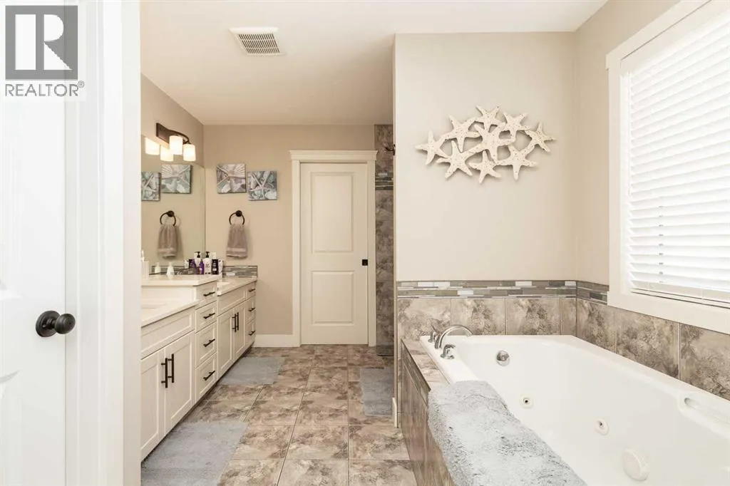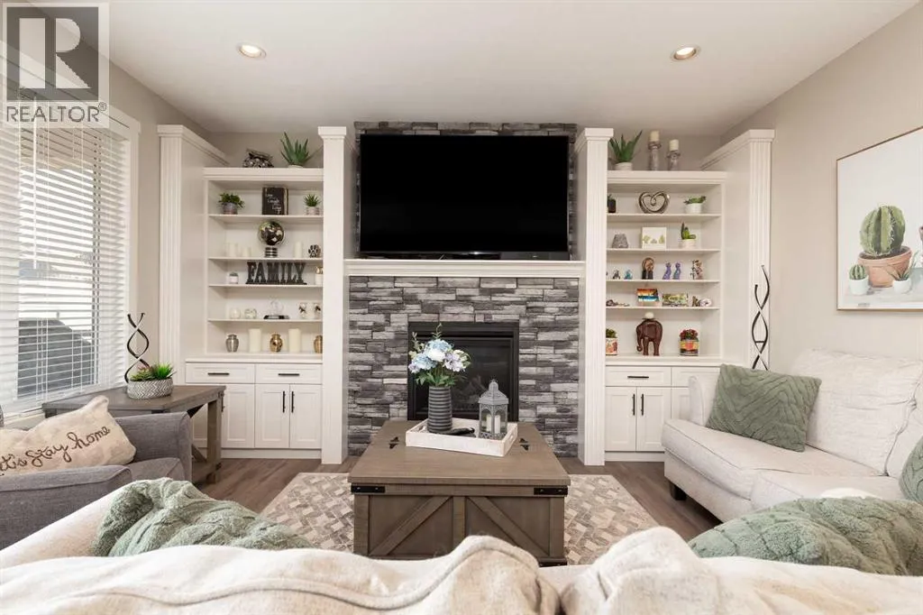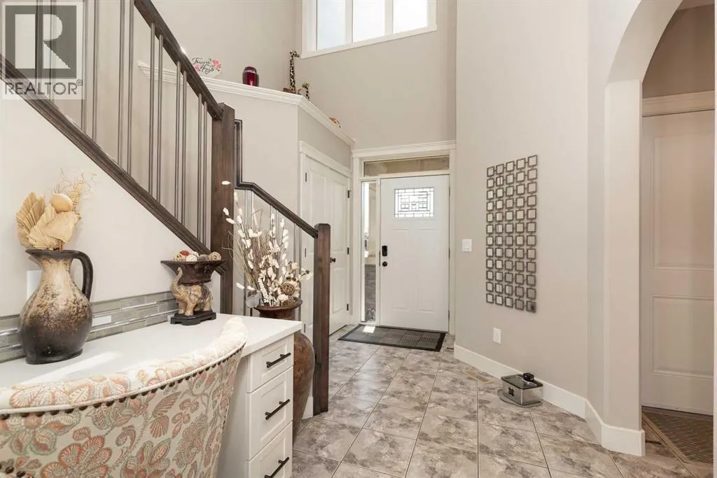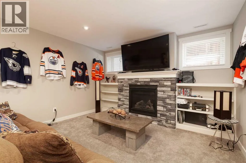 Welcome to this stunning, fully developed home in desirable Southgate, offering space, style, and high-end finishes throughout.Step inside to a stunning open-to-above entrance that immediately set the tone. The main floor features a massive kitchen with quartz countertops, updated appliances, dual ovens, and cabinetry that wraps seamlessly into the dining area. A convenient walk-through pantry connects directly to the garage. The inviting living room showcases a gas fireplace with floor-to-ceiling built-in shelving, while a versatile office or spare bedroom and a 2-piece bathroom complete the main level.Upstairs, youâll find a spacious primary retreat with a luxurious 5-piece ensuite, including dual sinks, quartz counters, a jetted tub, stand-up shower, heated tile floors, and a walk-in closet. This level also offers a large bonus room, two additional well-sized bedrooms, a 4-piece bathroom, and a dedicated laundry room.The fully finished basement is perfect for entertaining, featuring a large family room with a wet bar, quartz countertops, bar fridge, and a second gas fireplace. Two more bedrooms and a 4-piece bathroom complete the lower level.Outside, enjoy a beautifully landscaped backyard with mature perennials, a circular patio with a water feature, a covered deck with natural gas hookup, and a lower stone patio. The property backs onto an alley and includes a true double garage with impressive 10â doors, plus permanent outdoor LED lighting.This home checks all the boxesâspace, upgrades, and incredible outdoor living. (id:27476)
