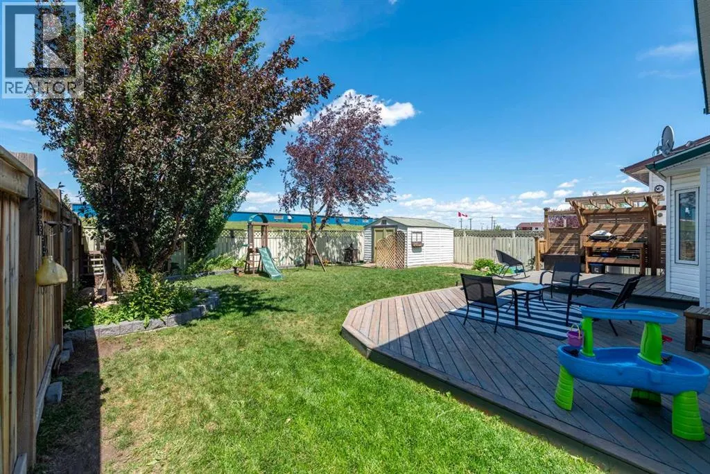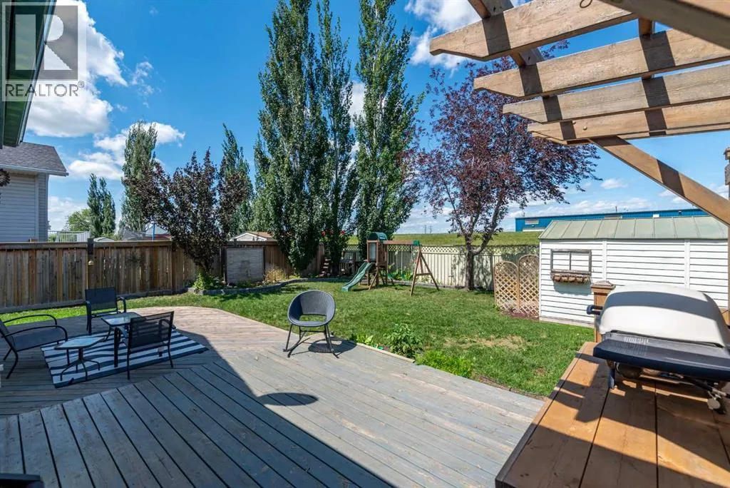 Fantastic value! Here's a really nice 4 bed, 3 bath Alberta home in a great neighborhood! Backing onto green space means extra privacy and you'll love the beautiful yard which has a large patio/deck perfect for relaxing and a really cool water fall - electrically controlled from inside the home. The unique 4 level split layout means you get a nice living room, kitchen and dining area that lets you gaze into the lower family room, that comes complete with a real classy gas fireplace! Three bedrooms are upstairs along with 2 baths. The lower level includes the family room with lots of big windows, another bath and one more bedroom. Plus there's even a huge recreation room in the 4th level! The Poly B has been replaced, there's a newer hot water tank (2022) the furnace ducts were cleaned and the gas fireplace was serviced. (Nov. 2024) And if you have kids, the bus pickups are real close by. All this and central air conditioning, central vac, and even underground sprinklers. Check this one out today! (id:27476)