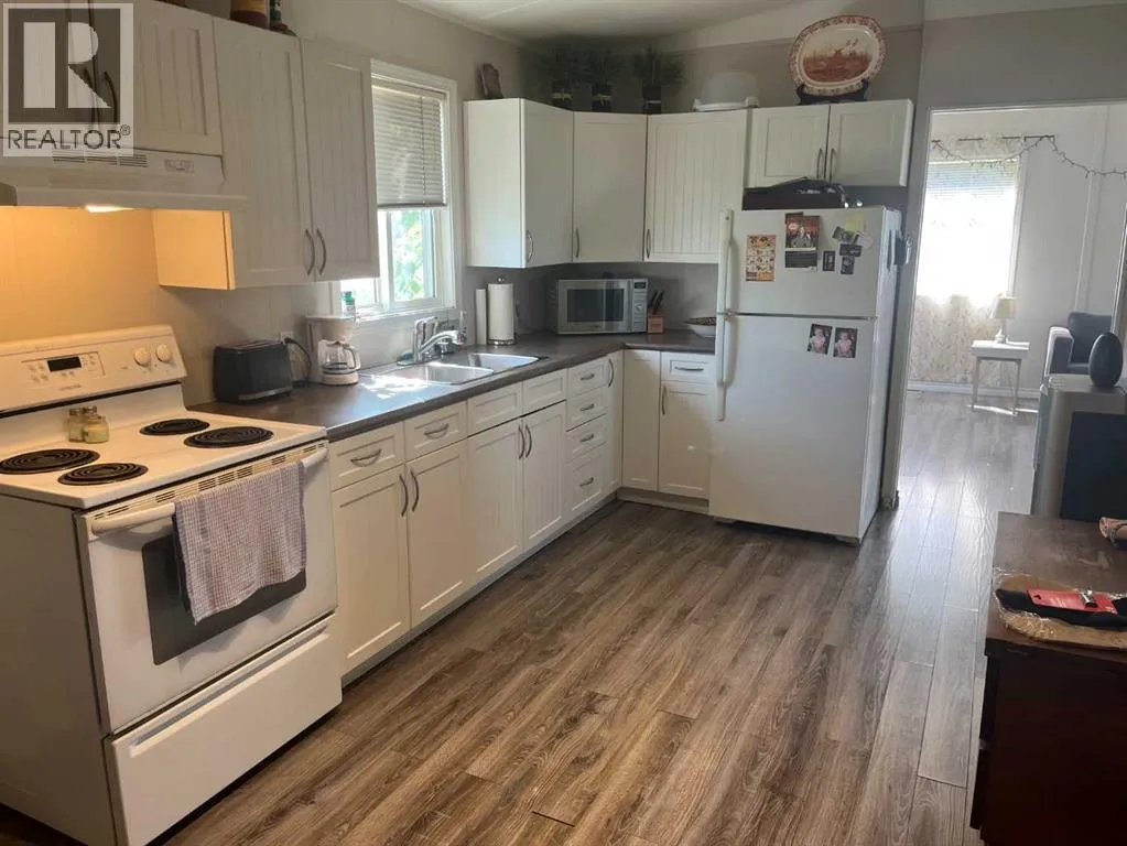 Welcome to this double-wide mobile home located in Lloydminster Village. With two bedrooms, a 4-piece bathroom, and plenty of living space, this could be a great home for you and your family. This mobile also has a carport outside and space to park an additional vehicle. Lot rental fee of $ 750.00 per month. Call to view! (id:27476)
