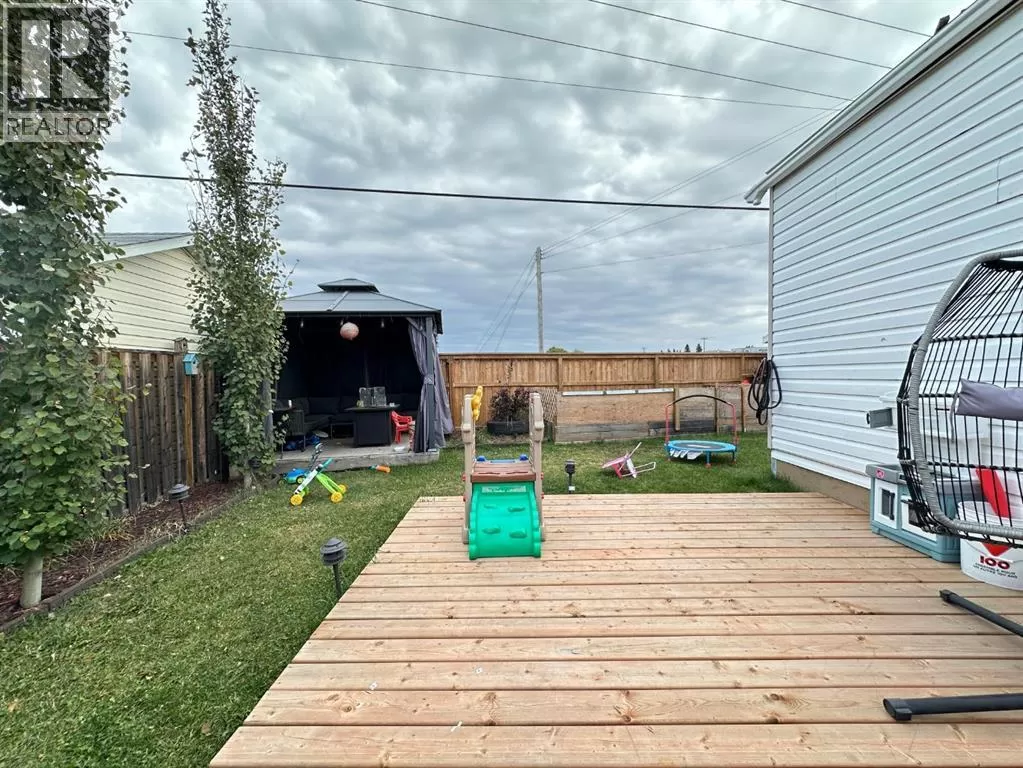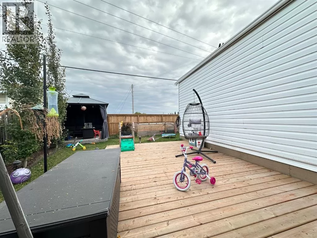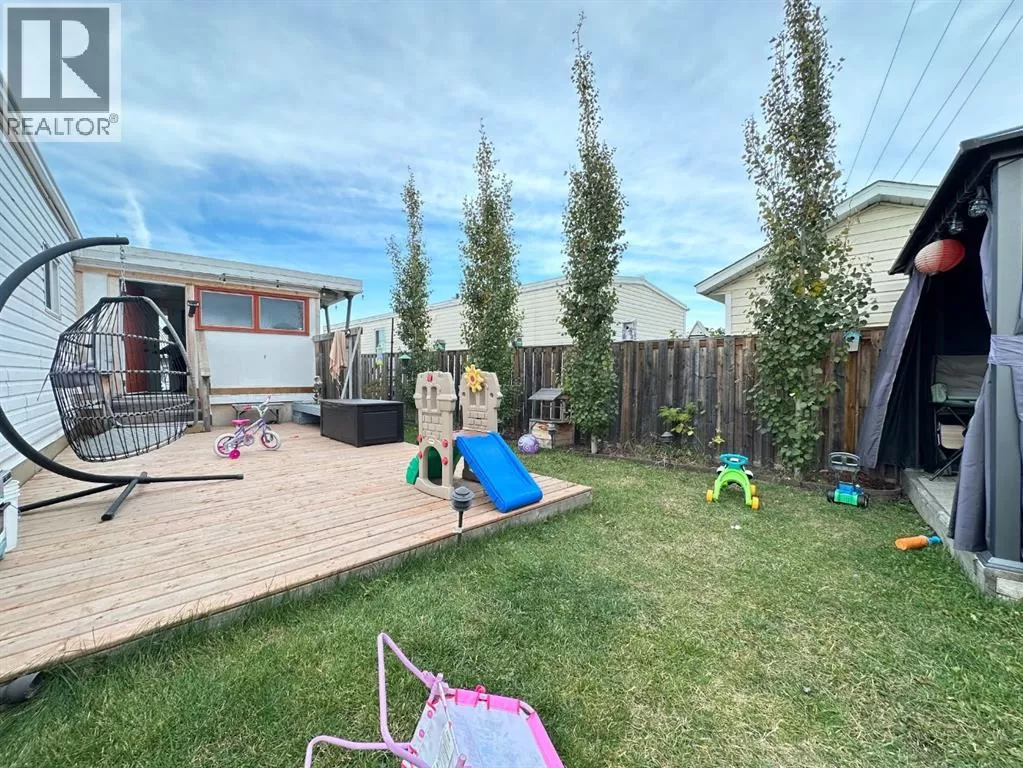 Located in Lloydminster Village, this home has the cozy country feel. Some modifications consist of one bedroom turned into the dining area, bathroom made larger, a 14x16 cold addition added, side enclosure for back door and a fully fenced in yard with 3 decks, gazebo, storage shed and dog run. The yard in the summer time is one you will sit in and enjoy those warm evenings. Lot rental fee of $640 per month includes water, sewer, garbage, common area maintenance, snow removal and club house access. All offers are to be made Subject to Park approval (id:27476)