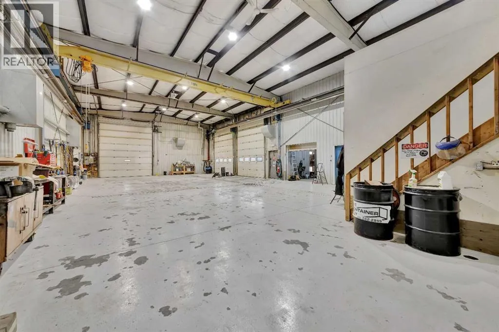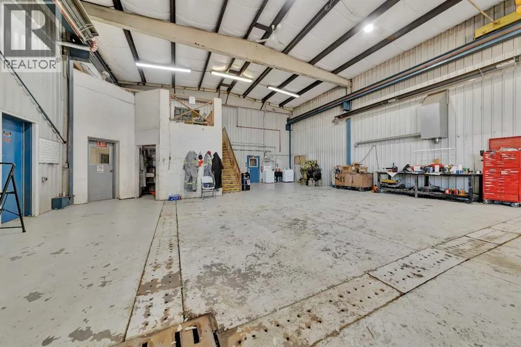 Great location for this property ,total of 6680 sq,ft. Main building is 4680 sq,3200 shoparea with 3 -14W X16H OHDs', one and half ton crane, 3 phase power. The office areais 1400 sq.ft and has 3 offices, washroom and reception area. There is a mezzanine with 1office and kitchen area. The second building is 2000sq. ft with concrete floor 1-18W X14HOHD. 3 phase power and radiant heat. Property is perimeter fenced and the lot is hardpacked. (id:27476)