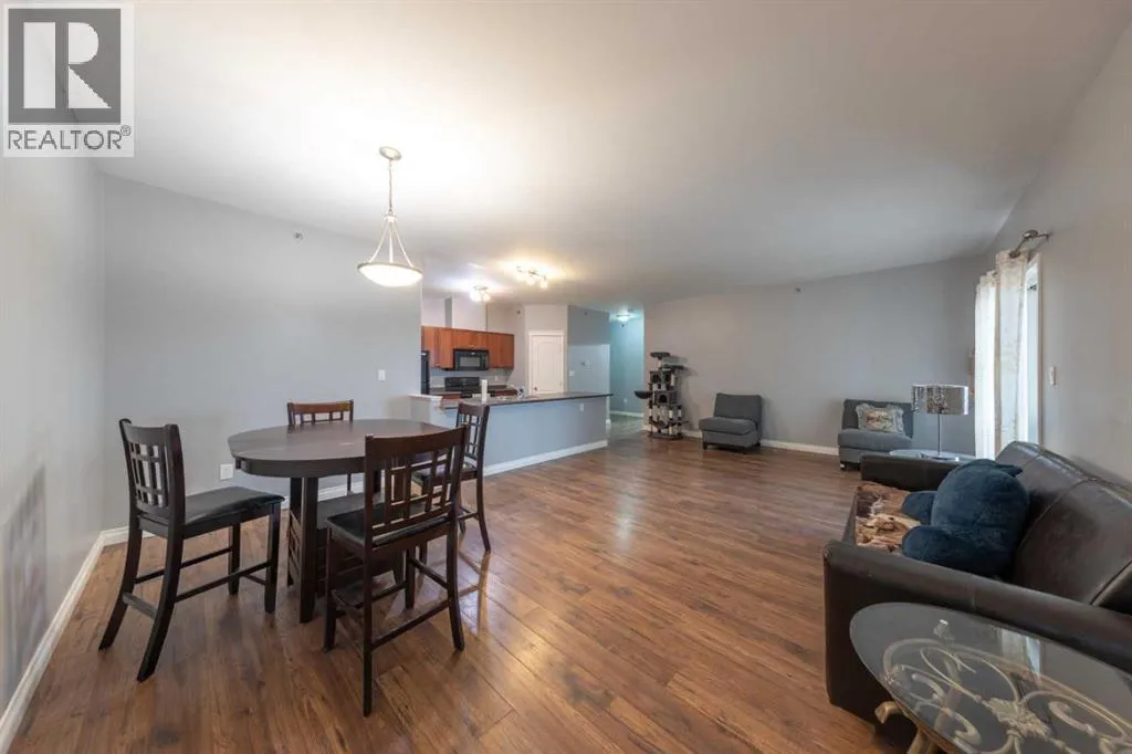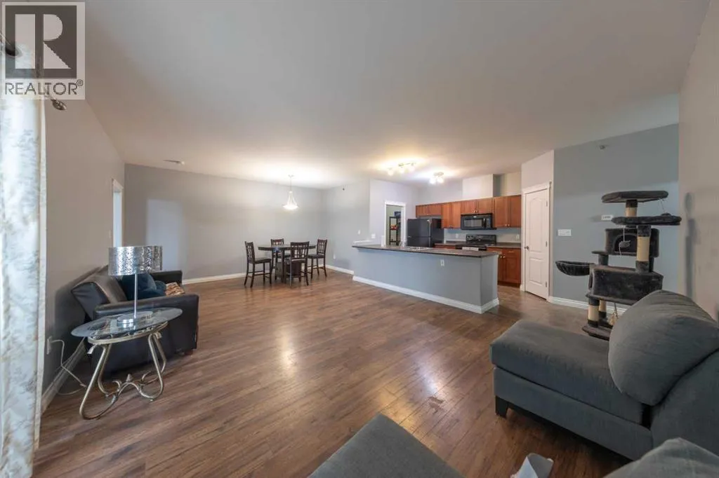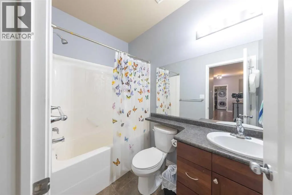 This top-floor condo is one of the larger units in the building and sits on the quiet 4th floor, offering both space and privacy. The wide open floor plan includes a huge peninsula islandâperfect for cooking or entertainingâand even features a pantry for added storage. The kitchen is equipped with sleek dark appliances that give it a modern, polished look. Step outside to a secluded balcony tucked in the corner of the building, where you can relax in peace and enjoy the view. With 2 bedrooms and 2 bathrooms, including a comfortable primary suite, this pristine home combines comfort, style, and convenience. Two elevators, underground parking near the elevator, and an additional surface stall make everyday living effortless. Move-in ready and easy to love! (id:27476)