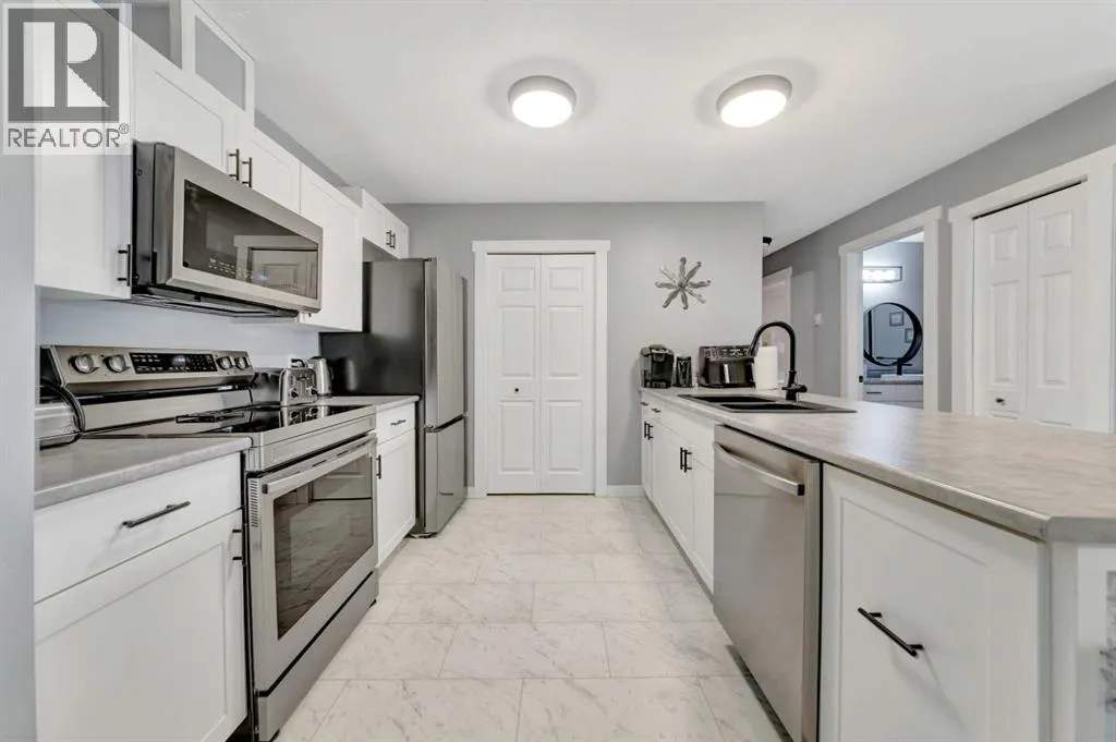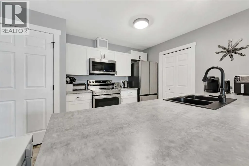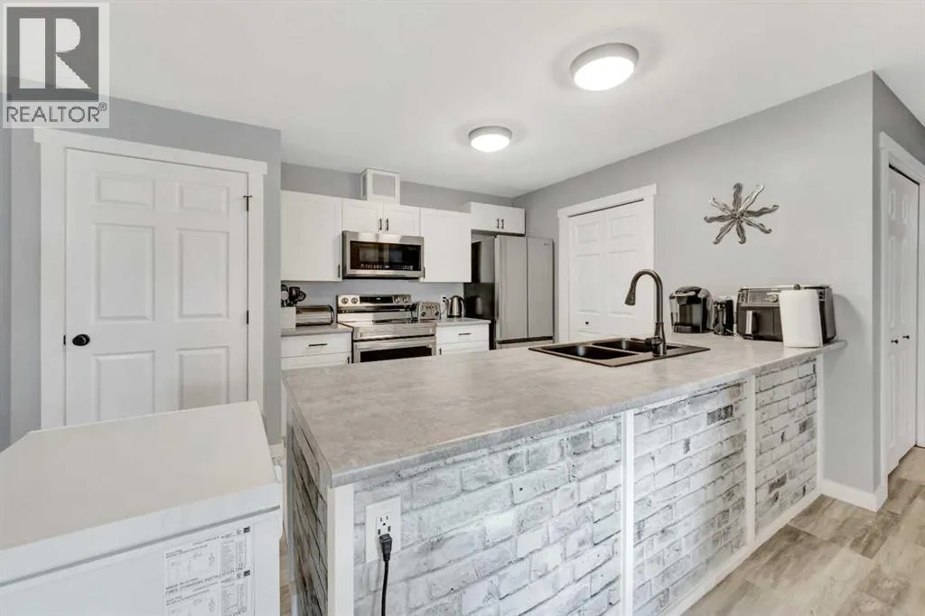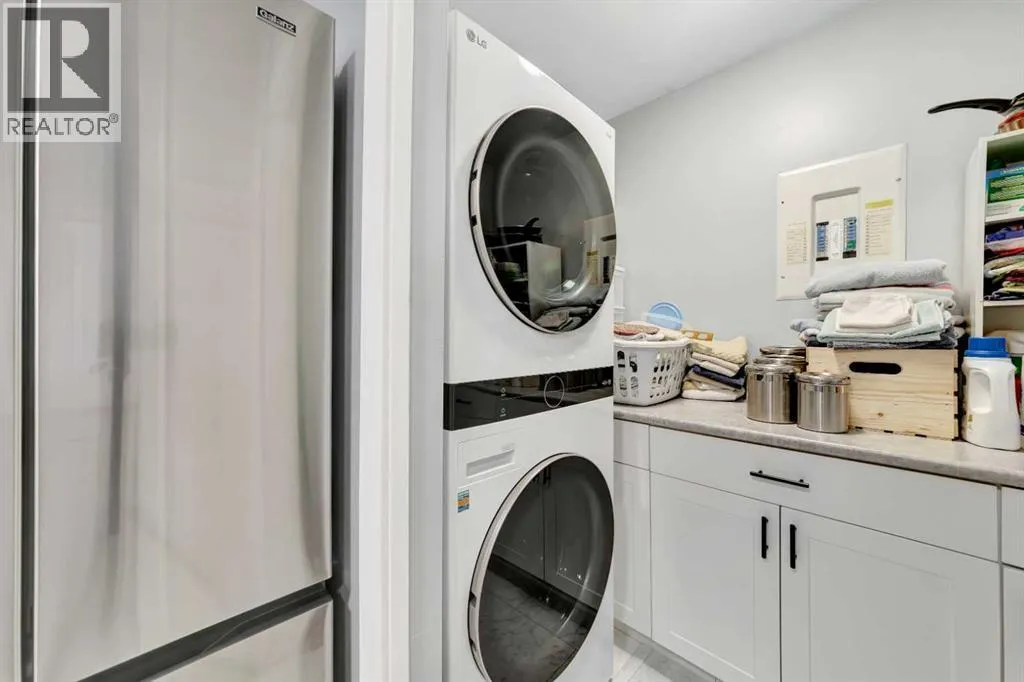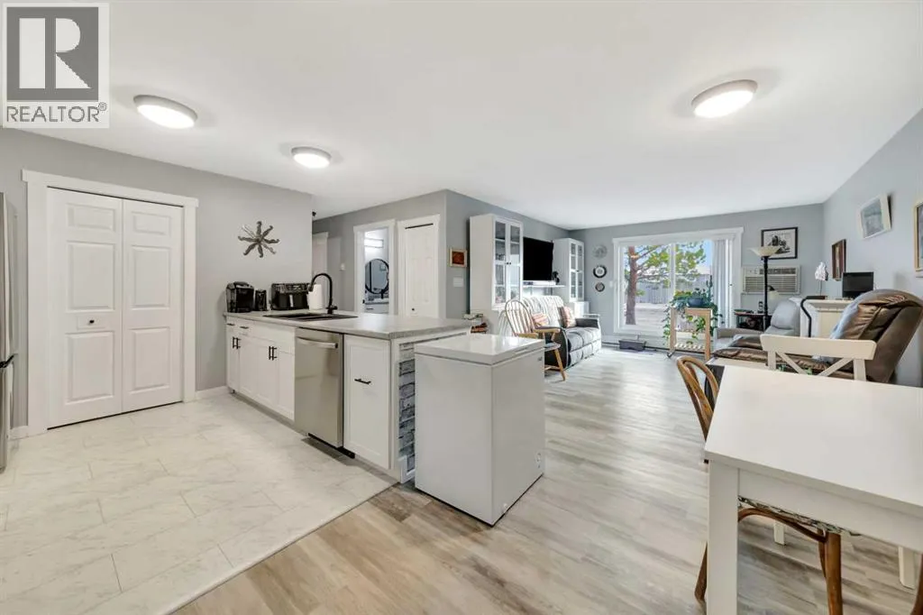 Welcome to La Tierra Condominiums, where comfort and convenience come together. This ground-floor corner unit features a bright, south-facing patio, ideal for enjoying morning coffee or relaxing evenings. Inside, youâll find stylish upgrades throughout, including refreshed flooring, updated cabinets, and a beautifully renovated bathroom. The kitchen is both functional and inviting, featuring ample cabinetry and all necessary appliances. A spacious laundry room features custom-built-ins, providing excellent storage and workspace, and a primary bedroom featuring a generously sized walk-in closet. Stay comfortable year-round with the wall-mounted air conditioning unit. Condo fees of $364.46/month include heat, water, lawn care, snow removal, exterior maintenance, and more, offering a simple, worry-free lifestyle. Assigned parking stall included. This home is ideal for first-time buyers, investors, or anyone looking to downsize to an affordable, updated, and ready-to-move-in unit. Located close to parks, shopping, and schools in a well-managed complex. (id:27476)