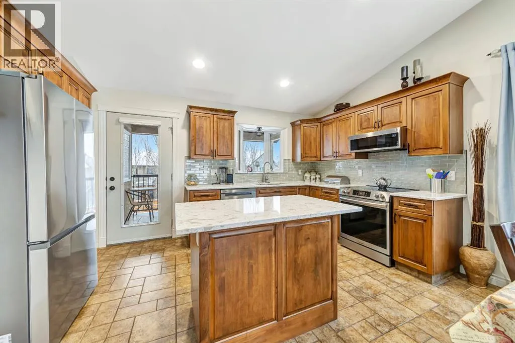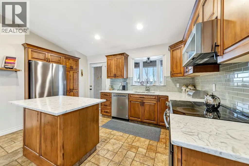 Welcome to your forever home in one of Lloydminsterâs most desirable neighbourhoods! Nestled in a quiet close and backing onto a peaceful walking path just steps from Bud Miller Park, this beautiful bungalow is the perfect blend of comfort, space, and family living.Sitting on a massive 10,786 sq. ft. pie-shaped lot, this property offers plenty of room for kids to play, summer barbecues, and evening fires under the stars. Youâll also love the RV parking with oversized gated accessâideal for storing your trailer, boat, or any of your familyâs adventure gear safe & out of sight. Step inside to a warm and welcoming open floor plan, featuring rich walnut flooring that ties the main living spaces together. The spacious kitchen includes new stone counter tops, a large island thatâs perfect for family breakfasts or baking nights, new appliances and the three-way stone gas fireplace adds a cozy touch that connects the kitchen, dining, and living room beautifully.There are three bedrooms on the main floor, each offering comfort and style. The primary suite is a true retreat, complete with a full ensuite featuring a jetted tub, in-floor heat and a walk-in closetâa quiet space to unwind after a busy day.Downstairs, the walkout basement is bright and welcoming with large windows and newer carpet. Itâs the perfect spot for family movie nights or entertaining friends, complete with a bar area and rough-ins for built-in speakers to create your own home theatre. Step outside to enjoy the stone patio and spacious backyard, perfect for playtime or relaxing weekends.Youâll also find a fourth bedroom with a walk-in closet, a full bathroom, and a finished laundry and utility room for added convenience.This home also features a double attached garage, central air conditioning, central vacuum, and all appliances includedâeverything your family needs for easy living.With its thoughtful layout, unbeatable location, and welcoming atmosphere, this home truly has it allâa place where me mories are made and families thrive. (id:27476)