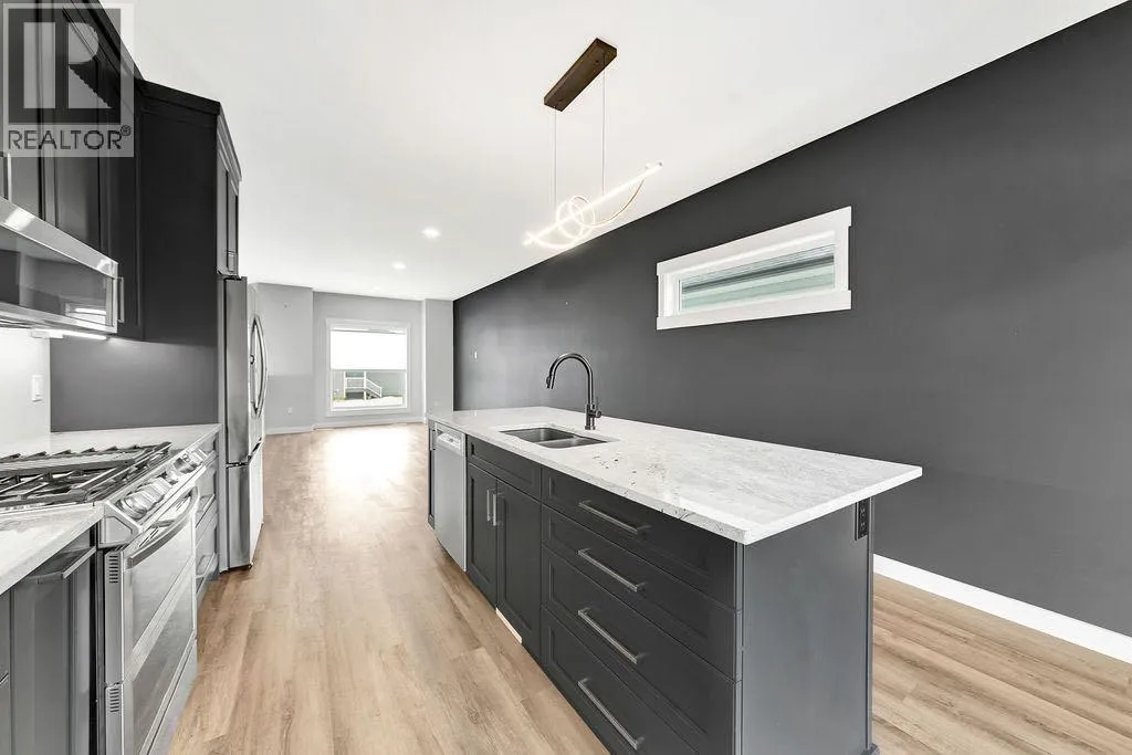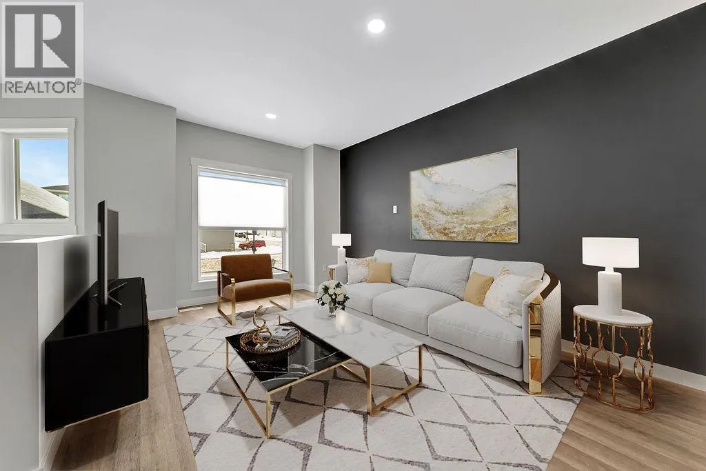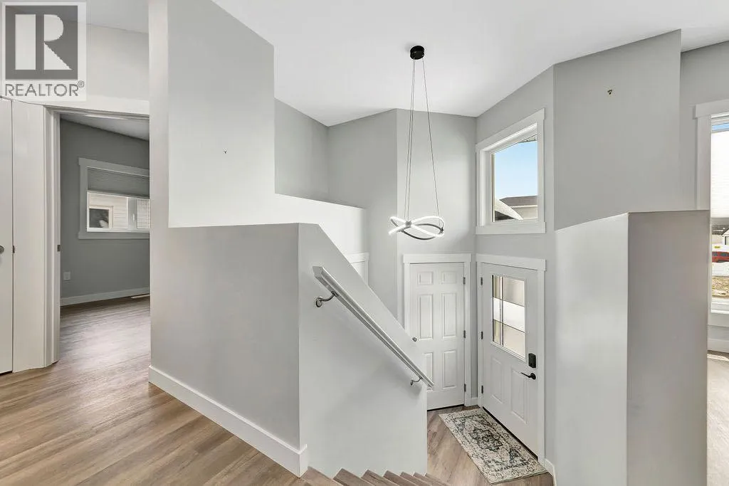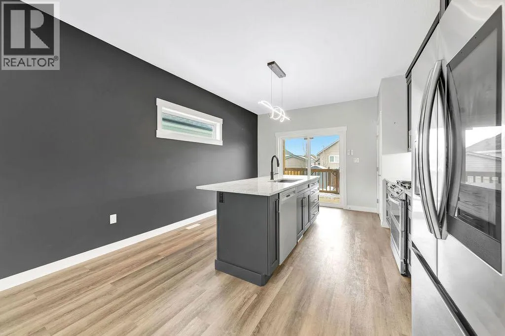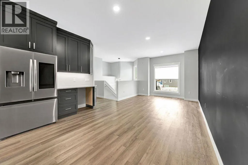 When you pull up to this clean, modern bi-level tucked into the heart of College Park, you know youâve found something special. Located in one of Lloydminsterâs most sought-after neighbourhoodsâthis lovely home is close to schools, parks, rinks, walking paths, and the Servus Sportsplex. Built in 2024, this home immediately feels warm, intentional, upgraded and well thought out. Inside, the entry opens to a bright, open-concept main floor with vinyl plank flooring, 9-foot ceilings, and recessed lighting throughout the living, dining, and kitchen spaces. The kitchen is a standout: beautiful navy cabinetry that goes all the way up to the ceiling with soft-close hardware, full-height storage, granite countertops, a generous 3â x 8â island, stainless steel appliances, and a gas stove with double ovenâboth functional and striking. Large patio doors lead to a covered deck outfitted with custom privacy blinds and a gas deck heater, making outdoor living comfortable well beyond summer. The homeâs south-facing orientation fills the space with natural light. Three bedrooms and two baths on the main floor are thoughtfully designed, with blackout blinds in the bedrooms and a primary suite featuring a walk-in closet with custom cabinetry and a sleek ensuite with a large walk-in shower and matte black fixtures. The main bath mirrors the same quartz and cabinetry finishes. The basement is undeveloped, offering buyers the opportunity to customize layout and finishes to suit their wants and needs. Practical upgrades continue in the garage with epoxy floors, metal storage racks, floor drain, and heat prep already in place. This is a polished, low-maintenance home with flexibility for the future. Situated in one of Lloydminsterâs most consistently sought-after neighbourhoods, this beauty wonât last! Book your showing today. (id:27476)