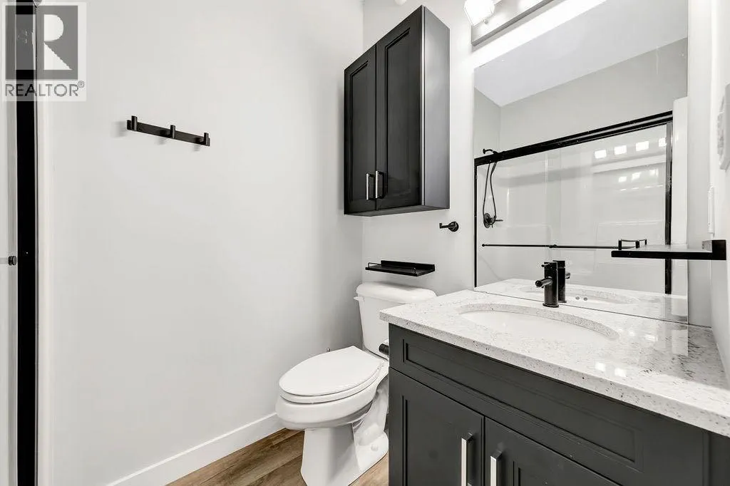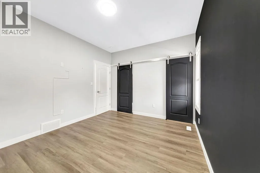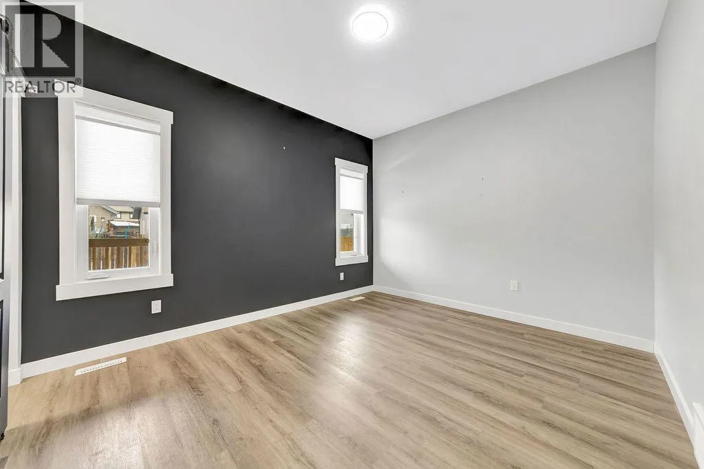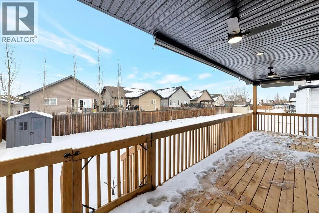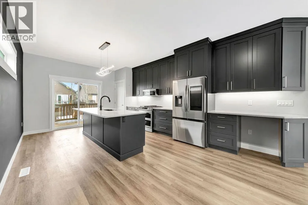 When you pull up to this clean, modern bi-level tucked into the heart of College Park, you know youâve found something special. Located in one of Lloydminsterâs most sought-after neighbourhoodsâthis lovely home is close to schools, parks, rinks, walking paths, and the Servus Sportsplex. Built in 2024, this home immediately feels warm, intentional, upgraded and well thought out. Inside, the entry opens to a bright, open-concept main floor with vinyl plank flooring, 9-foot ceilings, and recessed lighting throughout the living, dining, and kitchen spaces. The kitchen is a standout: beautiful navy cabinetry that goes all the way up to the ceiling with soft-close hardware, full-height storage, granite countertops, a generous 3â x 8â island, stainless steel appliances, and a gas stove with double ovenâboth functional and striking. Large patio doors lead to a covered deck outfitted with custom privacy blinds and a gas deck heater, making outdoor living comfortable well beyond summer. The homeâs south-facing orientation fills the space with natural light. Three bedrooms and two baths on the main floor are thoughtfully designed, with blackout blinds in the bedrooms and a primary suite featuring a walk-in closet with custom cabinetry and a sleek ensuite with a large walk-in shower and matte black fixtures. The main bath mirrors the same quartz and cabinetry finishes. The basement is undeveloped, offering buyers the opportunity to customize layout and finishes to suit their wants and needs. Practical upgrades continue in the garage with epoxy floors, metal storage racks, floor drain, and heat prep already in place. This is a polished, low-maintenance home with flexibility for the future. Situated in one of Lloydminsterâs most consistently sought-after neighbourhoods, this beauty wonât last! Book your showing today. (id:27476)