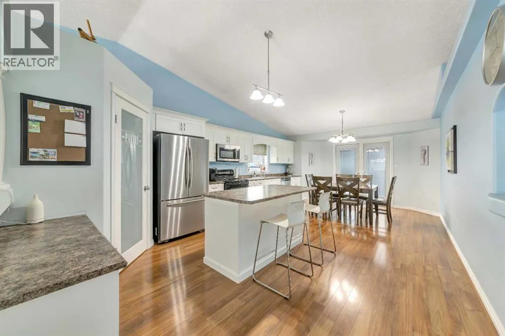 This spacious family home offers over 1,400 sq. ft. of thoughtfully designed living space and checks all the boxes! The functional, family-friendly floor plan features vaulted ceilings and a bright, generous living room that flows seamlessly into the eat-in kitchen. The kitchen boasts updated cabinetry, a corner pantry, island, and plenty of counter and storage space. A new back door (new in 2025) leads to a private, beautifully landscaped backyardâperfect for relaxing or entertaining.The main level offers three large bedrooms, including a spacious primary retreat complete with a walk-in closet and ensuite. The fully developed basement adds even more living space with two additional bedrooms, a bathroom, a large family room with bar/games area, a huge storage room, and a laundry room with sink.Additional highlights include a 23â x 23â attached heated garage, updated shingles (2020), hot water heater (2020), furnace (2023), central air conditioning, and gravelled RV parking. Ideally located close to schools, shopping, and the Bud Miller walking trails, this home offers space, comfort, and convenience all in one package. (id:27476)