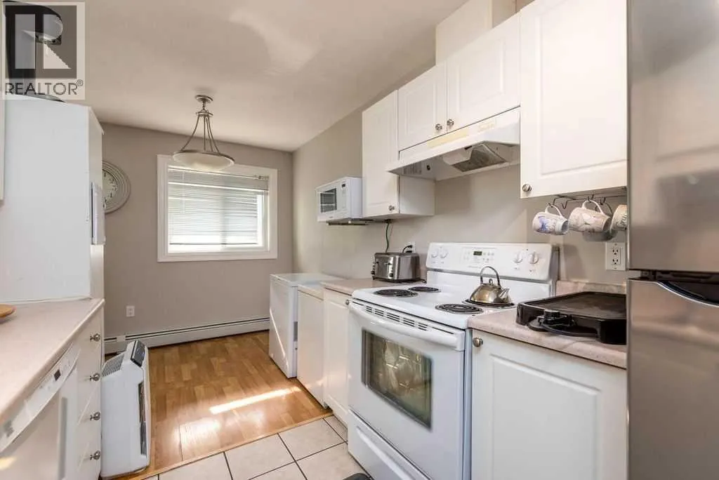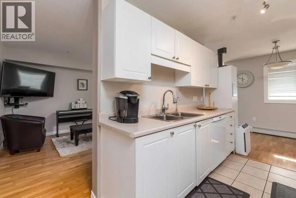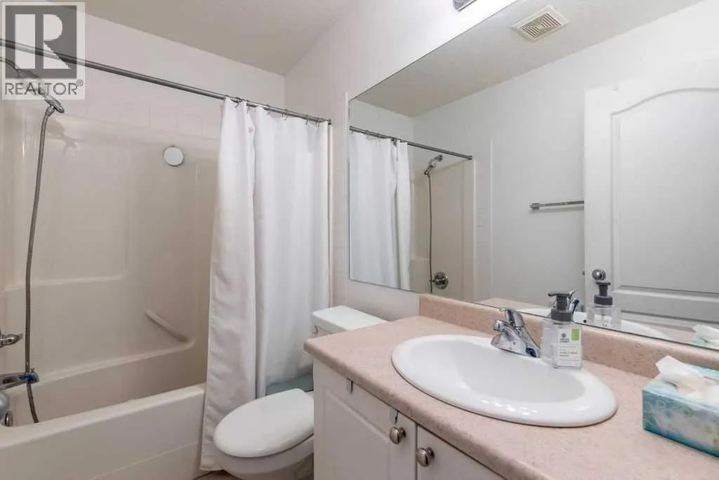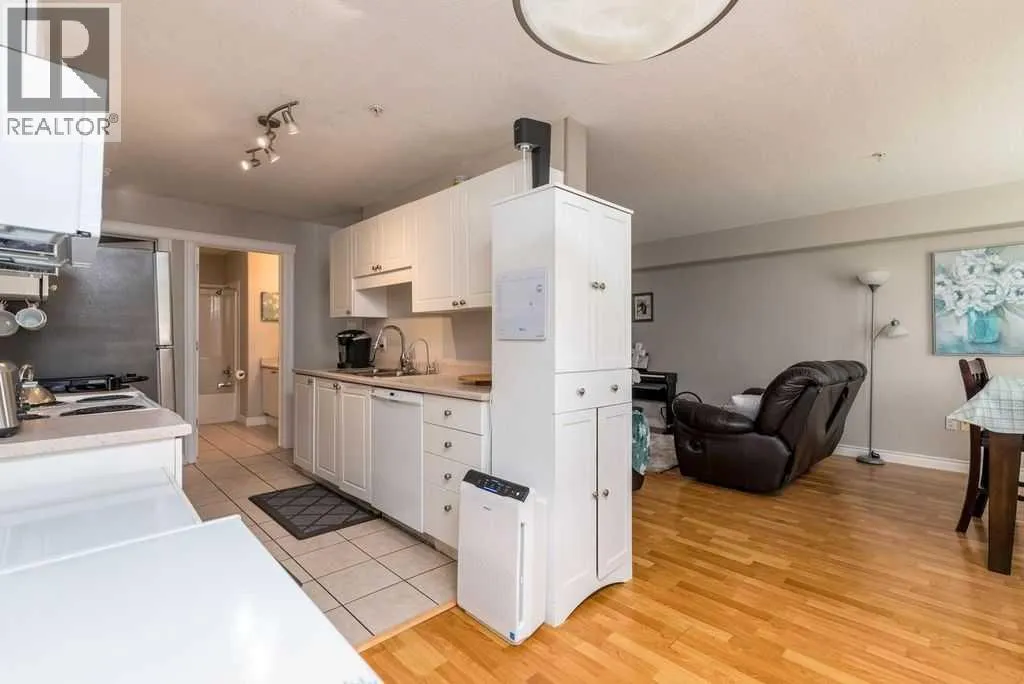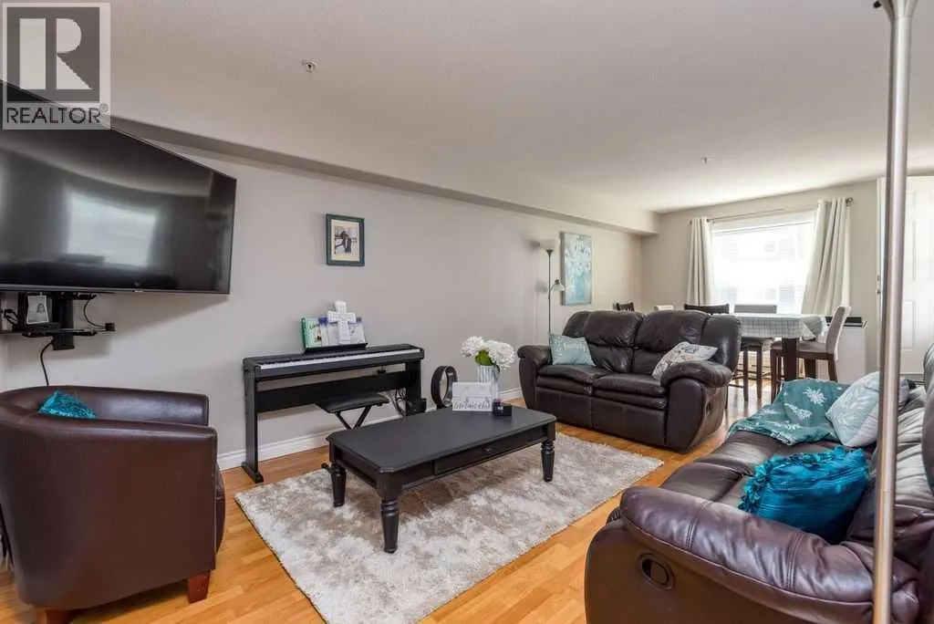A well-maintained main floor corner unit at Nova Place condominiums. It features 2 bedrooms and 2 4-piece bathrooms one of which is the master bedroom ensuite. As soon as you walk into the unit foyer, on your left is the well-organized storage room and laundry room with newer washer and dryer and on the right is your coat closet and shoes. Next room is your very bright and spacious Living room then dining room and right behind is your kitchen with a breakfast area or you can move the dining set and used as your main dining area to give you more extra space for your living room. Just right around the kitchen is you master bedroom, the second bedroom, a 4-piece bathroom. Also, from the living room a door access to your balcony where you can place your BBQ grill for summer grilling with your family and friends. It is in good location with nearby restaurants, the Servus Sports complex with fitness facilities, and all other amenities for your easy and convenient condo living. (id:27476)