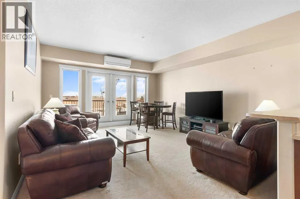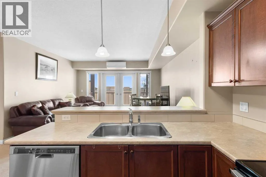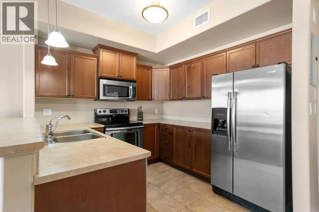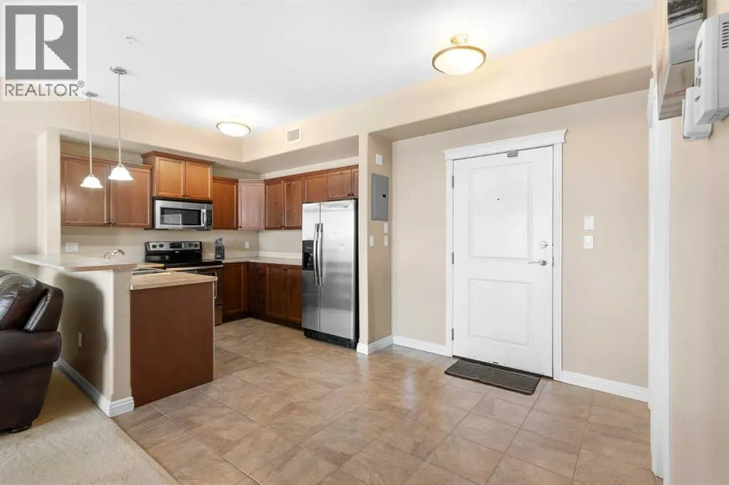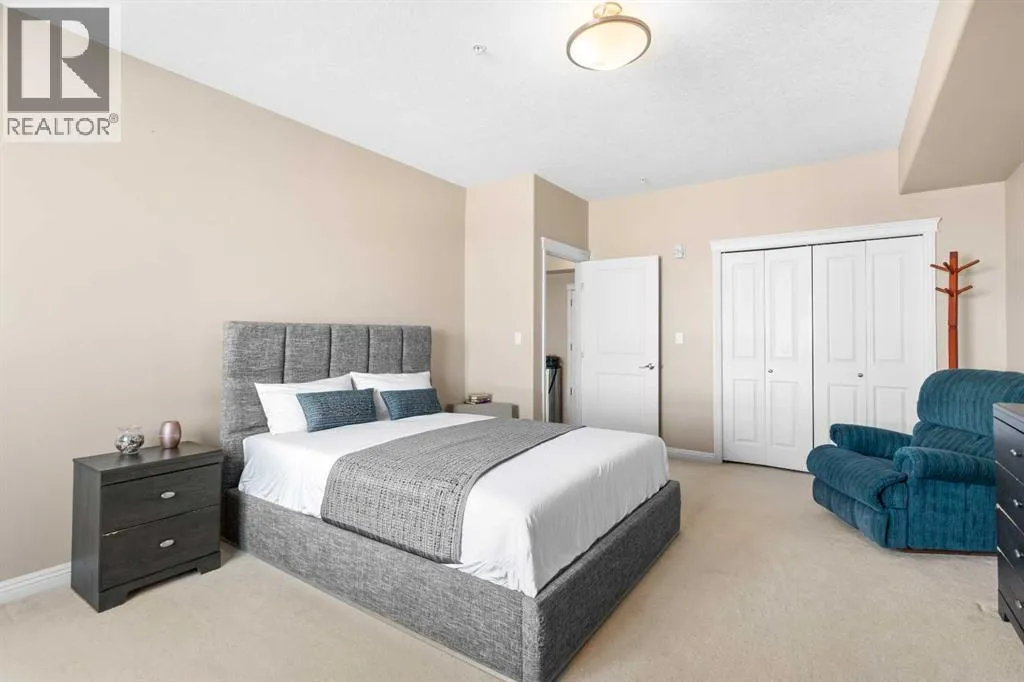Welcome to an elevated lifestyle at Cornerstone Place in Parkview Estates.This expansive unit offers a rare combination of space, natural light, and effortless sophistication. The primary suite is truly impressive at 13'7" x 18'8" â offering endless possibilities. Whether you envision a cozy reading nook, a secondary home office, or a dedicated wellness space, this retreat easily adapts to your lifestyle.The north-facing orientation provides a peaceful, private outlook, with a covered balcony designed for quiet mornings and relaxed evenings. Soaring ceilings and generous proportions enhance the bright, airy atmosphere that flows throughout the home.The open-concept layout comfortably accommodates a full dining table or a refined bar-style seating arrangement â perfect for entertaining or everyday living. An oversized bathroom features in-unit laundry and ample space for additional custom storage, blending practicality with comfort.Cornerstone Place is known for its quiet, impeccably maintained environment and exceptional amenities. Residents enjoy secure underground parking, air conditioning, a fitness centre, recreation lounge with pool table, guest suite, visitor parking, and even a wash bay in the parkade â thoughtful details that truly elevate daily living.Ideally positioned within walking distance to shopping, dining, schools, and parks, this address offers both convenience and the kind of everyday ease that simply makes life flow better.Condo fees include heat, water, garbage, lawn care, snow removal, common area insurance, reserve fund contributions, and overall building maintenance. With heat and water covered in the monthly fee, this allows for simplified, lock-and-leave living in a building that reflects pride of ownership throughout.A refined opportunity for those seeking comfort, space, and a maintenance-free lifestyle â without compromise. (id:27476)