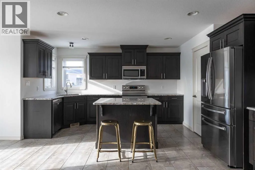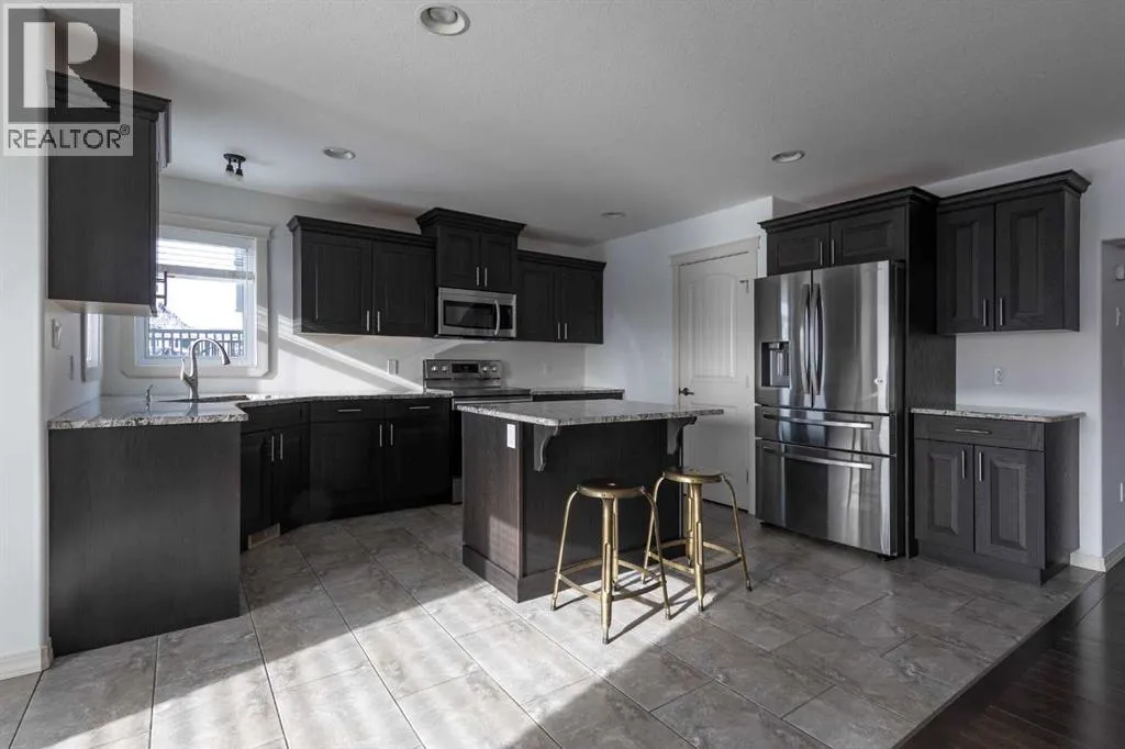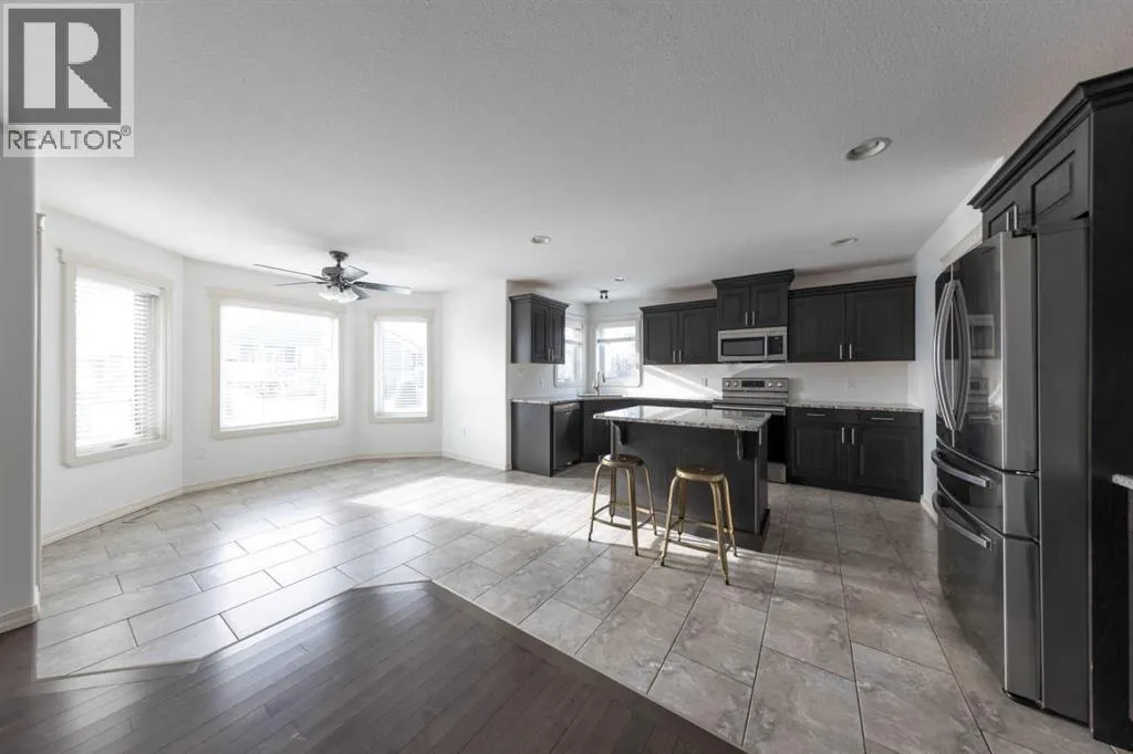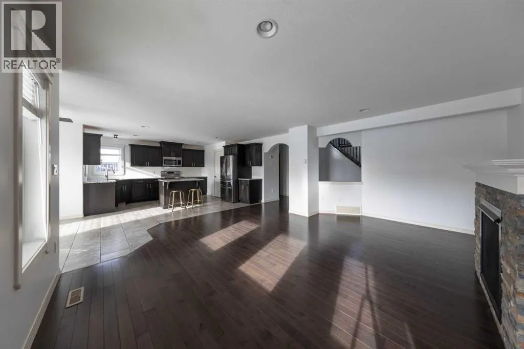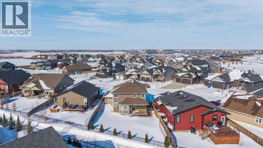 Located in the desirable gated community of Lakeshore Estates within walking distance to Bud Miller Park, this immaculate two-story home offers 2,098 sq. ft. of well-designed living space and beautiful lake views. The home features fresh paint throughout triple pane windows and a bright, welcoming living room complete with a cozy fireplace.The spacious kitchen is perfect for entertaining, showcasing upgraded cabinetry, quartz countertops, a large island, a generous pantry, and all appliances included. A separate dining area provides plenty of room for family gatherings. The main floor also offers the convenience of a laundry room and a 2-piece bathroom.Upstairs youâll find hardwood floors throughout, three large bedrooms, and a bonus room located above the garage. The primary suite features a walk-in closet and a 4-piece ensuite, while the additional bedrooms offer plenty of space for family or guests.The fully developed basement adds even more living space with a comfortable family room, two additional bedrooms, and a full 4-piece bathroom.Outside, enjoy the triple attached heated garage with floor drain and pass-through door, along with a triple concrete driveway. Additional features include roughed-in central vacuum, a fenced yard backing onto a walking path with views of the lake, and a covered deck perfect for relaxing or entertaining. Situated on a quiet cul-de-sac, this home offers the added privacy and security of gated community living. (id:27476)