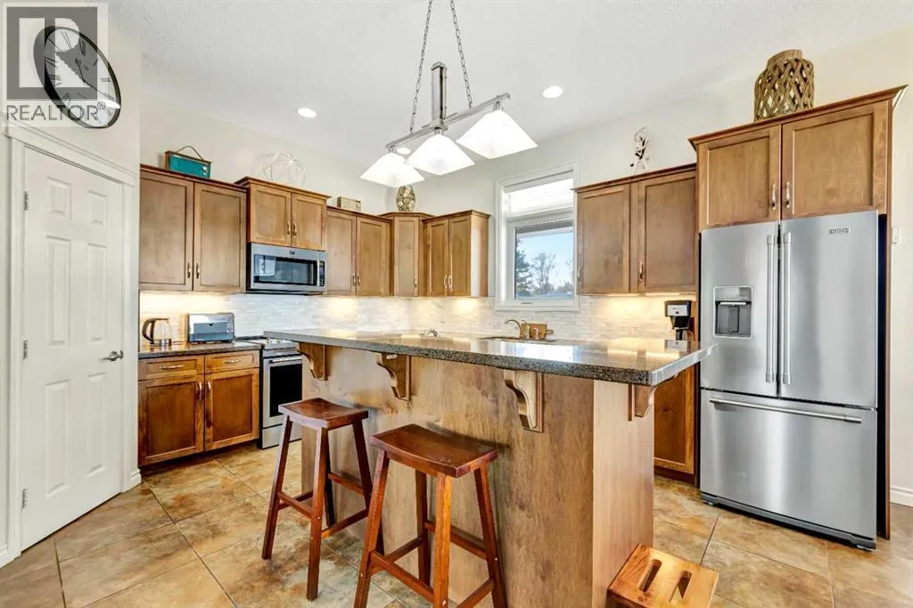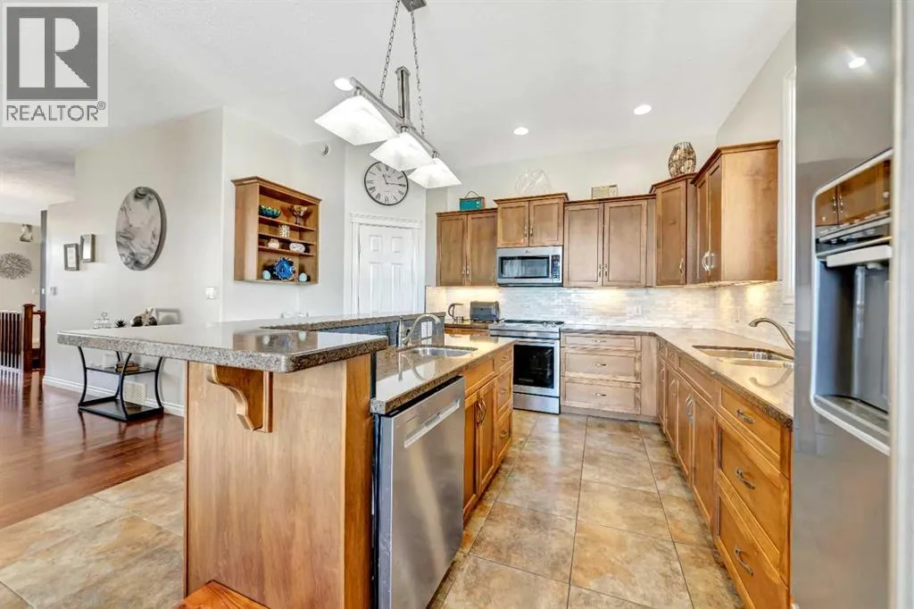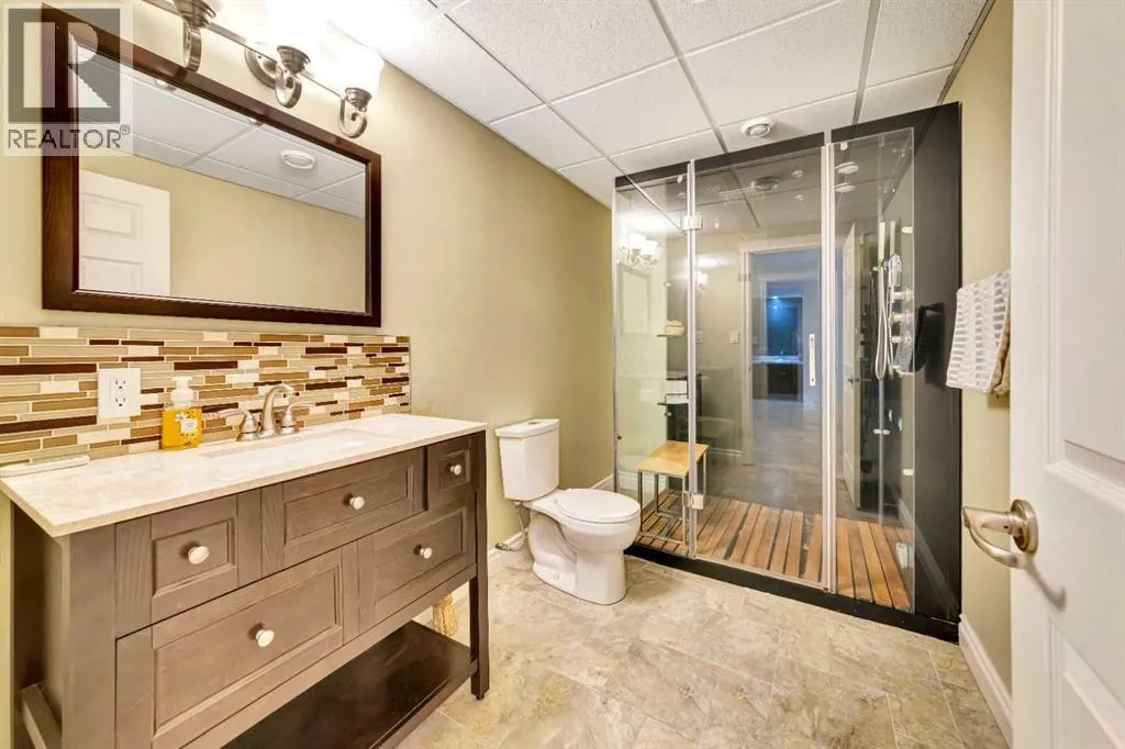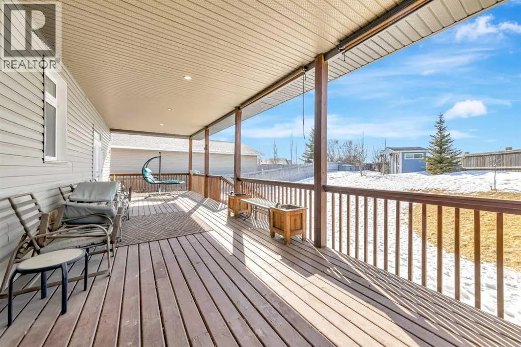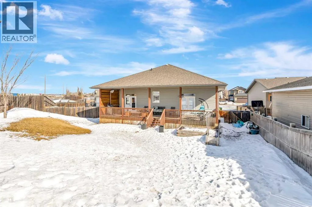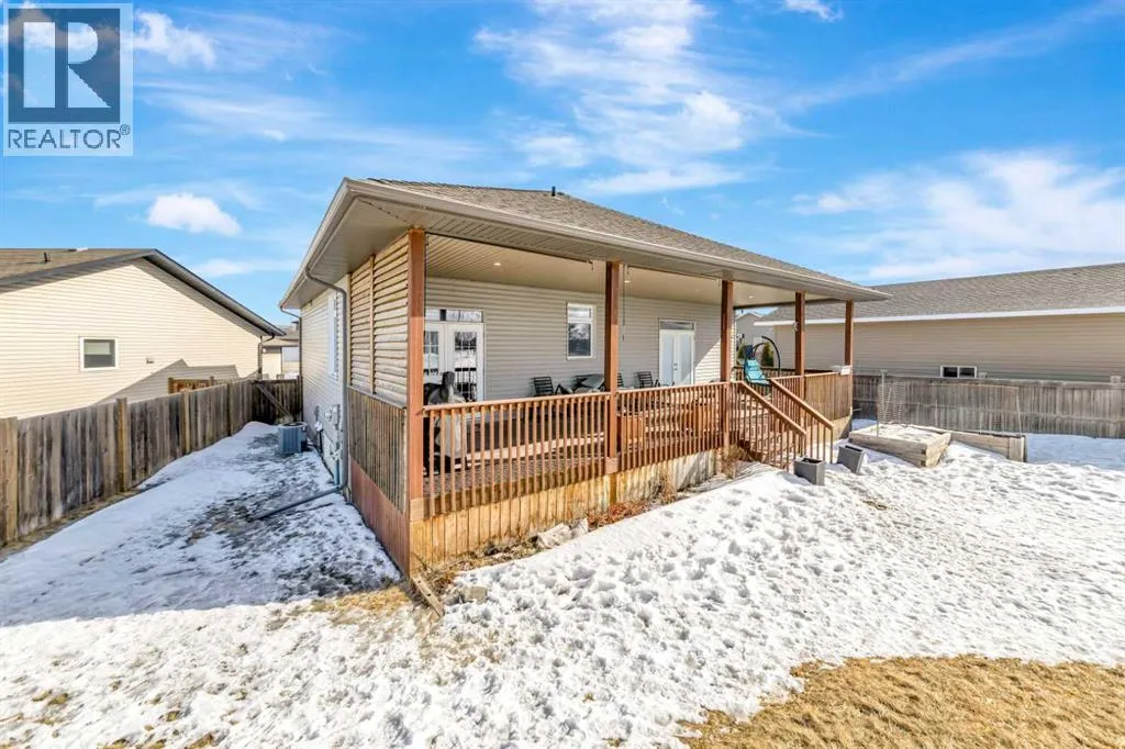 Welcome to this thoughtfully crafted custom bungalow, seated on a generously sized lot with a expansive backyard. This five-bedroom, three-bath home delivers over 1,800 square feet of refined main-floor living, blending comfort, style, and ample space for family life.From the moment you enter, youâll notice a distinctive, open layout that connects living, dining, and kitchen areas and a two-sided fireplace separating the living and dining rooms giving the space a cozy, home feeling. Soaring ceilings and wide windows flood the space with natural light, creating an inviting, sunlit ambiance. The kitchen offers abundant cabinet storage, pantry and quartz counter tops. The dining room has access to the massive covered back deck the runs the entire length of the back of the home. Five versatile bedrooms accommodate various needs, with the primary suite featuring a private ensuite for a tranquil retreat and access to the back covered deck. The main floor also features a large laundry room and access to the 21x23 attached heated garage. The fully finished basement expands your living space with a large recreation area, a flex space that is wired to be a theatre room, small kitchen space, two sizable bedrooms, and another bathroom with steam shower. Step outside to the expansive backyardâwhether you envision a lush landscape, a play zone for kids & pets, or an entertainerâs oasis, this large lot provides endless possibilities. Enjoy the convenience of the location with easy access to shopping, restaurants, Bud Miller Park and local schools. This home also features fresh paint, new central air conditioning, an ICF basement construction and ample parking, including generous RV parking on the MASSIVE lot. (id:27476)