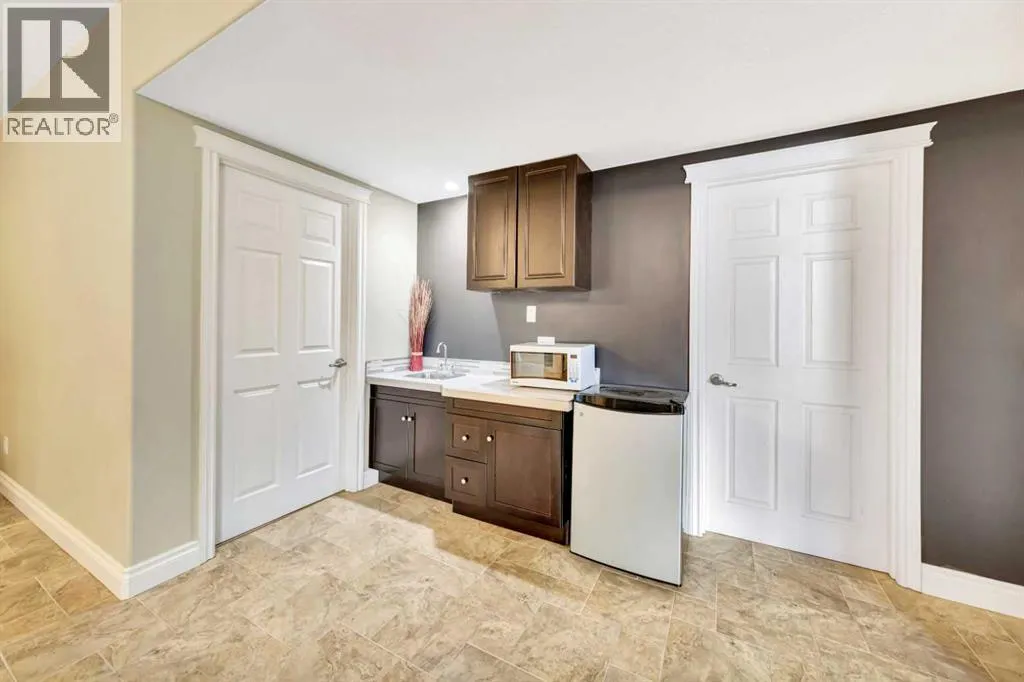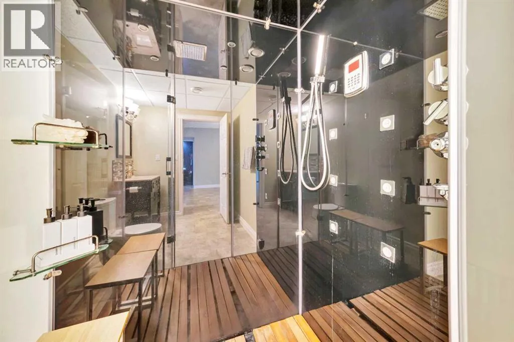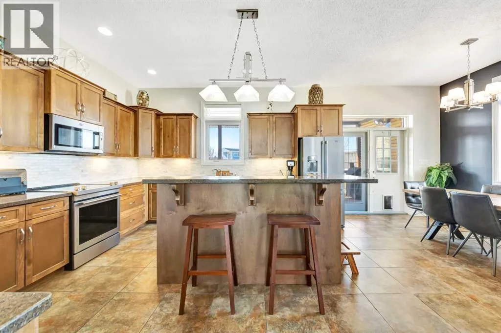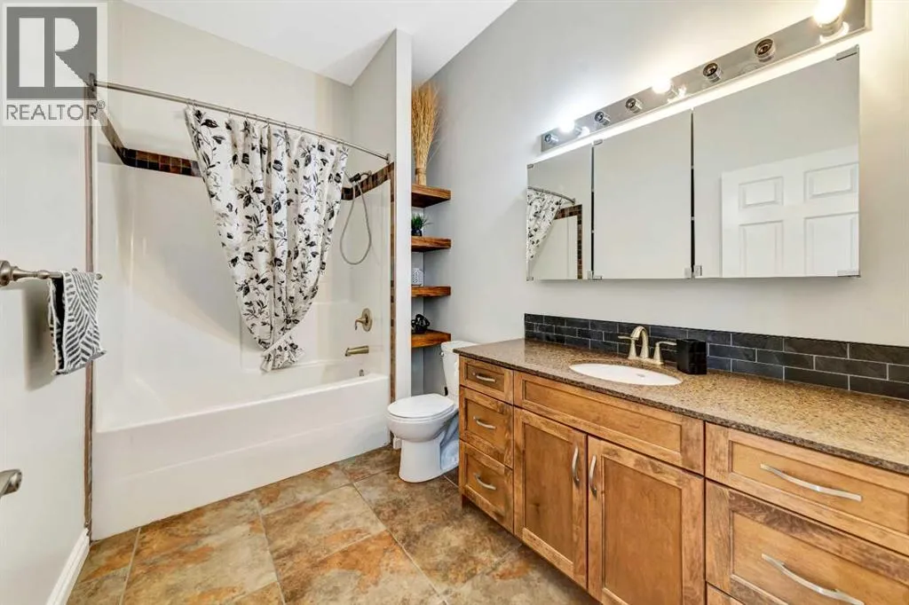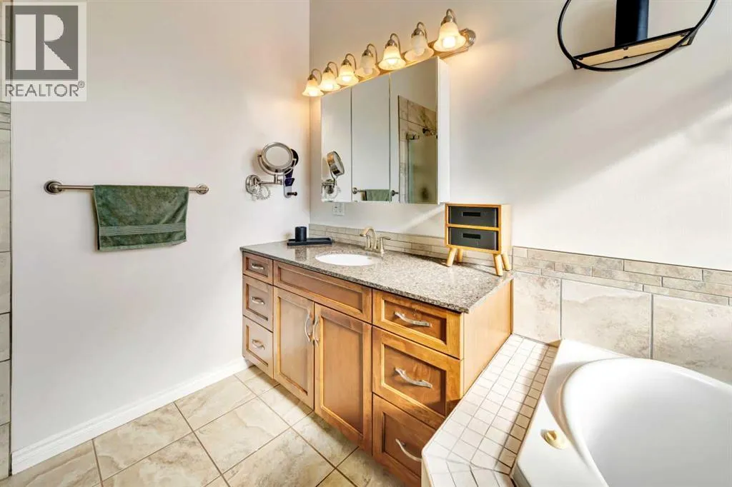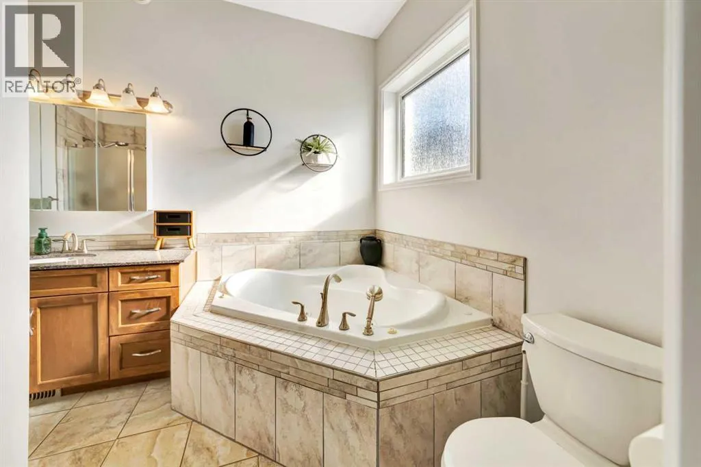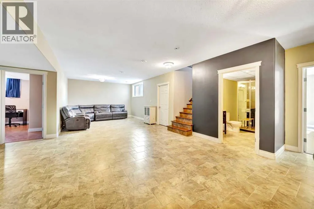 Welcome to this thoughtfully crafted custom bungalow, seated on a generously sized lot with a expansive backyard. This five-bedroom, three-bath home delivers over 1,800 square feet of refined main-floor living, blending comfort, style, and ample space for family life.From the moment you enter, youâll notice a distinctive, open layout that connects living, dining, and kitchen areas and a two-sided fireplace separating the living and dining rooms giving the space a cozy, home feeling. Soaring ceilings and wide windows flood the space with natural light, creating an inviting, sunlit ambiance. The kitchen offers abundant cabinet storage, pantry and quartz counter tops. The dining room has access to the massive covered back deck the runs the entire length of the back of the home. Five versatile bedrooms accommodate various needs, with the primary suite featuring a private ensuite for a tranquil retreat and access to the back covered deck. The main floor also features a large laundry room and access to the 21x23 attached heated garage. The fully finished basement expands your living space with a large recreation area, a flex space that is wired to be a theatre room, small kitchen space, two sizable bedrooms, and another bathroom with steam shower. Step outside to the expansive backyardâwhether you envision a lush landscape, a play zone for kids & pets, or an entertainerâs oasis, this large lot provides endless possibilities. Enjoy the convenience of the location with easy access to shopping, restaurants, Bud Miller Park and local schools. This home also features fresh paint, new central air conditioning, an ICF basement construction and ample parking, including generous RV parking on the MASSIVE lot. (id:27476)