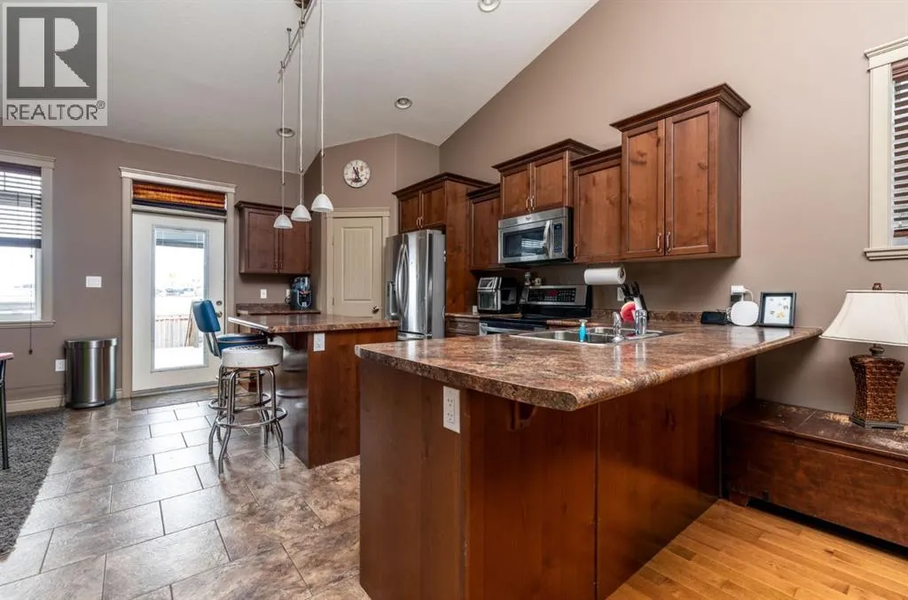 Welcome to this bi-level home in the desirable community of College Park, ideally located just steps from walking paths that lead directly to nearby schools and offering excellent accessibility throughout the area. Built in 2012, this home provides a functional layout in a family-friendly neighbourhood.The main floor features a bright open-concept design that allows for easy everyday living and entertaining. The kitchen offers an abundance of cabinetry, a convenient corner pantry, and plenty of workspace, flowing seamlessly into the dedicated dining area and spacious living room.The primary bedroom includes a walk-in closet and 3-piece ensuite, while a second bedroom completes the upper level.The fully developed basement adds valuable living space with a large family room and two additional bedrooms. Should you desire even more space, there is potential for a fifth bedroom.Outside, the fully fenced backyard features an oversized deck, perfect for relaxing or hosting gatherings.Additional highlights include a double attached heated garage and air conditioning for year-round comfort.This home offers great potential in a well-established neighbourhood close to schools, walking paths, and everyday amenities. (id:27476)