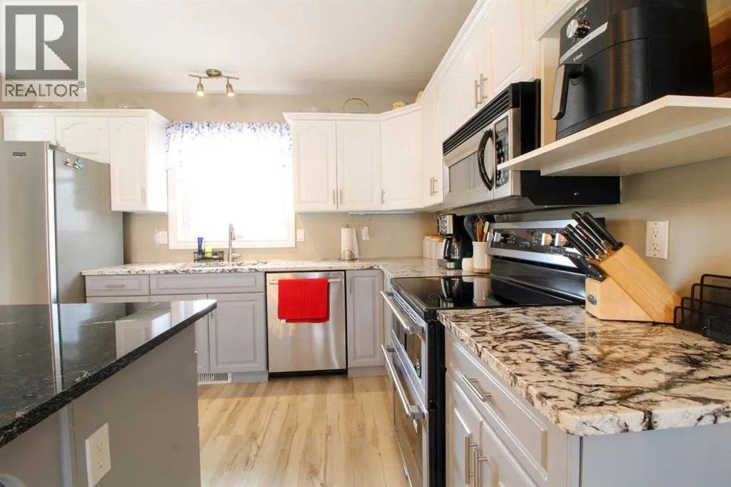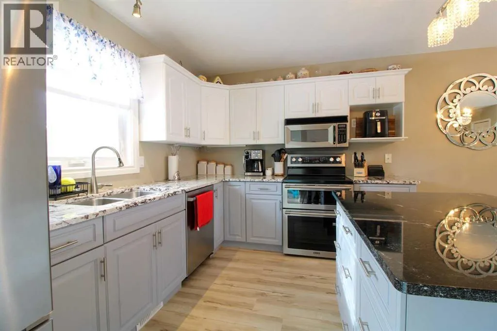 The value adding updates in the last 5 years include: high efficiency furnace, air purification system, hot water heater, refinished kitchen cabinets, new counters tops, updated fridge and stove, central air conditioning, changes to lighting and a natural gas line to the bar-b-que. Other improvements include flooring in 2021 and shingles in 2017! This home is located within walking distance to College Park school, Lakeland College and Bud Miller Park. Enjoy great sight lines from the family room through to the dining and kitchen areas created by the open plan design. Eat a quick meal at the kitchen island or have a family feast in the dining room all while keeping an eye on the children playing in the sunken family room. There are 2 bedrooms on the main floor with the master bedroom having direct access to the main 4-piece bathroom. The fully finished basement features 2 more bedrooms, an additional 4-piece bathroom, the laundry and a generously sized family room. There is lots of parking at this home. It has a heated double attached, concrete driveway, plus side parking for a utility trailer, small RV or another vehicle. The back yard is treed and fenced for privacy and is perfect for pets and outdoor family time. View this beautiful home in a sought-after location! The seller has requested that the property be on the market for 48 hours before reviewing any and all offers. Public Open House Tuesday March 31st from 5:30PM-7:00PM. (id:27476)