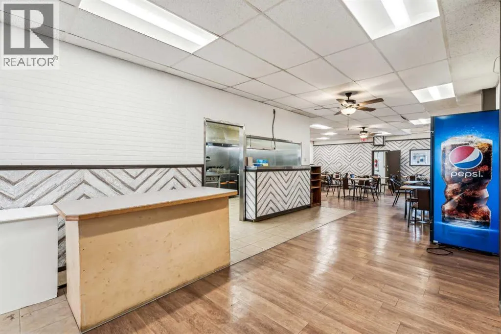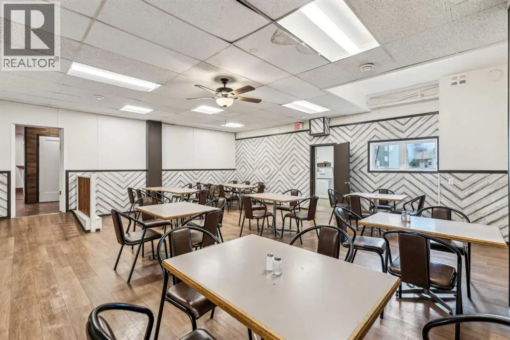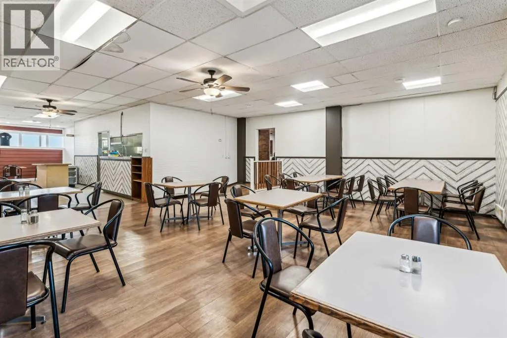 For sale, a fully equipped turn-key restaurant and bar at 14 Railway Avenue South, Lomond, Alberta. This property features a recently renovated kitchen, a rebuilt and extended bar area, triple-insulated front wall, new front windows and back security door, updated electrical work, industrial vinyl plank flooring, new furnace and air conditioning, and fresh paint throughout. The space includes a stainless steel kitchen ventilation system with vertical exhaust, a range guard automatic fire extinguisher system (installed in 2012), and new stairs. With a seating capacity of 53 in the restaurant and 47 in the lounge/bar, there is also potential for VLTs and off-sales. The property draws from a 6,000+ population and is located near local amenities including a firehall, Canada Post, library, UFA, bank, Coop supply and service, skating rink, and curling rink. Ongoing local developments include a solar farm and 80 windmills, with close proximity to K-12 schools. This is a fantastic opportunity to own a well-established, fully renovated restaurant and bar in a growing community. (id:27476)