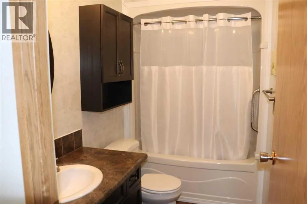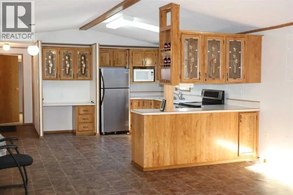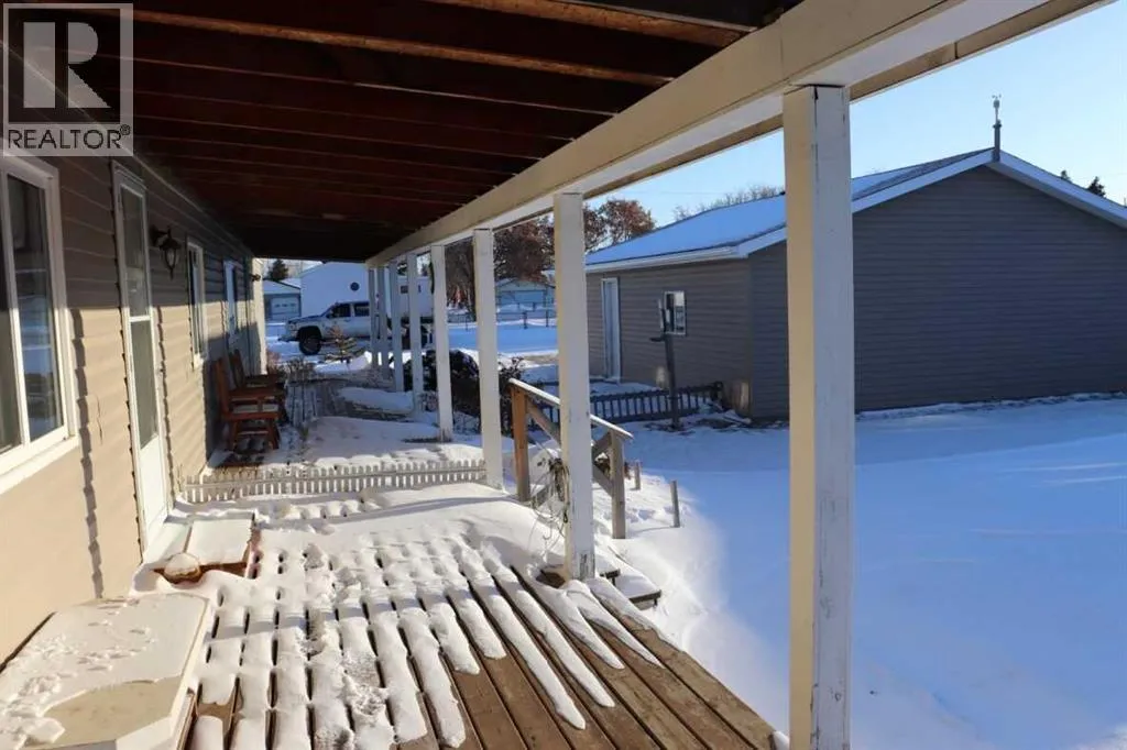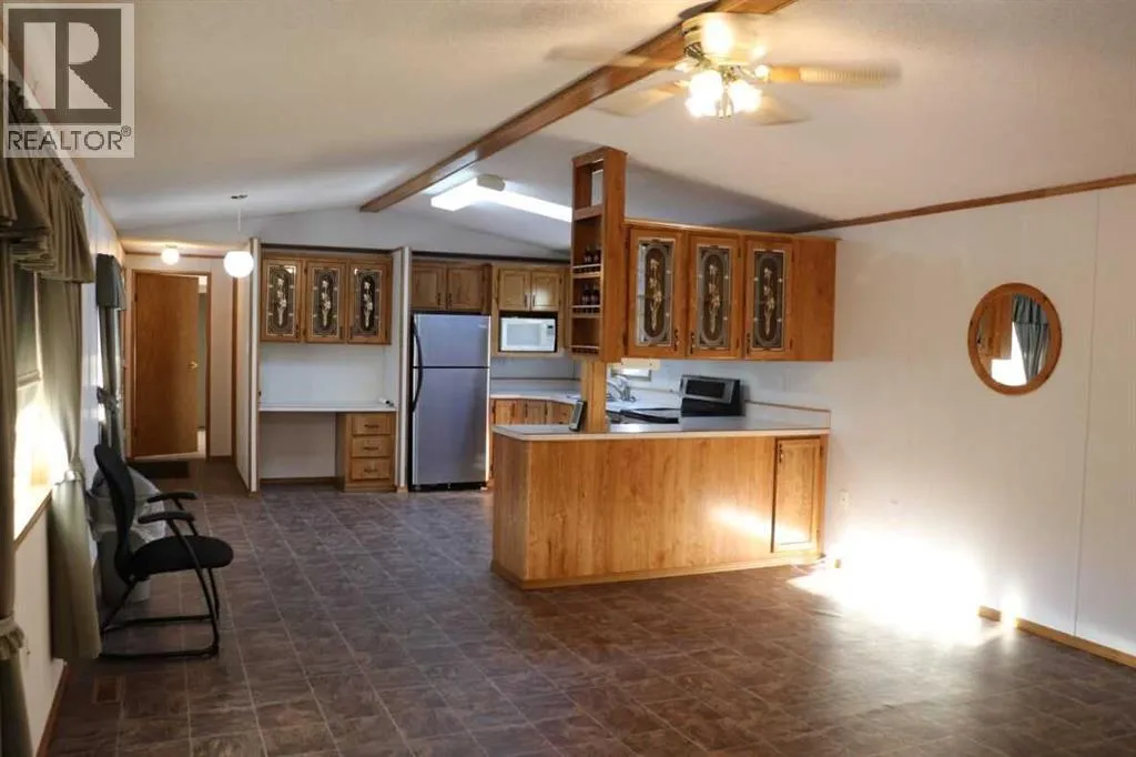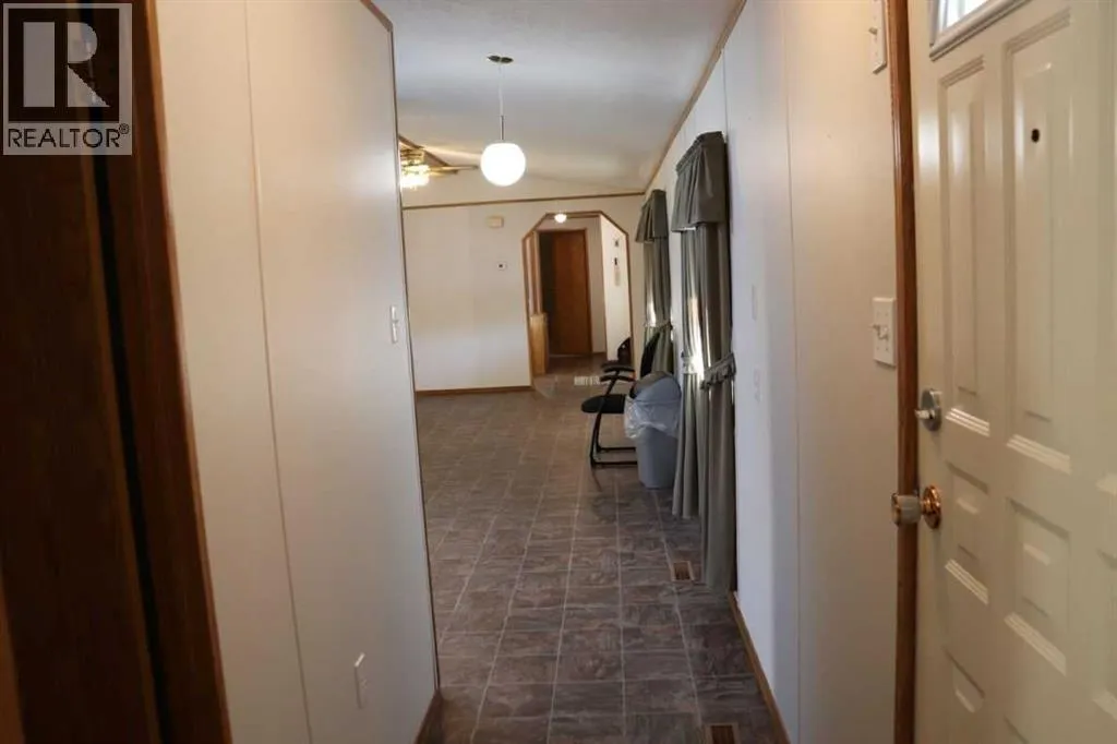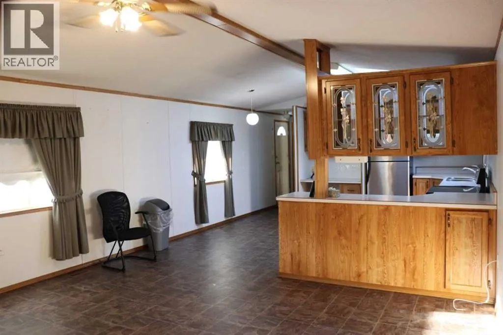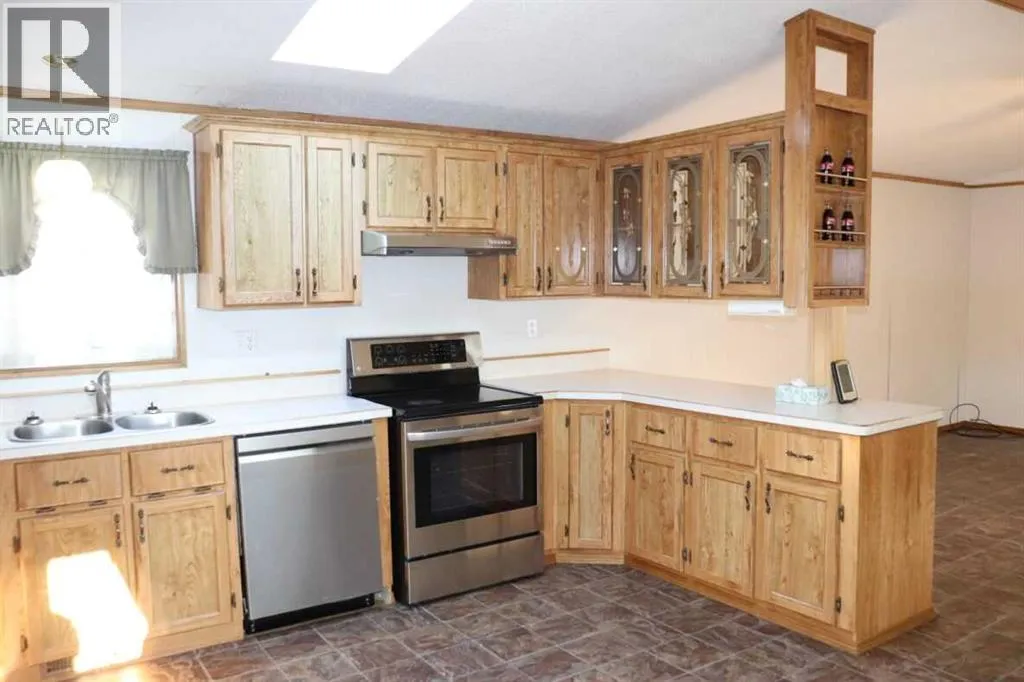 MOVE IN READY! Located in the quiet Village of Lougheed, this home has great access to HWY 13. This beautiful home is ready for a quick possession! Over 1200 sq ft andlocated on a double lot size! This 3 bedroom, 2 bathroom mobile home is open & bright with a spacious living room, large kitchen, 3 generously sized bedrooms, 4pc main bath, plus full 3pc ensuite! There is a very large covered deck, storage shed, and an OVERSIZED insulated garage measuring 32x26. The shingles are newer, newer furnace& HWT, newer appliances, and the best part, central air conditioning. This extremely well kept home is a must see! (id:27476)