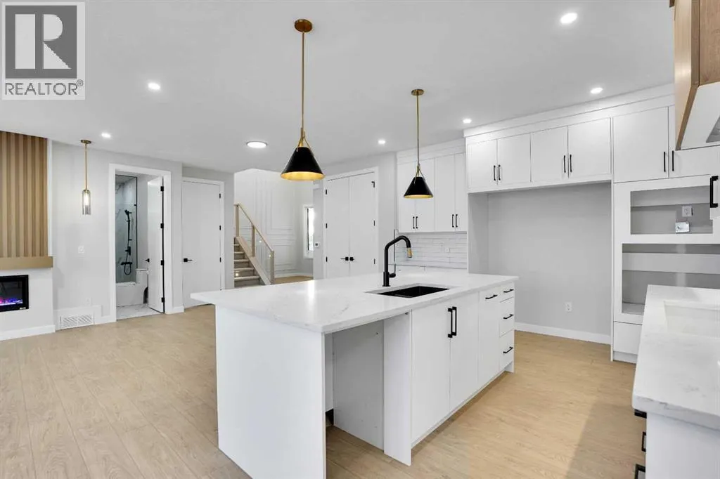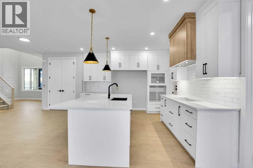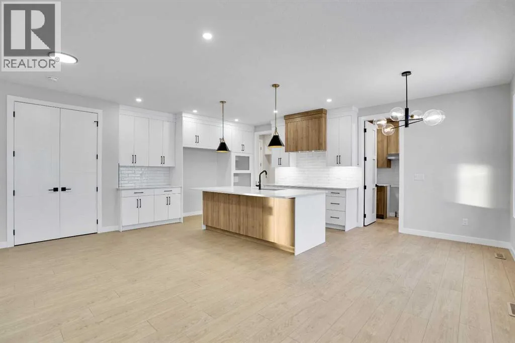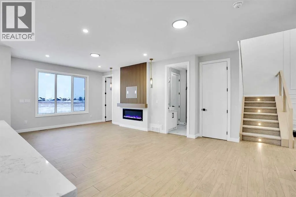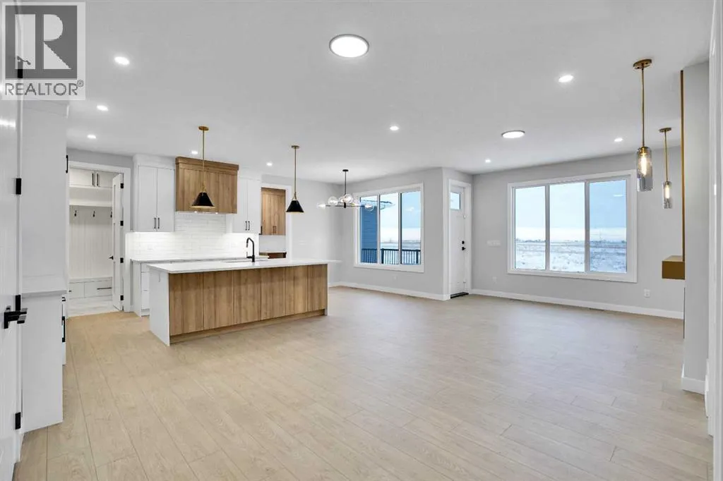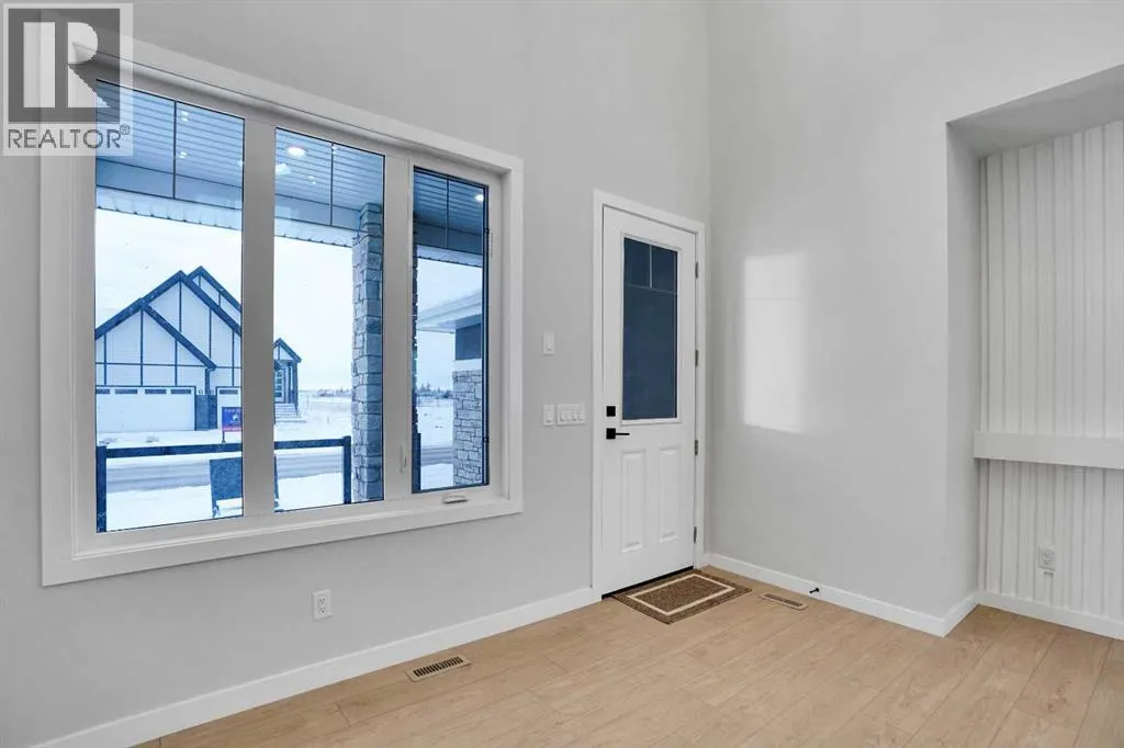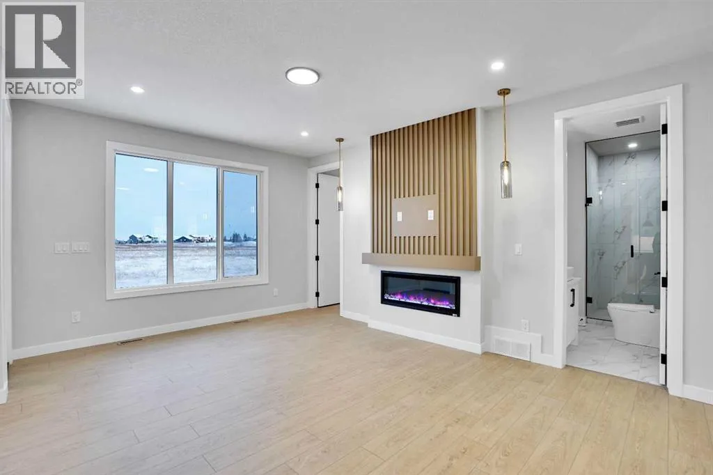 This brand-new custom two-story over 2600 square feet home offers 4 spacious bedrooms and 4 modern bathrooms, including a main-floor bedroom with a full bath. The layout features separate living and family rooms, a stylish dining area, a high-end kitchen plus a convenient spice kitchen with tons of storage. The luxurious primary suite includes a 5-piece ensuite with a soaker tub, tiled shower, and a large walk-in closet. Backing onto a serene canal near a golf course, the home also includes a mudroom and a triple garage, with a walkout basement overlooking peaceful views. Located in the Lakes of Muirfield in Wheatland County, it offers quiet living with quick access to Strathmore, Chestermere, and Calgary. Eligible for the First-Time Home Buyers GST Rebate, this home is a rare opportunityâcontact your realtor to book a showing. (id:27476)