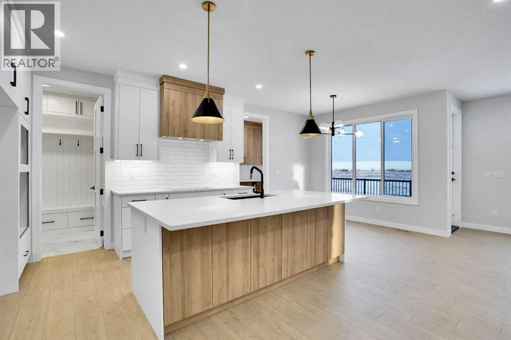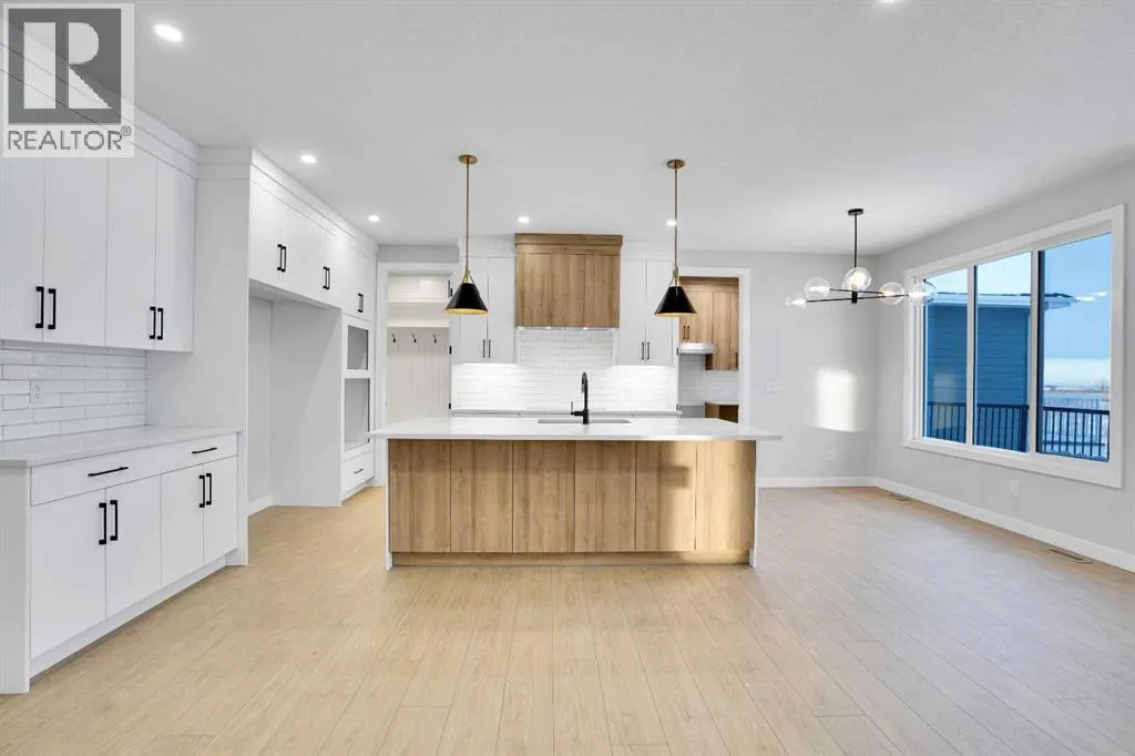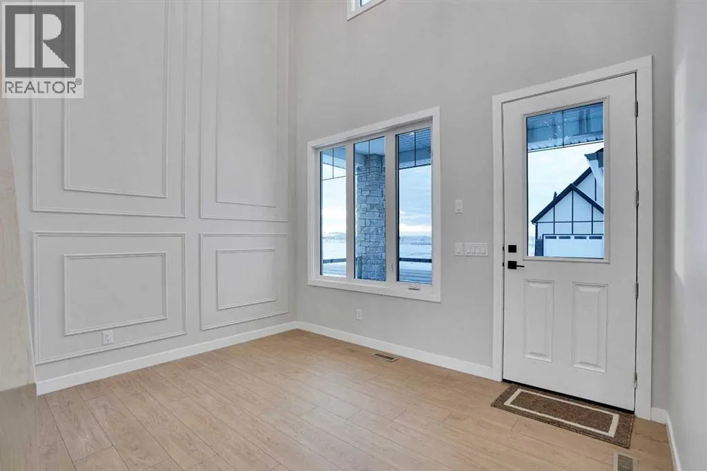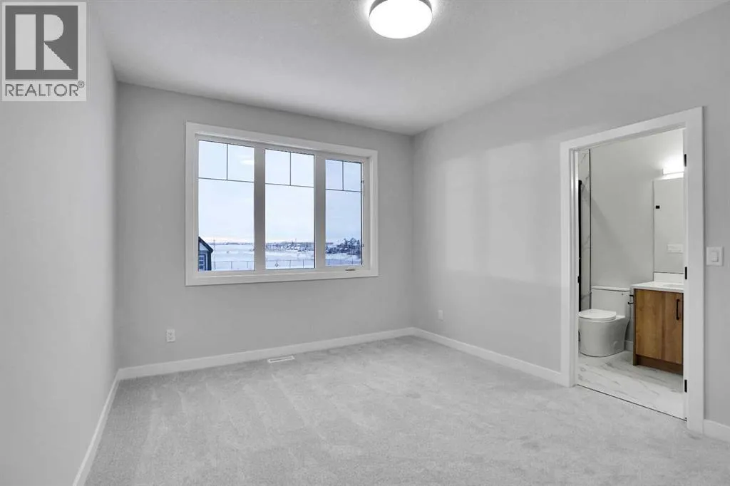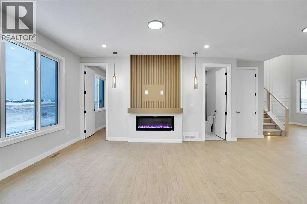 This brand-new custom two-story over 2600 square feet home offers 4 spacious bedrooms and 4 modern bathrooms, including a main-floor bedroom with a full bath. The layout features separate living and family rooms, a stylish dining area, a high-end kitchen plus a convenient spice kitchen with tons of storage. The luxurious primary suite includes a 5-piece ensuite with a soaker tub, tiled shower, and a large walk-in closet. Backing onto a serene canal near a golf course, the home also includes a mudroom and a triple garage, with a walkout basement overlooking peaceful views. Located in the Lakes of Muirfield in Wheatland County, it offers quiet living with quick access to Strathmore, Chestermere, and Calgary. Eligible for the First-Time Home Buyers GST Rebate, this home is a rare opportunityâcontact your realtor to book a showing. (id:27476)