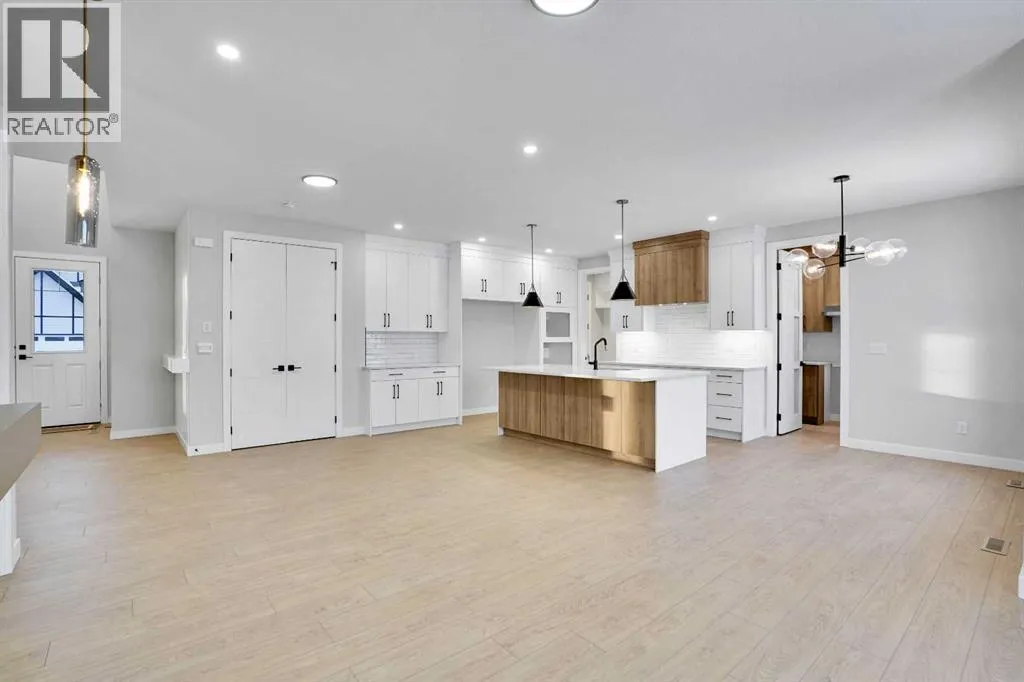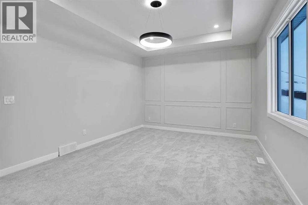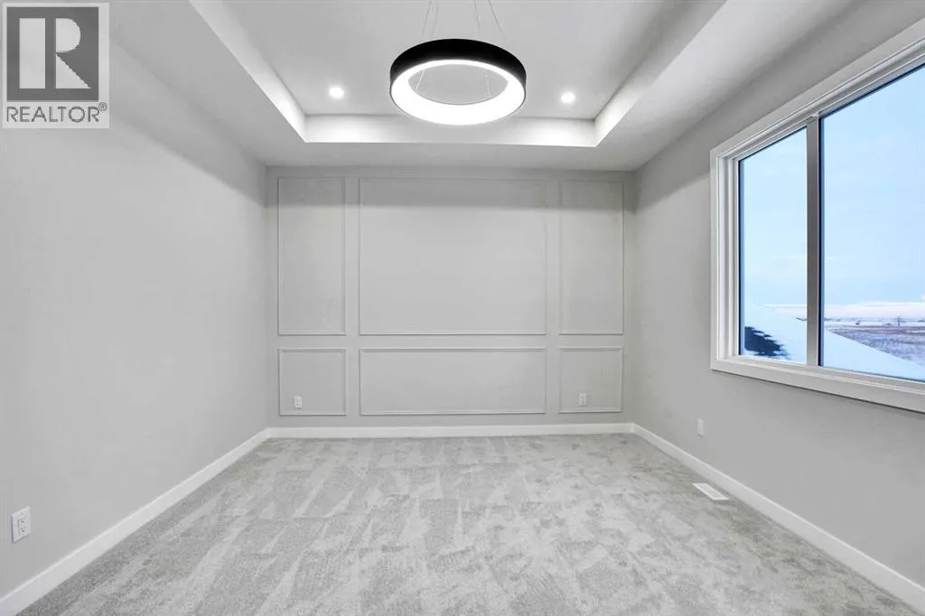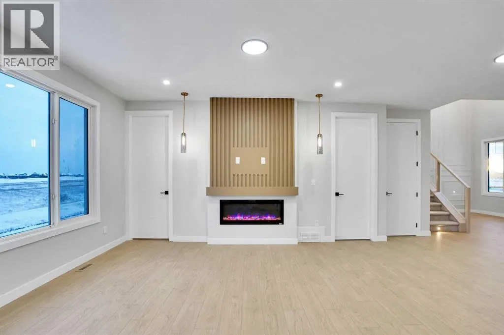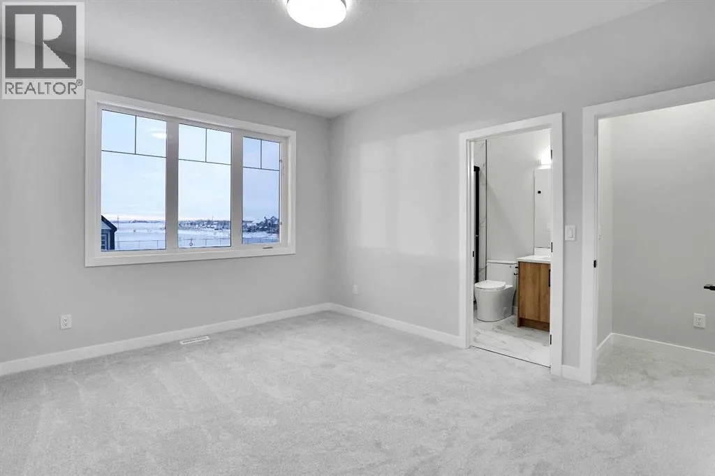 This brand-new custom two-story over 2600 square feet home offers 4 spacious bedrooms and 4 modern bathrooms, including a main-floor bedroom with a full bath. The layout features separate living and family rooms, a stylish dining area, a high-end kitchen plus a convenient spice kitchen with tons of storage. The luxurious primary suite includes a 5-piece ensuite with a soaker tub, tiled shower, and a large walk-in closet. Backing onto a serene canal near a golf course, the home also includes a mudroom and a triple garage, with a walkout basement overlooking peaceful views. Located in the Lakes of Muirfield in Wheatland County, it offers quiet living with quick access to Strathmore, Chestermere, and Calgary. Eligible for the First-Time Home Buyers GST Rebate, this home is a rare opportunityâcontact your realtor to book a showing. (id:27476)