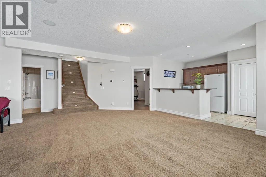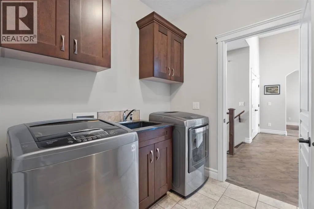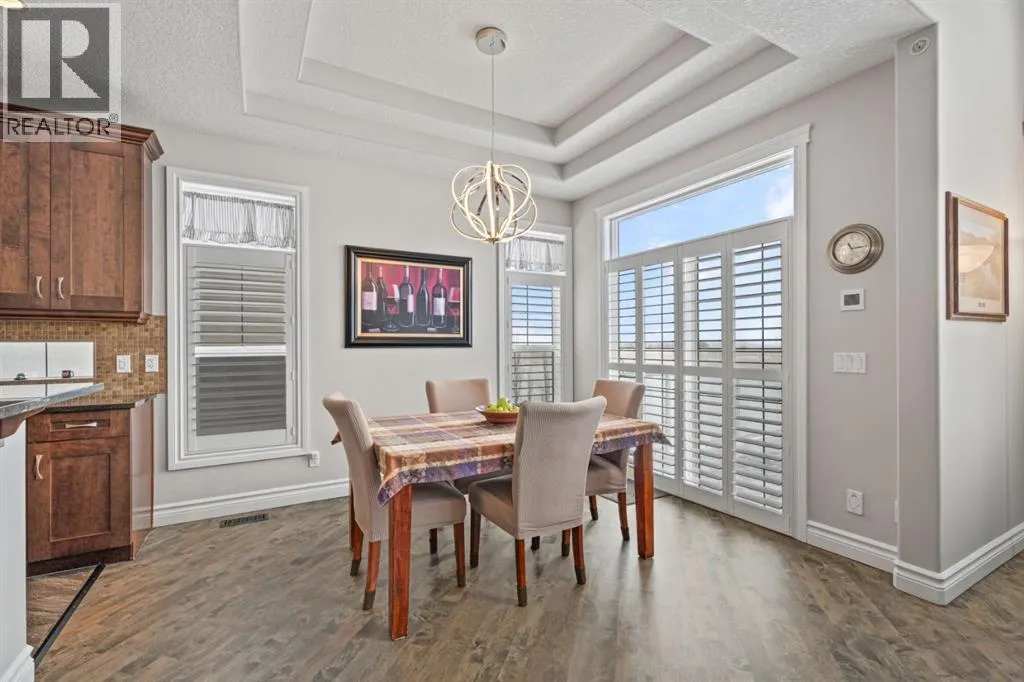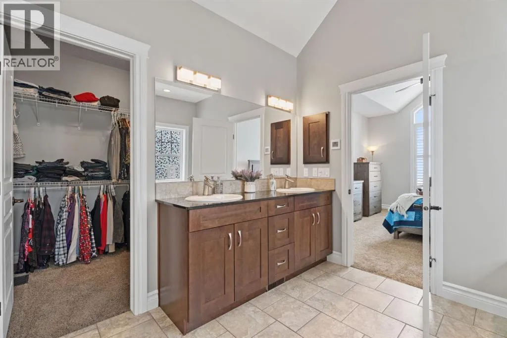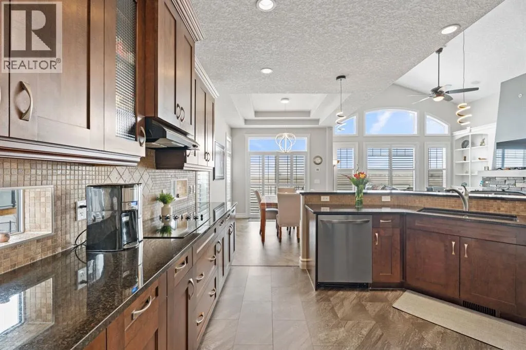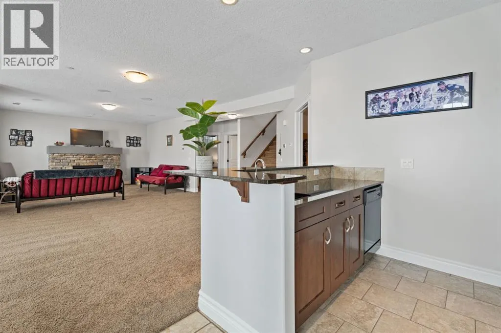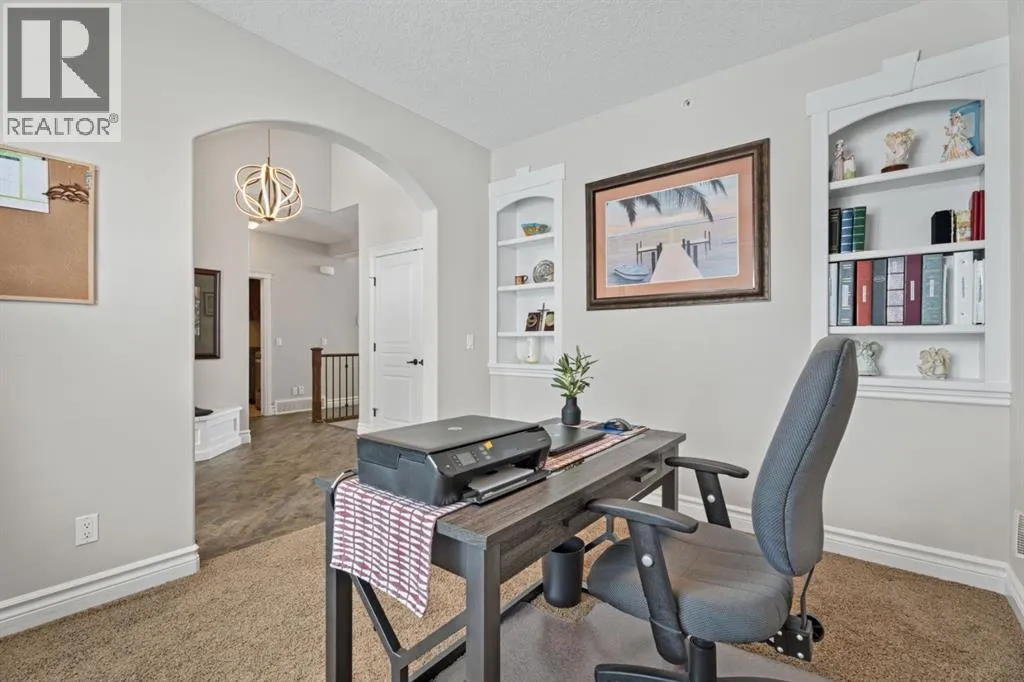 Welcome to golf course living and this beautiful well maintained walk out bungalow in the country. As you step inside, you will marvel at the large foyer and open floor plan, vaulted ceilings, refurbished hardwood floors and upgraded luxury vinyl tile in the kitchen and pantry. Take in the abundance of natural light from the large living room and pocket windows in the kitchen. This open and cozy upper main level offers so much space, including a comfortable office/den, large kitchen with granite counters and breakfast bar, walk through pantry with pocket doors and main floor laundry, extended cabinets, built in storage benches and under cabinet lighting. The feature fireplace offers warmth and ambience for those cold winter nights. Enjoy the oversized garage, extra wide driveway, work bench and tool wall for working on various projects with plenty of shelving for storage. Enjoy the pristine view of wildlife and golfers off of the large deck and invite neighbours, family and friends to join you on the aggregate patio below. The front and backyard are fully landscaped and an automatic underground sprinkler system is in place. This community is 30 minutes from Calgary, 20 minutes to Chestermere and 20 minutes from Strathmore. Enjoy time on the 18 Hole Golf Course, a secure RV Storage lot exclusive to Lakes of Muirfield Residents and the natural landscapes of country living and wildlife backing onto the canal! Book your showing today with your favourite REALTOR®. (id:27476)
