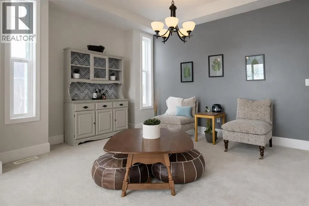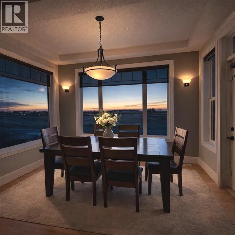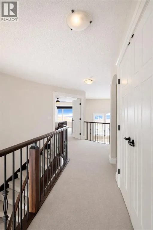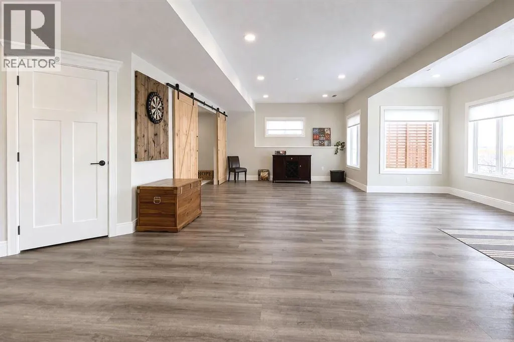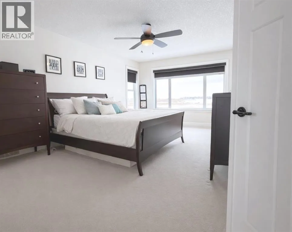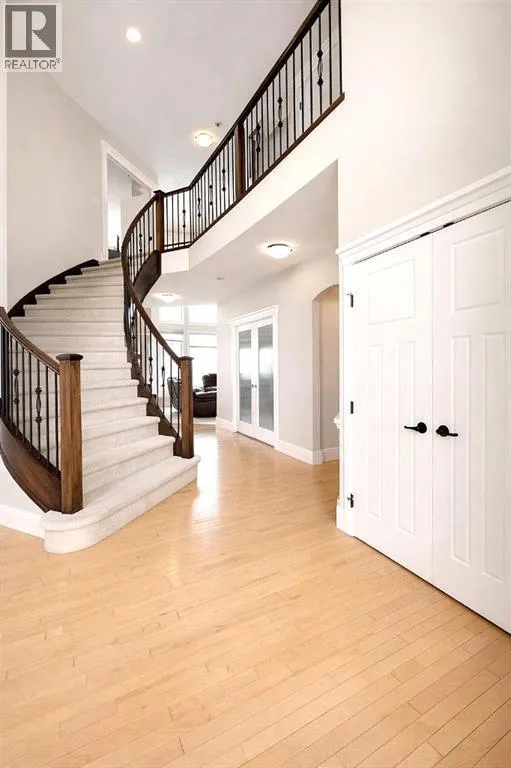 Introducing this amazing luxury home in the prestigious âLakes of Muirfieldââoffering over 4,200 sq ft of developed living space, perfectly positioned backing onto the canal and golf course with greenspace to the side and rear, creating a rare private setting with no neighbours behind! This stunning residence showcases 4 bedrooms and 4 bathrooms, impressive curb appeal, and a grand interior featuring hardwood flooring and a striking curved staircase. The main level boasts a vaulted family room with oversized windows open to above, a formal dining room, and an elegant open-to-above living room, flooded with natural light. The spacious kitchen is designed for both function and style with rich cappuccino cabinetry, a corner pantry, a large sit-up island with prep sink, an additional main sink overlooking the views, and a bright dining nook with tray ceiling and direct access to the large deck with gas line for BBQâperfect for entertaining. A private office/den with sleek sliding pocket doors and a powder room complete this level. Upstairs, a grand double-door entry leads to the luxurious primary retreat featuring a spa-inspired ensuite with oversized shower, standalone soaker tub, dual vanities, and a generous walk-in closet, while two additional bedroomsâboth with walk-in closetsâalong with a full bathroom and convenient upper laundry complete the upper floor, all enhanced by open-to-below design elements that elevate the homeâs sense of space and elegance. The fully developed basement offers vinyl plank flooring throughout, a large recreation/entertainment space, gym area, fourth bedroom, and full bathroom, with direct access to a covered patio and beautifully landscaped yard featuring a pergola and shed, all set against serene canal and golf course views. Note, New roof, siding & trim! Ideally located just minutes to Strathmore, Langdon, and Chestermere, with an easy 20-minute commute to Calgary and close proximity to the new De Havilland plantâthis is luxury living in a peaceful, scenic setting. (id:27476)