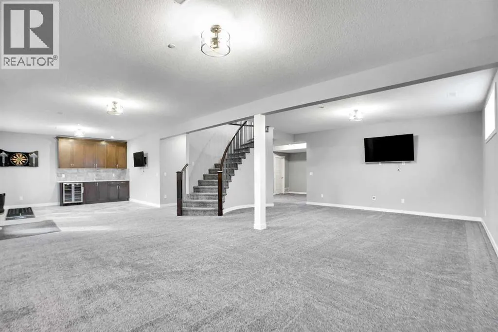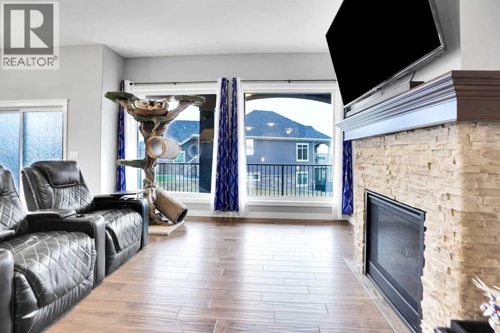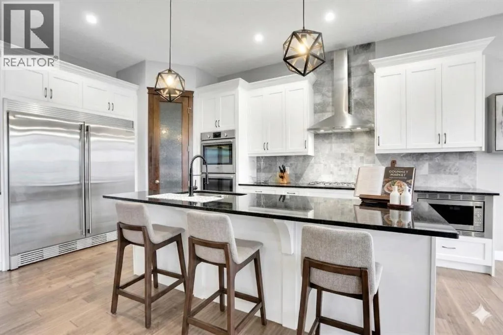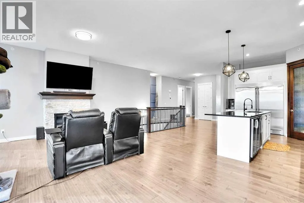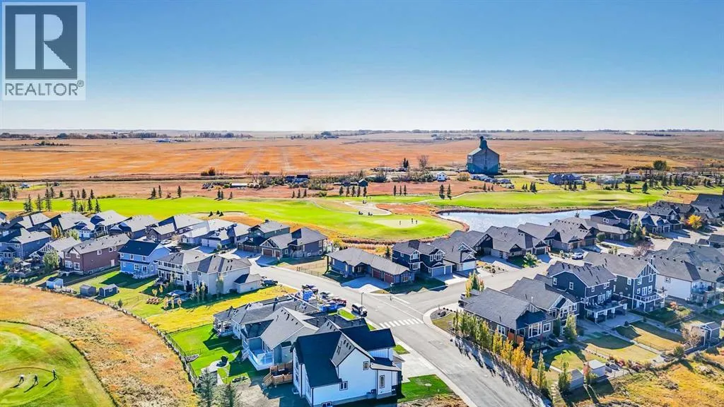 Nestled within the prestigious Lakes of Muirfield community in Lyalta, this exceptional walk-out bungalow offers 3,773 sq.ft. of beautifully finished living space, complemented by an oversized, heated 4-car garage nearing 1,000 sq.ft.âa dream for car enthusiasts, hobbyists, and anyone craving extra room to create.From the moment you step inside, the home sets an elevated tone with engineered hardwood floors, 8' doors, and an expansive, thoughtfully designed main level. A spacious front den and a well-appointed laundry room add everyday convenience.The chefâs kitchen truly anchors the home, featuring a massive eat-up island, granite countertops, stainless steel appliances including double ovens, a gas range, Sub-Zero fridge, corner pantry, and extensive cabinetry. It flows seamlessly into the dining area and out to a private deck overlooking the 10th greenâan ideal spot for morning coffee or unwinding at sunset.The bright living room, warmed by a double-sided fireplace, creates an inviting space for gathering. Just beyond, the primary suite becomes a true retreat, sharing the double-sided fireplace, offering direct deck access, and showcasing a spa-inspired 5-piece ensuite with dual sinks, a soaker tub, steam shower, and walk-in closet.A versatile second room on the main floor adds flexibilityâperfect as a home gym, guest room, or easily converted into an additional bedroom with the addition of a wardrobe. A full 4-piece bath and extra storage complete the level.The fully developed walk-out basement is an entertainerâs haven, featuring a sprawling recreation area, a wet bar with a new wine fridge, two oversized sound-proofed bedrooms, a stylish 4-piece bath, and abundant storage. Step outside to the covered patio and enjoy a fully fenced corner lot backing onto green space, with views of the Lyalta grain elevator and the 10th greenâan idyllic setting for sunrise coffees and peaceful evenings.Experience the serenity of country livingâstarry skies, northern light s, and quiet nightsâwhile staying just 15 minutes from Strathmore, Langdon, and Chestermere, and only 20 minutes from Calgaryâs city limits. This hidden gem blends luxury, space, and tranquility in a thriving golf community. (id:27476)
