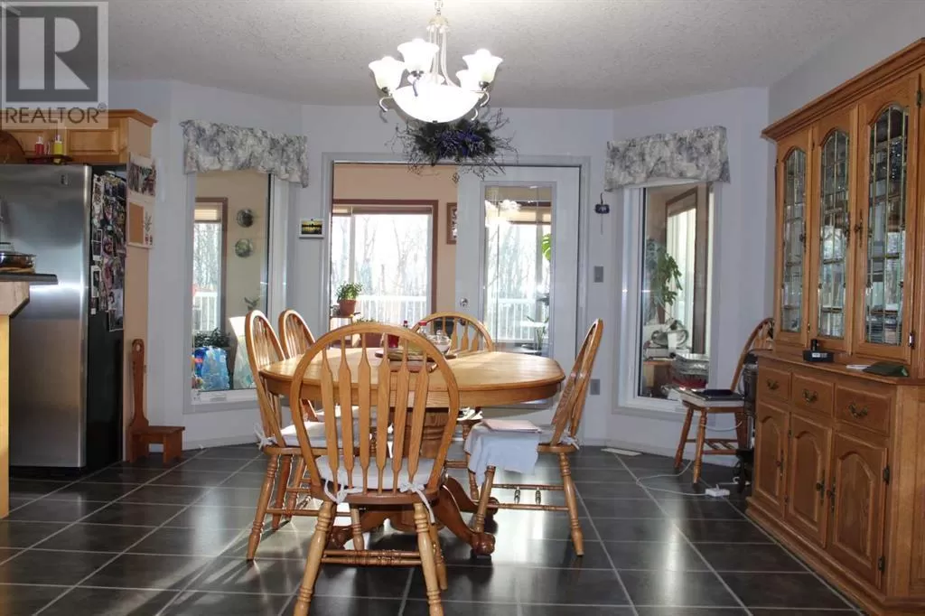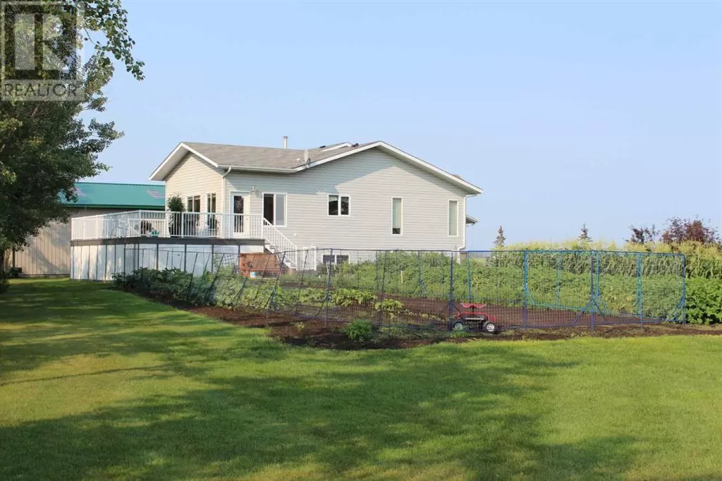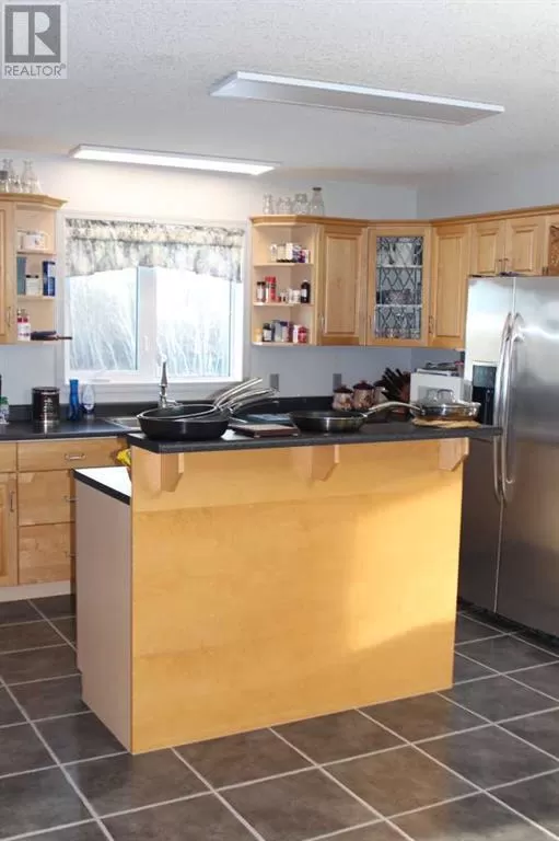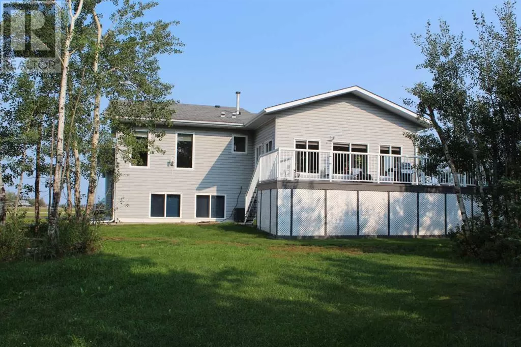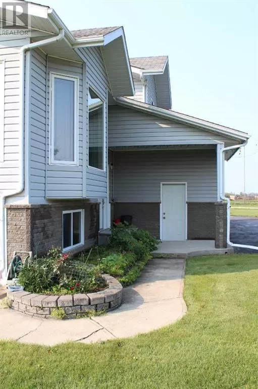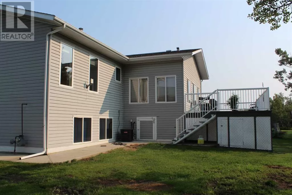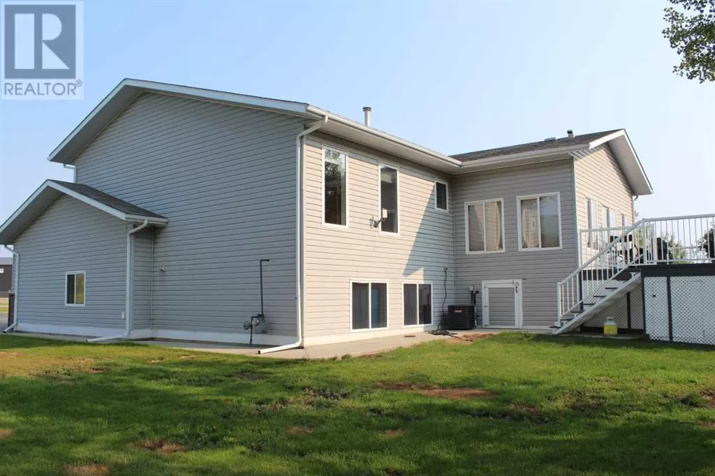 Unbeatable location and beautiful curb appeal! This property is truly a gem within the Town of Manning limits! Pavement leads you right up to the front doorstep! As you enter the 5 bedroom and 3-bathroom home, a welcoming feeling is created. The open floor plan with a custom-built kitchen features maple cabinets, an island, eating bar, and walk-in pantry. The dining area leads to the heated, 4 season sunroom surrounded by large windows. Step out onto the maintenance free back deck with mature surrounding trees to enjoy the peacefulness and privacy while having your summertime family meals or entertaining! The large master bedroom features a full ensuite with walk-in shower, jacuzzi tub and walk-in closet. Just a few steps up you will find two other generous sized bedrooms with large windows and main floor laundry. The fully developed cement basement with in-floor heat presents a 9 ft ceiling family room with an abundance of natural lighting from the large windows. There are two more generous sized bedrooms, a 4-piece bathroom and plenty of storage spaces. The home has a lot of upgrades including the security system, highspeed internet, super sucker vent system, central a/c, Hunter Douglas blinds, composite decking, under the sunroom is a cold room with a thermostat, R50 insulation and 2 inches of extra Styrofoam on the top, plus an extra panel box wired for emergency use of a generator. Other recent updates include the dishwasher, stove, washer, dryer, and hot water tank. As you enter the garage you will notice an appealing epoxy flooring finish, underfloor heat and two garage doors making it very easy for parking. The yard is beautifully manicured with flowers, a garden area as well as the saskatoon and apple trees. Outbuildings include the 32â x 40â pole shed with 12â overhead door, a graveled floor, led lighting and electric outlets on every post with split boxes. With the inflationary costs and hassles to build a home today, this turnkey real e state is truly exceptional! Call to view! (id:27476)