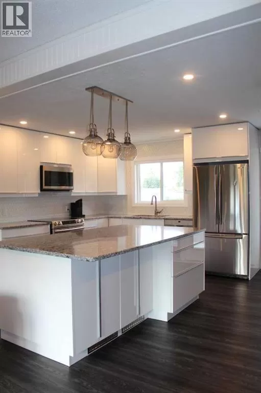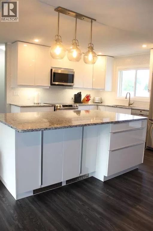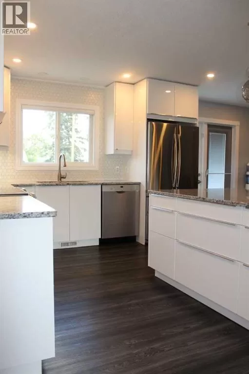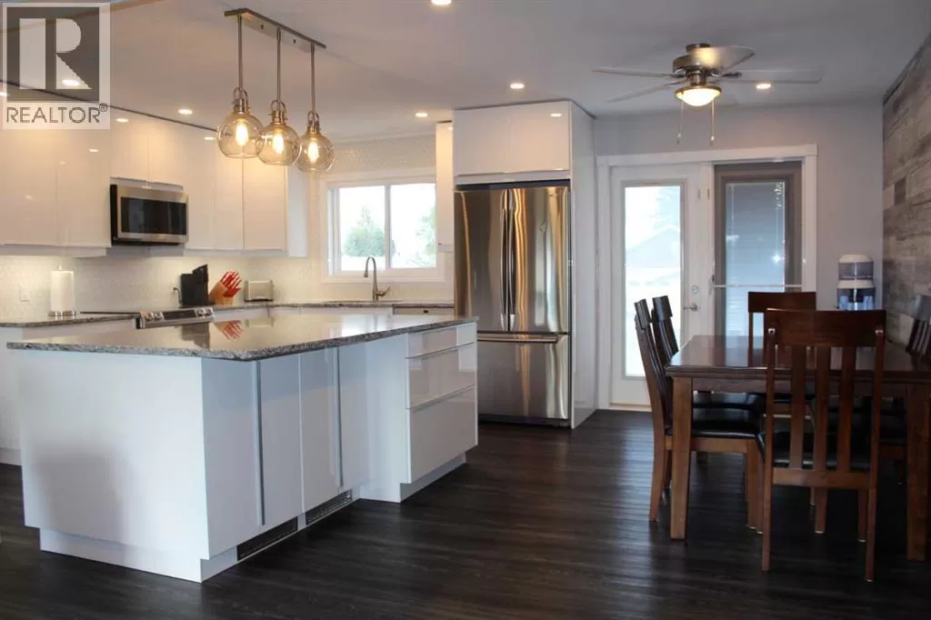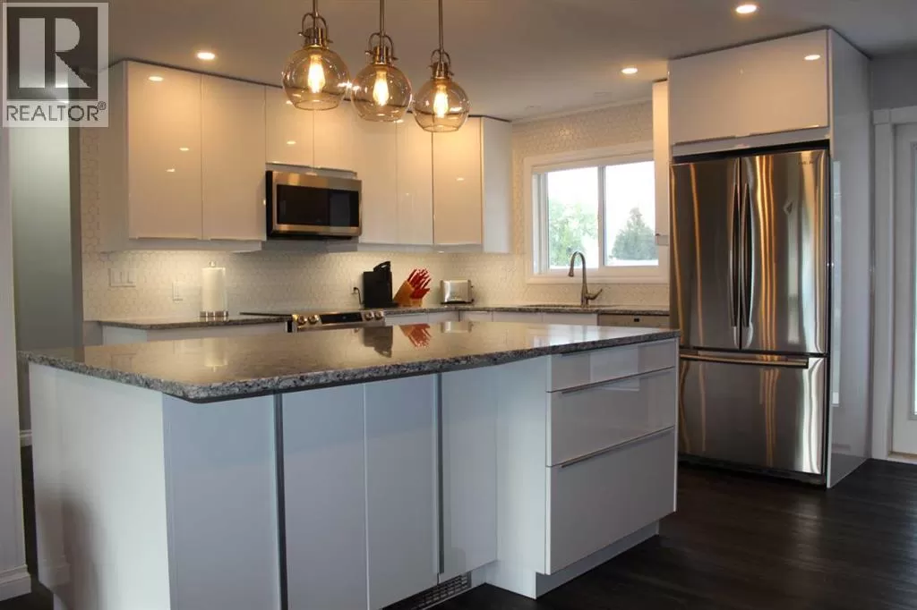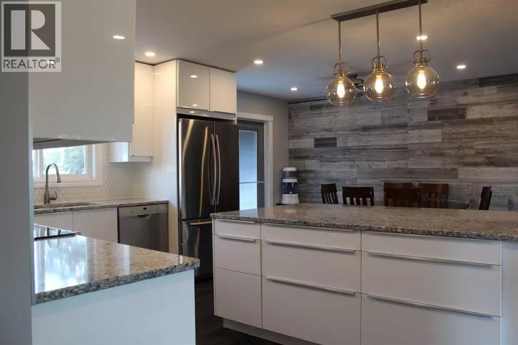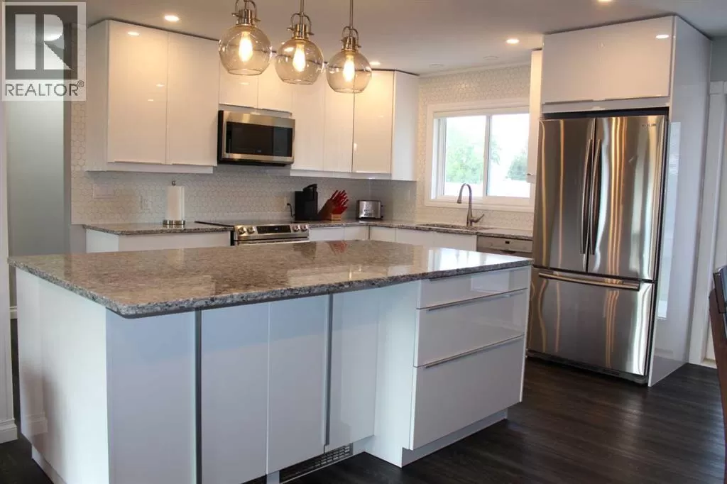 Price reduced! Welcome to this meticulously maintained bungalow, ideally situated on a quiet street. Step inside to discover a thoughtfully designed, open-concept floor plan that maximizes every inch of living space. The main level boasts a bright and airy atmosphere, seamlessly connecting the kitchen, dining, and living areas â perfect for both everyday living and entertaining. The inviting, newly updated kitchen offers ample storage and counter space to meet all your culinary needs. Features include an abundance of white cabinetry with under-cupboard lighting, a central island with a built-in eating area and storage, a tiled backsplash, a convenient closet pantry, and sleek stainless-steel appliances. Host large gatherings easily in the generous kitchen/dining and living room area, which opens through garden doors to an east-facing deck â ideal for morning sun and outdoor enjoyment. The main floor also accommodates three well-sized bedrooms, including a primary suite complete with a walk-in closet. This home showcases numerous recent upgrades, including luxury vinyl plank flooring, modern kitchen and bathroom cabinetry and finishings, stylish tiled backsplash, triple-pane windows throughout, an egress window in the basement bedroom, updated exterior doors, pot lighting, and much more. Additional updates include the roof shingles, furnace, and hot water heater. This spacious basement is mostly finished and features a recreation room, an additional bathroom, and a fourth bedroom with egress window - providing flexible space for a growing family or guests. Outdoors, enjoy a beautifully manicured and fully fenced double lot with rich garden soil, Saskatoon berry trees, and a generous east-facing deck for entertaining. A large semi-attached garage with a covered port and ample paved driveway parking completes this exceptional family home. (id:27476)