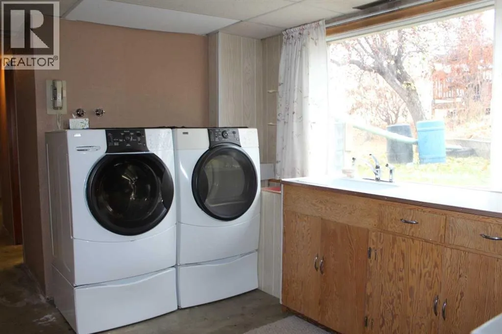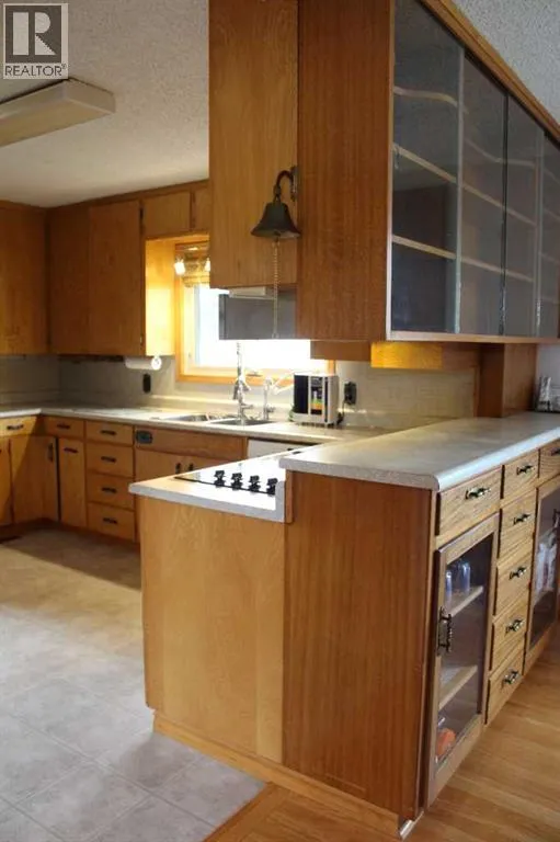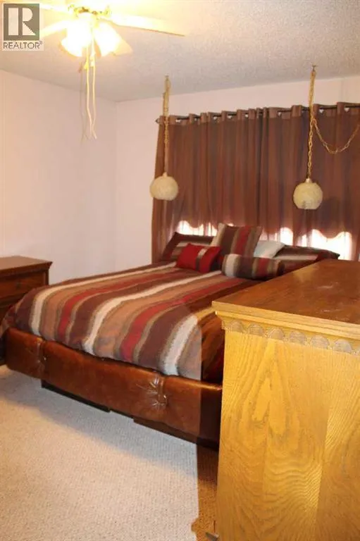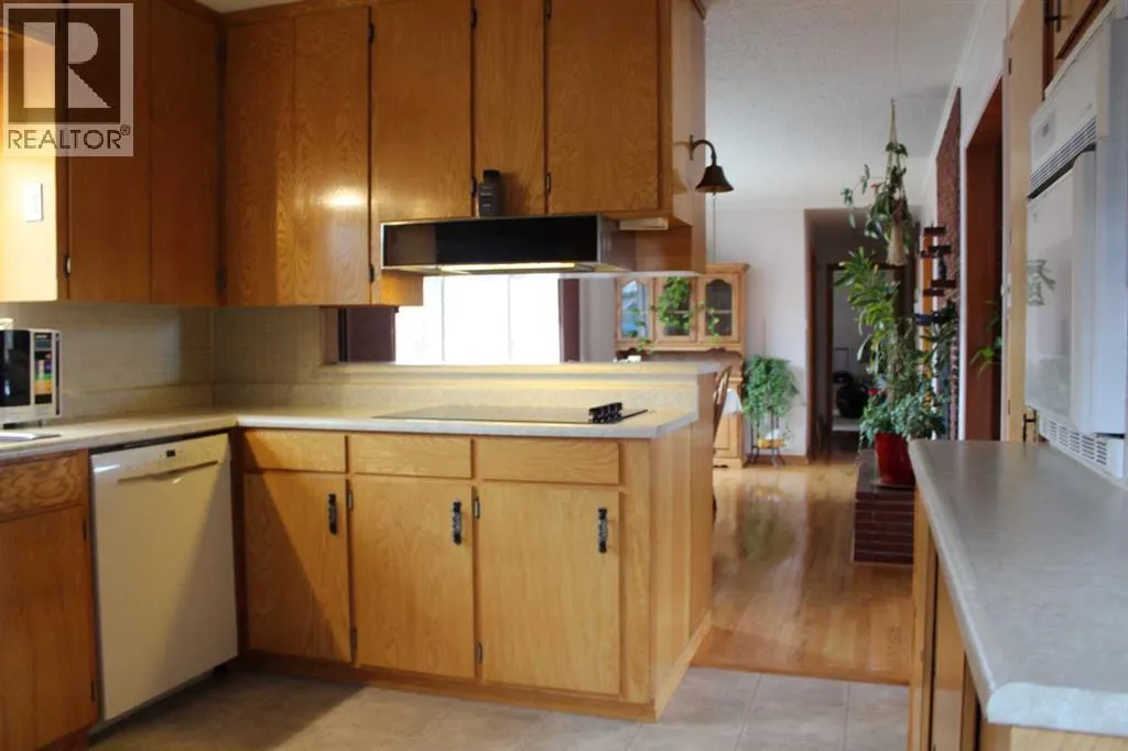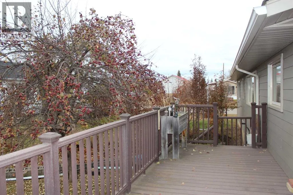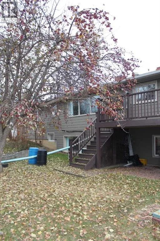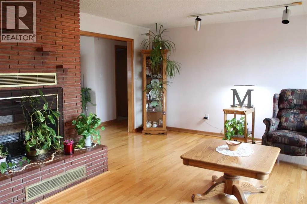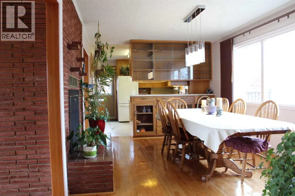 Welcome to this beautifully developed bungalow, perfectly situated on two lots close to downtown, the schools and the sports complex. With five bedrooms and two bathrooms, there is plenty of space for family and guests alike. The heart of the home is the bright living and dining area, centered around a stunning floor-to-ceiling, double-sided brick fireplace-a cozy focal point for family gatherings. The main floor is filled with natural light and features a spacious kitchen, dining and living area, along with three good-sized bedrooms, a full bathroom and central air conditioning for year-round comfort. Step out from the kitchen onto the large deck, the perfect spot to enjoy relaxing morning or evening chats. The fully finished basement adds even more living space with a pellet stove for added warmth, a large family room, bar, two additional bedrooms, a second bathroom, a laundry area, and convenient walk-out access to the yard. This well-maintained home also includes triple-pane windows, Hardie Board siding, and 30-year Cambridge shingles (installed in 2010). There are two paved driveways, one for added parking space and one that leads to the attached single-car garage. A wonderful property worth taking a look at! (id:27476)