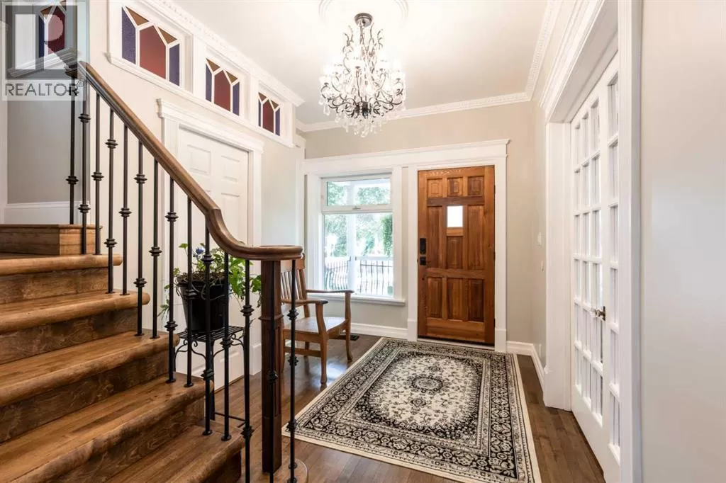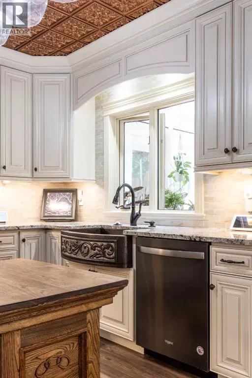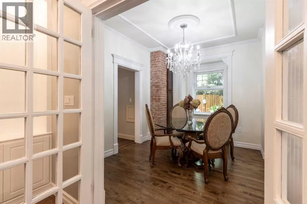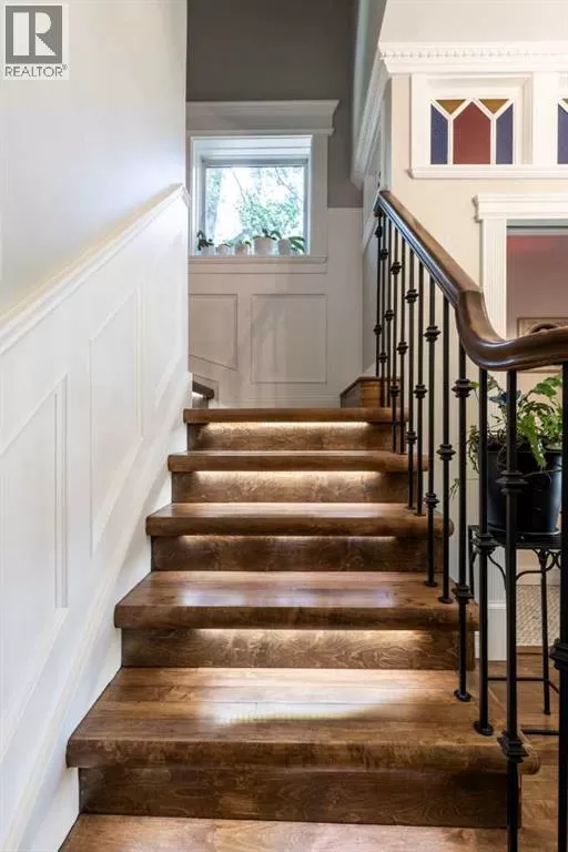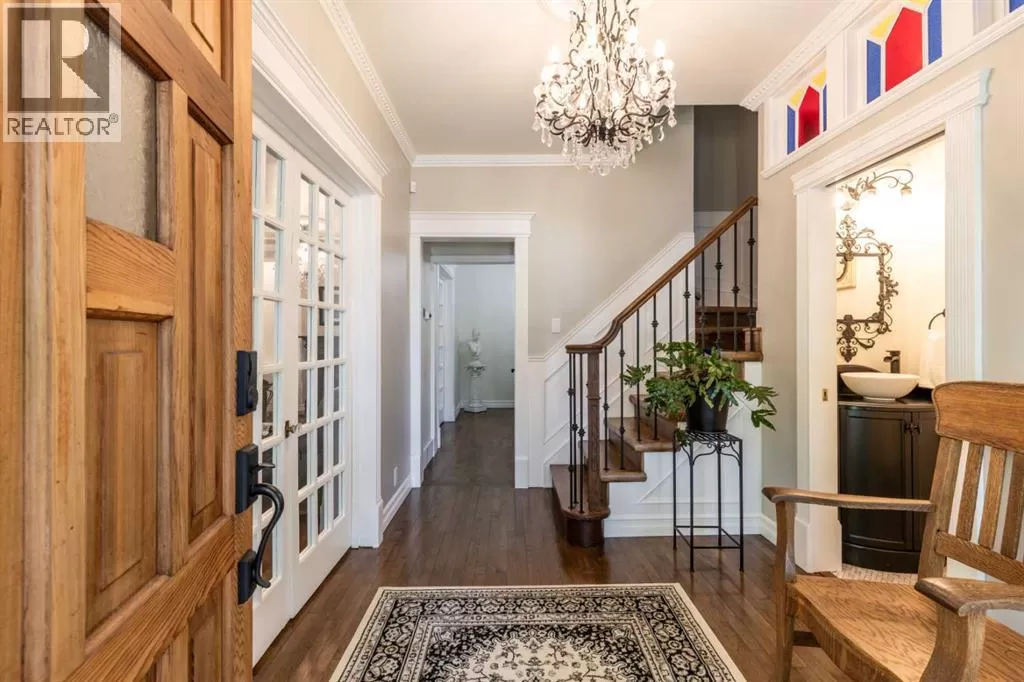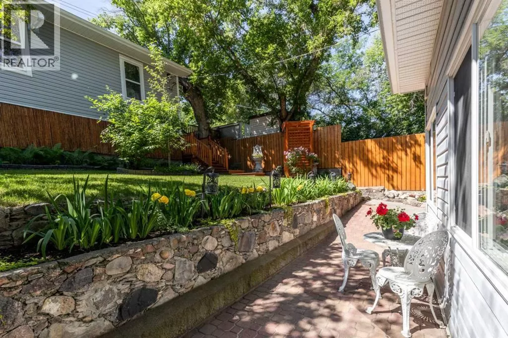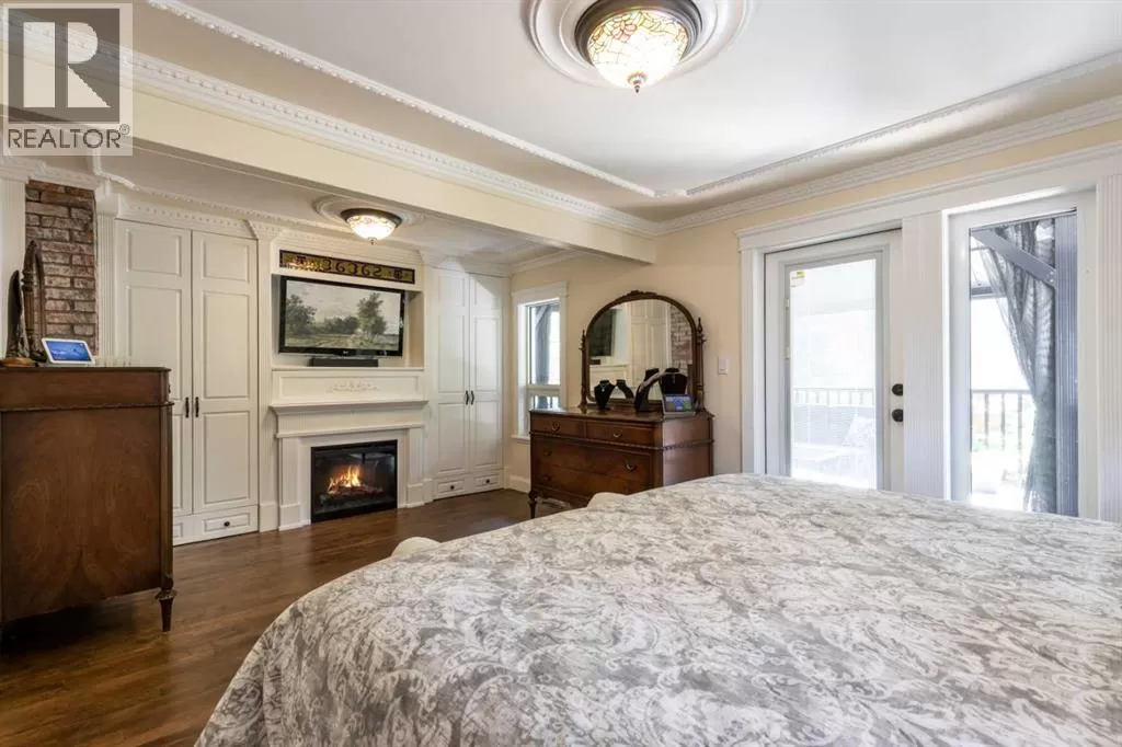 Welcome to 127 1st St SW. This charming 2 storey brick home has been completely restored. It is nestled in the river valley along one of Medicine Hat's most coveted streets. This turnkey opportunity boasts a beautifully manicured yard including two ponds and ug sprinklers. From the moment you walk in the front door quality and craftsmanship are evident. The generous foyer welcomes you with a wrought iron/crystal chandelier and powder room that includes a heated marble floor and custom stained glass privacy windows. From the foyer you can make your way to the living room through a set of original french doors. The 9 foot ceilings, detailed moldings, cast iron fireplace and bay windows give you the feeling of an elegant era gone by. The dining room showcases a beautiful, custom oak built in china cabinet, custom oak built in window/storage seat and exposed original chimney. Whether you feel like grabbing a snack or cooking up a storm the modern/functional kitchen provides new black stainless appliances, solid maple cupboards, a copper sink with touch faucet, new lighting, exposed brick chimney, antique island and old screen door that leads to the sunroom. This room is a little piece of summer all year round. The ceiling fan, vinyl plank floors and acacia wood shelves make this a plant loverâs dream. At the top of the under- lit stairway you will find an office with a custom built in library wall that includes book shelves and filing drawers along with custom stained glass (backlit) valances. The anaglyptic ceiling creates a turn of the century feeling while the custom closet shelving provides great storage for office supplies. The second bedroom offers a beautiful street side view from the tree tops and showcases a built in window seat allowing for generous extra storage. The third bedroom has a simple, classic feel with a generous closet and east facing window that invites the morning sun to brighten the space. The master bedroom is a spacious retreat wi th an exposed brick chimney, built in his and hers closets on either side of the fireplace with room for a tv above. The west wall of this room has a large awning window that opens to the tranquil sounds of the pond below and the garden door invites you outside to relax on your own private balcony. The upstairs bathroom is a true turn of the century space with an exposed brick chimney at the head of the double skinned acrylic slipper tub, a custom oak vanity & storage tower that includes a small fireplace. The heated marble floor is a luxury on a cold winterâs night. The finished basement is home to a new furnace and newer hot water tank, 3 piece fully renovated bathroom and family room. The original brick chimney in this room boasts a custom made mantle from antique timbers, ample recessed lighting/wall sconces, a large closet and custom made barn doors .This property is also home to a heated triple car garage & parking pad for your vehicles/trailer/rv. (id:27476)