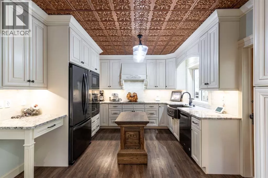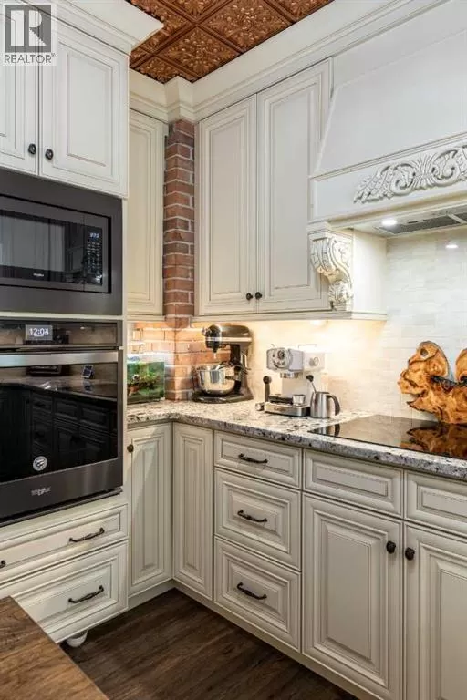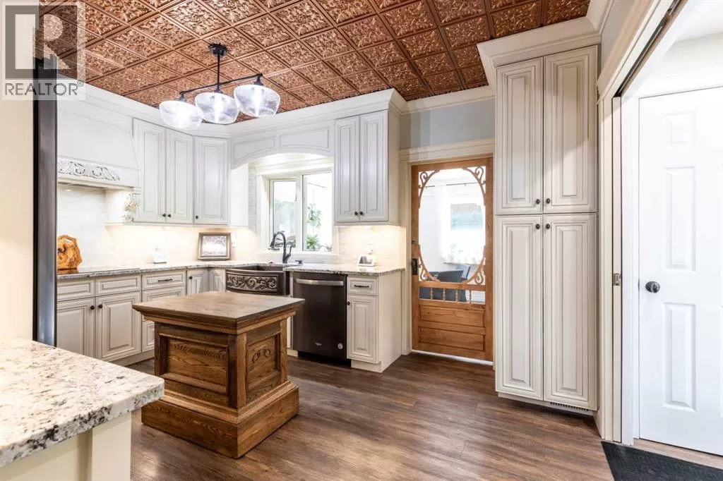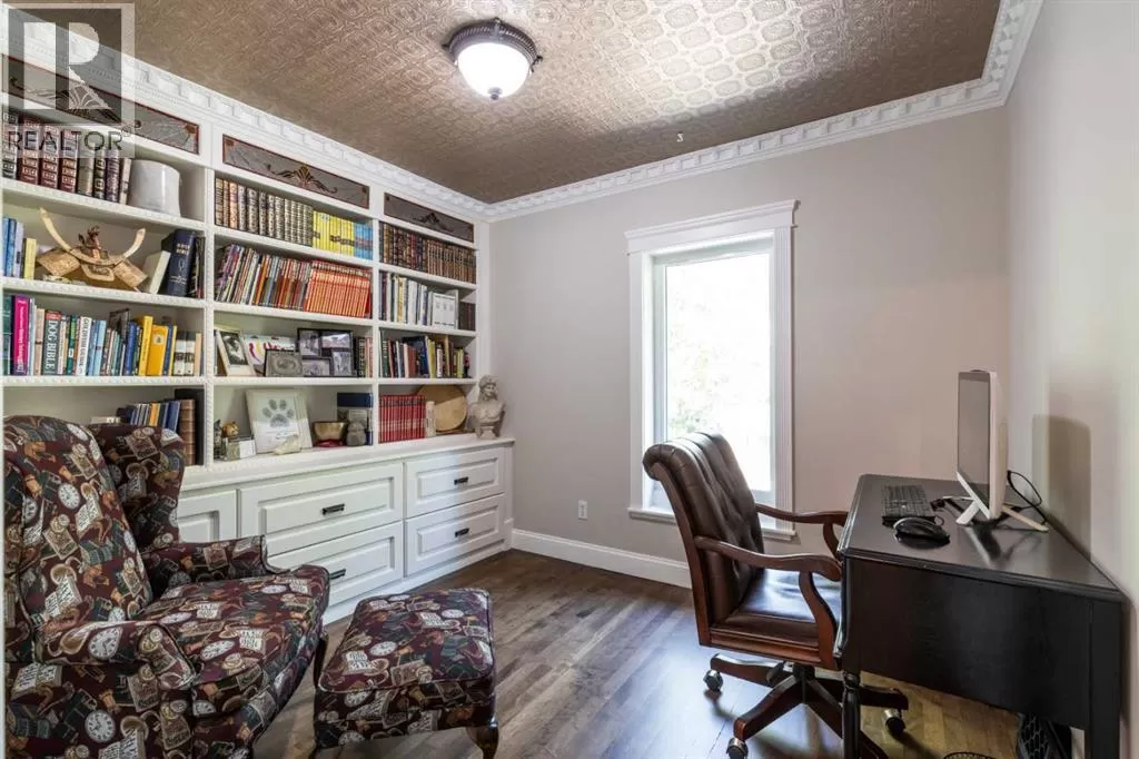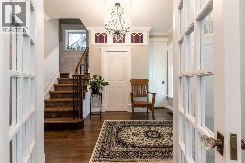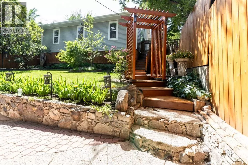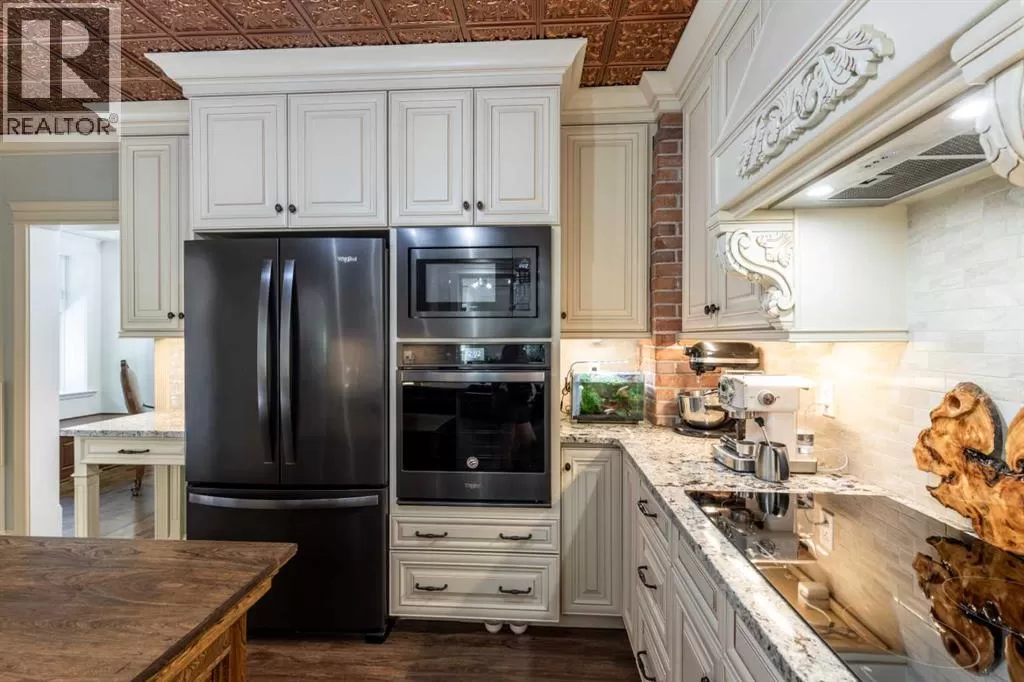 Welcome to 127 1st St SW. This charming 2 storey brick home has been completely restored. It is nestled in the river valley along one of Medicine Hat's most coveted streets. This turnkey opportunity boasts a beautifully manicured yard including two ponds and ug sprinklers. From the moment you walk in the front door quality and craftsmanship are evident. The generous foyer welcomes you with a wrought iron/crystal chandelier and powder room that includes a heated marble floor and custom stained glass privacy windows. From the foyer you can make your way to the living room through a set of original french doors. The 9 foot ceilings, detailed moldings, cast iron fireplace and bay windows give you the feeling of an elegant era gone by. The dining room showcases a beautiful, custom oak built in china cabinet, custom oak built in window/storage seat and exposed original chimney. Whether you feel like grabbing a snack or cooking up a storm the modern/functional kitchen provides new black stainless appliances, solid maple cupboards, a copper sink with touch faucet, new lighting, exposed brick chimney, antique island and old screen door that leads to the sunroom. This room is a little piece of summer all year round. The ceiling fan, vinyl plank floors and acacia wood shelves make this a plant loverâs dream. At the top of the under- lit stairway you will find an office with a custom built in library wall that includes book shelves and filing drawers along with custom stained glass (backlit) valances. The anaglyptic ceiling creates a turn of the century feeling while the custom closet shelving provides great storage for office supplies. The second bedroom offers a beautiful street side view from the tree tops and showcases a built in window seat allowing for generous extra storage. The third bedroom has a simple, classic feel with a generous closet and east facing window that invites the morning sun to brighten the space. The master bedroom is a spacious retreat wi th an exposed brick chimney, built in his and hers closets on either side of the fireplace with room for a tv above. The west wall of this room has a large awning window that opens to the tranquil sounds of the pond below and the garden door invites you outside to relax on your own private balcony. The upstairs bathroom is a true turn of the century space with an exposed brick chimney at the head of the double skinned acrylic slipper tub, a custom oak vanity & storage tower that includes a small fireplace. The heated marble floor is a luxury on a cold winterâs night. The finished basement is home to a new furnace and newer hot water tank, 3 piece fully renovated bathroom and family room. The original brick chimney in this room boasts a custom made mantle from antique timbers, ample recessed lighting/wall sconces, a large closet and custom made barn doors .This property is also home to a heated triple car garage & parking pad for your vehicles/trailer/rv. (id:27476)
