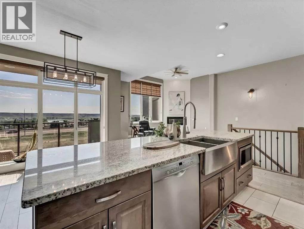 Welcome to The Palisades! This unit boasts a tweaked interior design which resonates with the executive living style. Top notch elements are featured within the choice of finishings throughout this unit. Exquisite light fixtures and attention to detail are evident. Open design kitchen with appliance package, granite counters, island with sink, counter top stove, built-in oven- all tie in to the openness of the main living area. The master suite is on the main level with an ensuite featuring double sinks with lots of counter-space and a Walkin tiled shower. The lower level has another bedroom comparable to the Primary, complete with an en-suite as well perfect for visiting company. (may be hard for them to leave!) The Palisades is noted for their oversized windows which offer a fabulous river valley views to enjoy from insideor from your deckor patio while sipping on one of your favorite beverages. Come and take a walk through this impressive design, where your new lifestyle begins. (id:27476)
