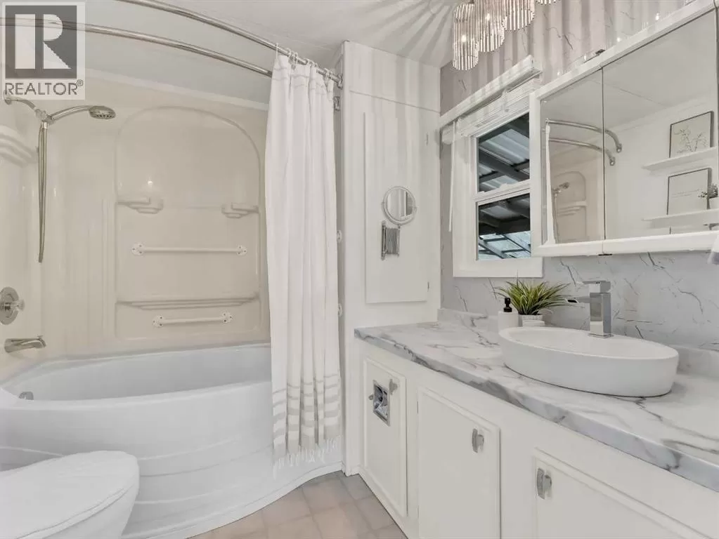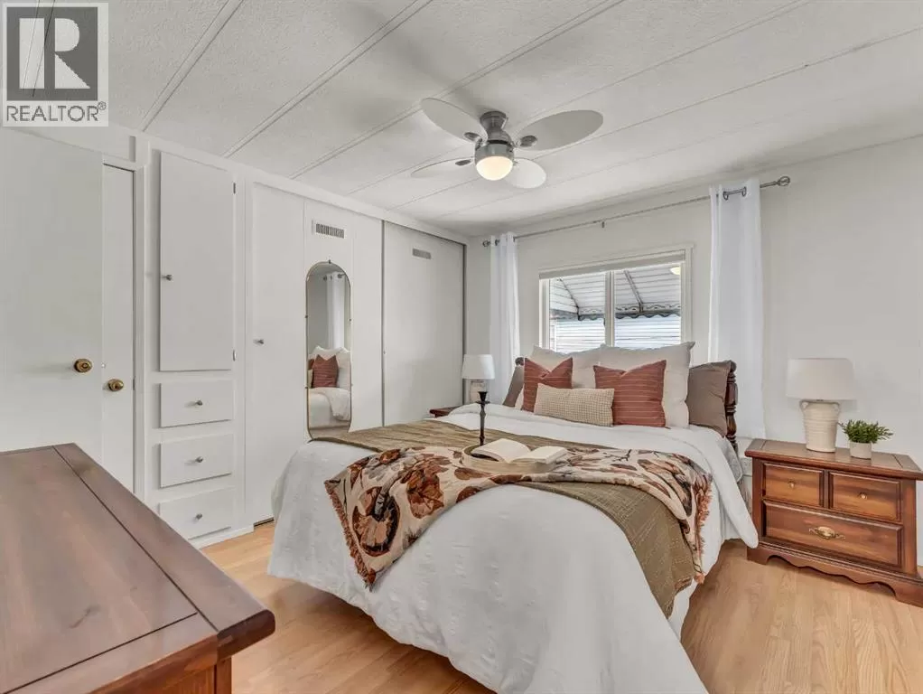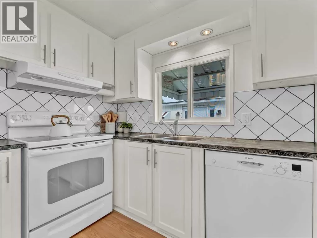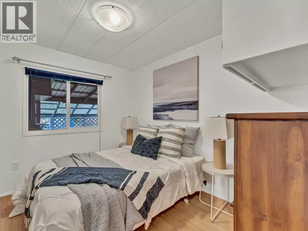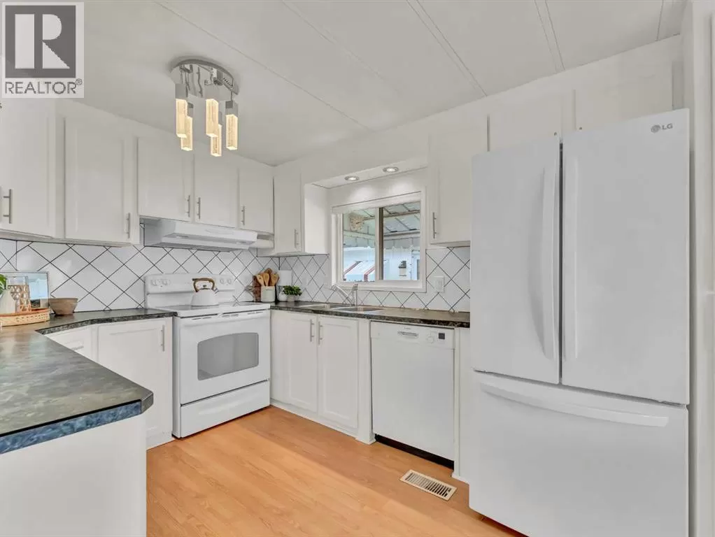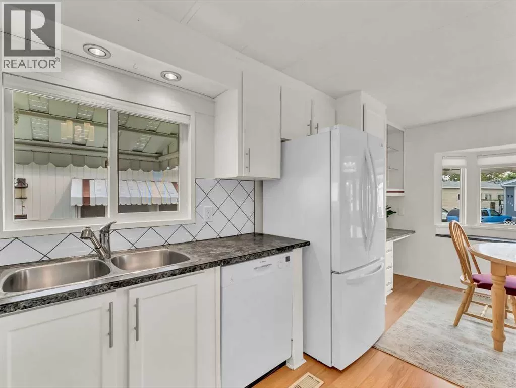 Welcome to this charming and well-maintained mobile home situated on its own lot, offering both comfort and convenience without the burden of monthly lot fees. Over the years, this property has seen many thoughtful updates, making it move-in ready and a perfect fit for first-time buyers, downsizers, or anyone seeking a private and affordable lifestyle. Step into the enclosed front porch entry, a practical and welcoming space that leads you into the heart of the home. The functional U-shaped kitchen provides excellent workflow and storage, complemented by a dining area featuring a charming bay window and built-in shelving. At the center of the home, the living room offers a cozy gathering place with sliding door access to a private covered deckâideal for morning coffee or evening relaxation overlooking your beautifully landscaped backyard. Down the hall youâll find a secondary bedroom, a nicely updated 4-piece bathroom, a comfortable primary bedroom, and conveniently located laundry tucked neatly into the central hall. The exterior of the property is just as impressive as the interior. The yard is fully fenced, private, and thoughtfully landscaped. Parking is never an issue with RV access and two stalls available at the front of the property. For all your storage needs, multiple exterior sheds are included. This home truly combines function, comfort, and affordability in one package. Donât miss your chance to own a property that offers both indoor charm and outdoor enjoyment! (id:27476)