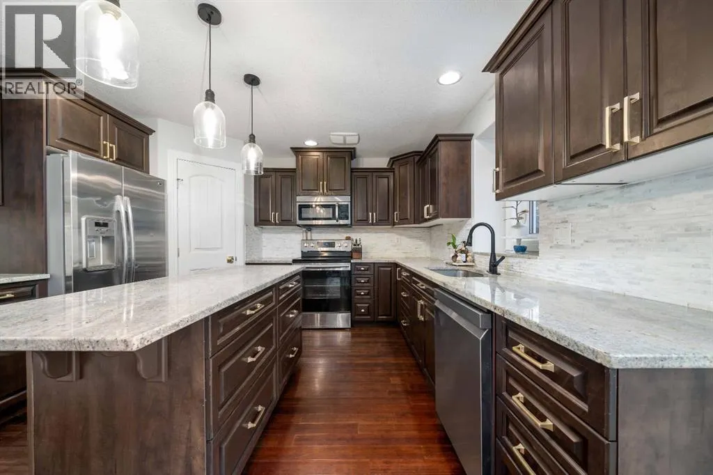 Built in 2011, this 1,683 sq ft home blends timeless character with modern style. Featuring 3 spacious bedrooms and 3 bathrooms, with the potential for a 4th bedroom and bathroom in the basement, this property offers incredible flexibility for a growing family. The charming covered front porch provides excellent curb appeal and is the perfect spot to enjoy your morning coffee. Inside, the spacious living room is anchored by a cozy gas fireplace and rich hardwood floors that flow throughout the main floor. The gorgeous kitchen is complete with dark cabinetry, granite countertops, tiled backsplash, corner pantry, island, and stainless steel appliances, while the inviting dining area opens directly to the back deck â it's ideal for entertaining. The main floor also features a 2-piece powder room and a built-in desk with granite countertop and cabinets â perfect for a home office, study space, or even a stylish butlerâs pantry. Upstairs, youâll find a spacious primary suite with a 4-piece ensuite and deep walk-in closet, plus two large bedrooms, another full bathroom, and the convenience of second-floor laundry with built-in shelving to complete this level. The basement is framed, drywalled, and wired, ready for your finishing touches, with space for a 4th bedroom, 4th bathroom, and family room. Outside, the fully fenced and landscaped yard features a gazebo, a large deck with a gas line for BBQ, and a double detached garage, insulated and heated for year-round use. Additional modern features include central air conditioning and hot water on demand. Located in a highly sought-after area close to schools, parks, shopping, and amenities, this home offers modern living with classic SE Hill charm â move-in ready with room to grow! (id:27476)