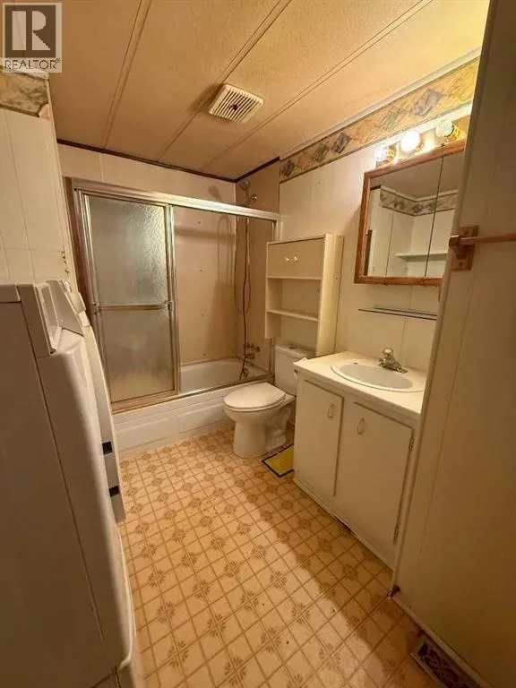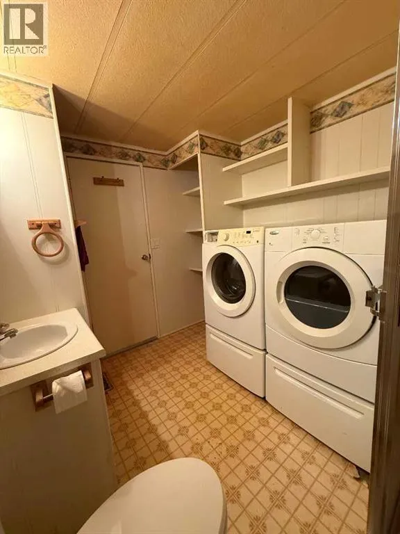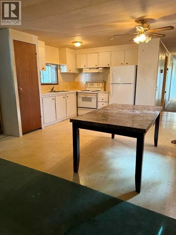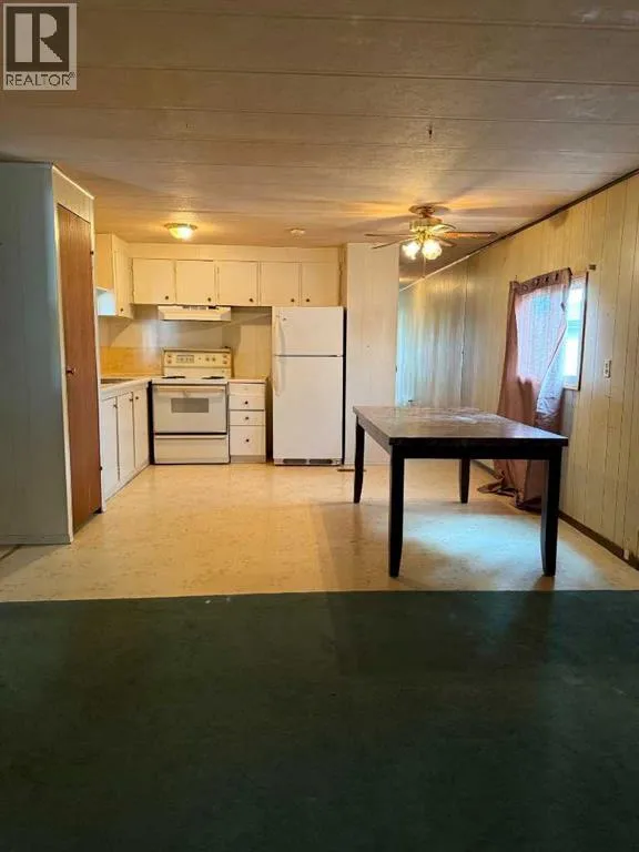 Looking for an affordable option with NO lot fees? This mobile home sits on its own lot and offers an open-concept main living area with a kitchen that includes a fridge, stove, pantry, and dining space. The living room is spacious. There are two good-sized bedrooms and a full 4-piece bathroom with a washer and dryer included. A front porch provides bonus storage space. Outside, there is a partially fenced yard with a parking pad, along with two sheds for extra storage. This property has lots of potential and is a great option for affordable ownership. Call today to view! (id:27476)