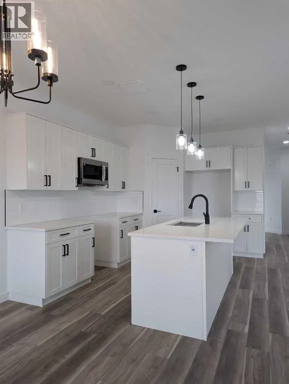 Donât let this chance pass; be the first to make this lovely new walkout bungalow your home. Built by New Tab Homes Ltd. and DP76 Construction, this thoughtfully designed property blends modern style with practical functionality. Offering 1,099 square feet of beautifully planned living space, the open concept layout creates a bright and welcoming atmosphere. The kitchen, dining, and livingroom areas are seamlessly connected, perfect for both everyday living and entertaining. The kitchen is equipped with a large center island, abundant counter space, and a convenient corner pantry. Patio door off the dinning room lead you to the covered balcony that overlooks the yard. The main floor also includes a laundry room, a 2 piece guest bathroom, and a well appointed primary bedroom featuring a walk-in closet and a luxurious 4 piece ensuite. Downstairs, the fully developed walkout basement will offer a large family room with direct access to a covered patio, 2 additional bedrooms, and a full 4 piece bathroom. A double attached garage and a spacious driveway ensure plenty of parking for your family and guests. Seller will provide a $10,000.00 credit to go towards appliances or window coverings. ** RMS square footage is based on builder plans. (id:27476)
