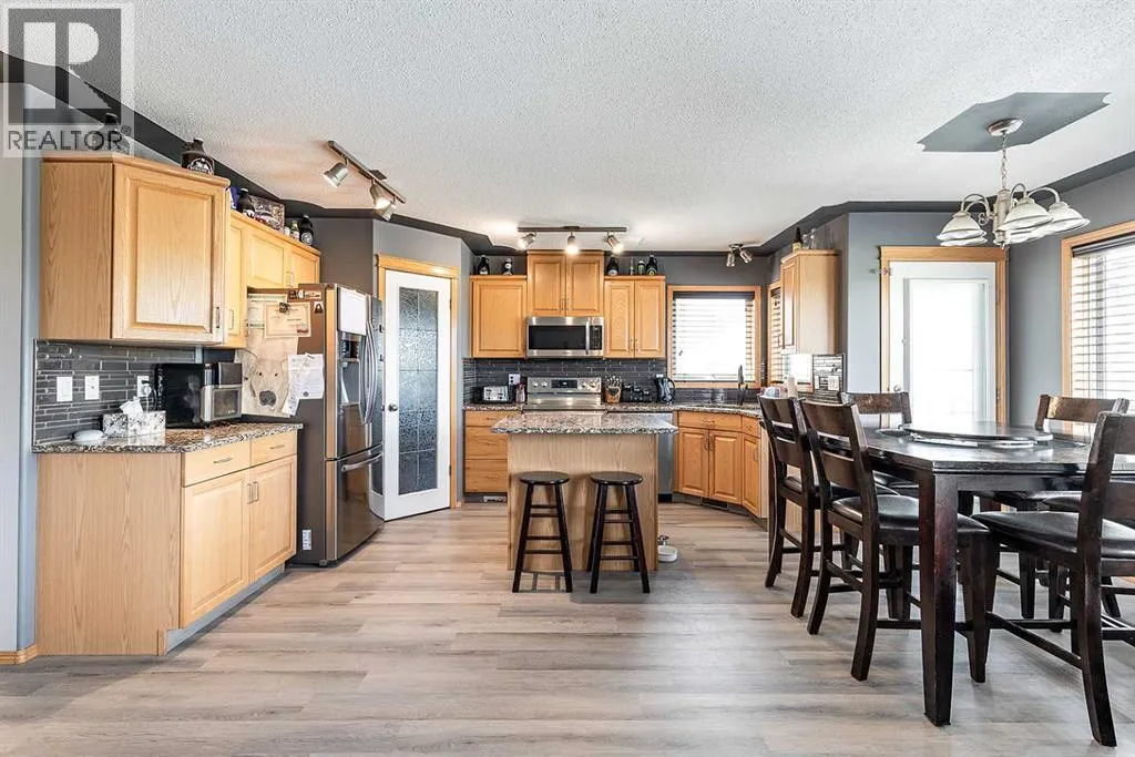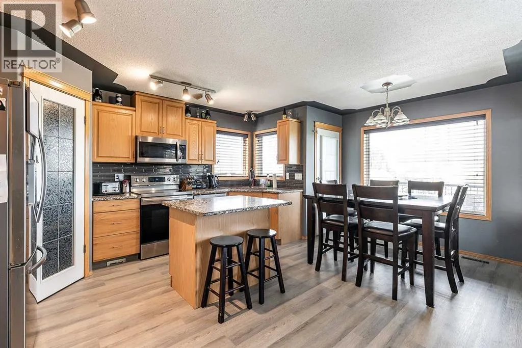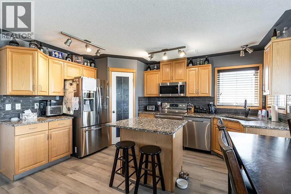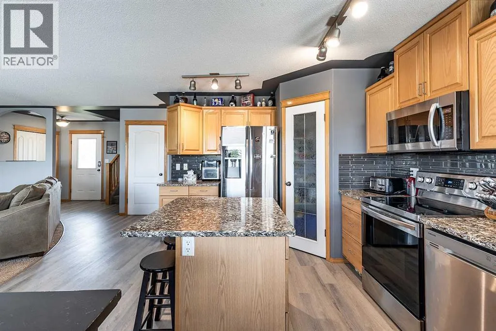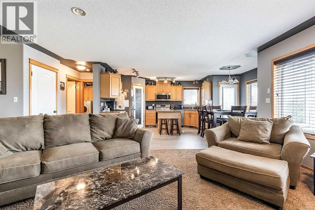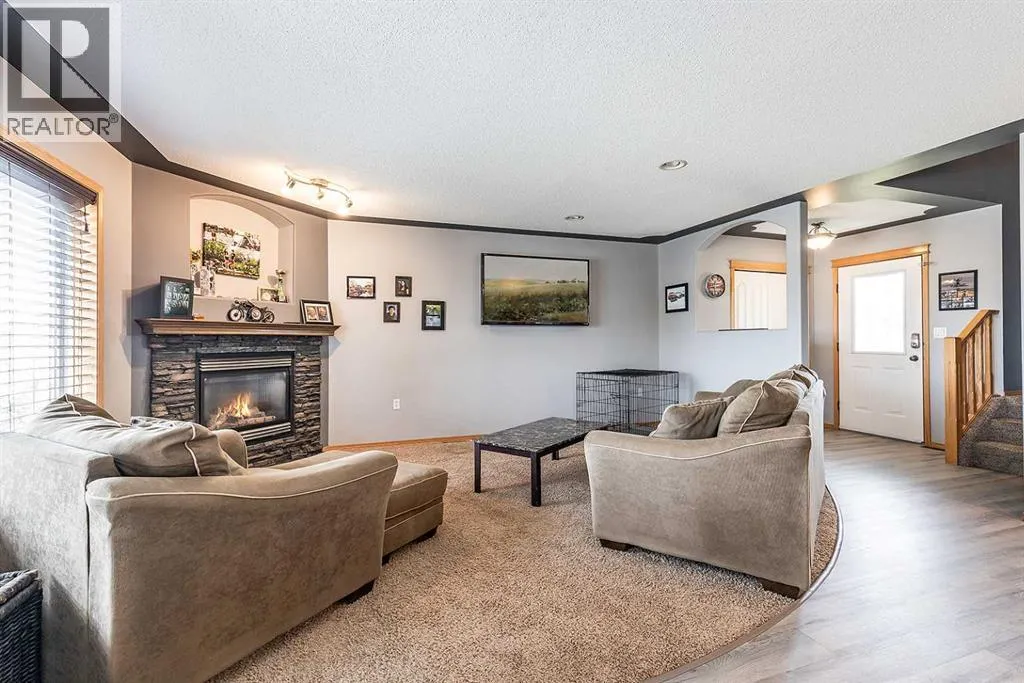 Are you looking for a family home with a separate basement living space, with its own private entrance? Even the garage space is separated so the basement can have its own garage parking. This one could be the One! Bright, spacious, and full of thoughtful touches, this 2-storey Southridge home offers everything a growing family could want: 4 bedrooms, 4 bathrooms, and a heated triple car garage. Step inside to a welcoming, open space with new vinyl plank flooring flowing throughout the main living areas. The living room invites you to unwind by the cozy gas fireplace, while the kitchen features stunning quartz countertops and modern appliancesâall updated within the last three years. A convenient half-bath adds practicality for everyday life. Upstairs, the primary suite is comfortable and private, featuring a walk-in closet and a 3-piece ensuite. Two additional bedrooms feel warm and inviting, alongside a 4 piece bathroom. The basement is the heart of entertainment in this home. Fully finished and freshly painted, it features a fourth bedroom, a wet bar with wine cooler and bar fridge, built-in speakers with HDMI-ready TV wall, and an electric fireplaceâperfect for movie nights, family gatherings, or hosting friends. With a separate entry from the garage, this space also offers the flexibility for guests, in-law quarters or the grown-up child that just needs a safe place to land. Step outside to a fenced backyard with a hot tub (negotiable), low-maintenance dog run, and Covered Patio; all backing onto a peaceful green space and pathway. Under the deck is dry storage space. Underground sprinklers keep the lawn lush with minimal effort. The garage is exceptional: 32â wide by 39â deep with 8â doors, 220V power, radiant heating, storage racks, black wall cabinets, workbench, and a custom wood dog kennel with mezzanine storageâideal for hobbyists or car enthusiasts. Located in the heart of Southridge, close to schools, parks, shopping, and walking paths, this home is des igned for families. Call today to schedule a showing and experience all this remarkable home has to offer. (id:27476)
