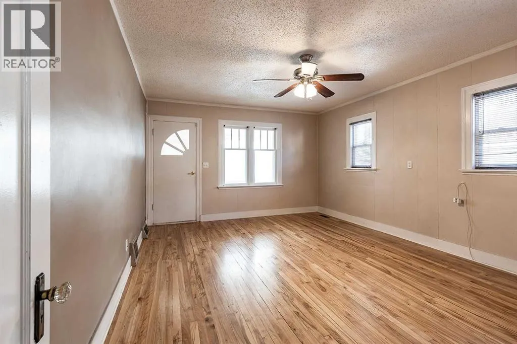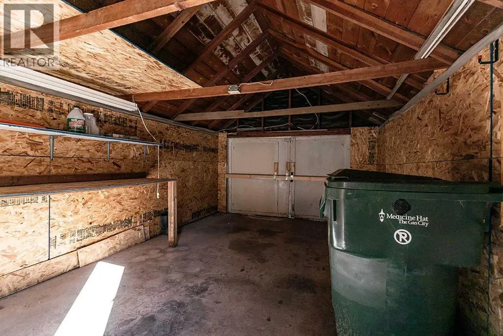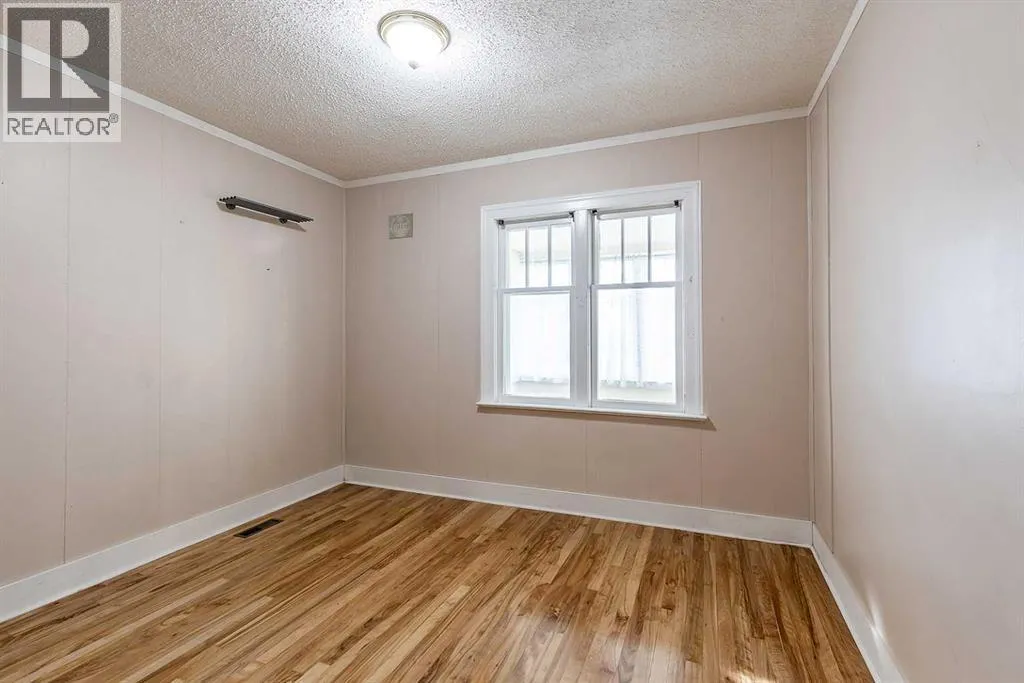 This centrally located South Flats bungalow offers both character and potential. The main floor features two bedrooms, a full bathroom, and beautiful original hardwood floors throughout that have been refinished. A bright front sunroom porch, an additional 120 sq ft, provides a relaxing spot to enjoy natural light. The basement includes a den/office, cold storage, and laundry, offering versatile space to suit your needs. Outside, a 20â x 12â detached garage with power is perfect for projects, storage, or hobbies. There is a paved parking pad beside the garage. The home has some updated vinyl windows, updated electrical, and the yard is fully fenced with potential for RV parking. The lot is 6500 sq ft making it large enough to build a much larger garage. There is a garden space and plenty of room for big ideas! A great choice for first-time buyers looking for a functional home or investors seeking opportunity, this property is just minutes from downtown Medicine Hat, local parks, and amenities. Contact a real estate agent today to explore this South Flats bungalow! (id:27476)