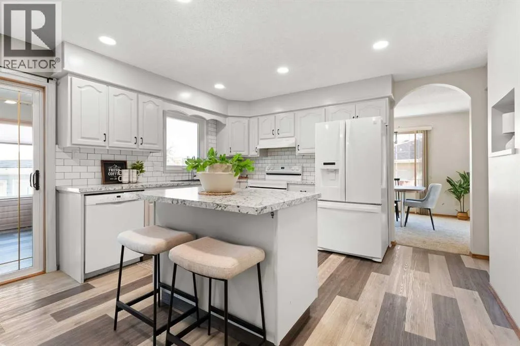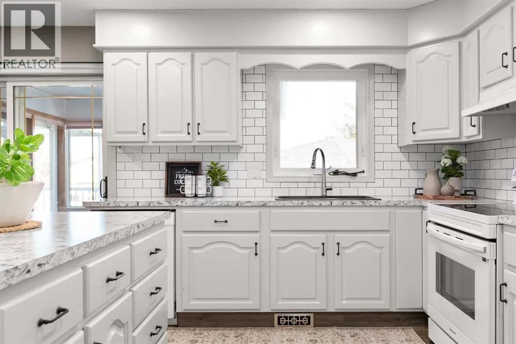 Welcome to 12 Redwood Way, tucked away in the heart of Ross Glen, one of Medicine Hatâs favourite family neighbourhoods. Set on a quiet court surrounded by mature trees and well-kept homes, this spacious 2 storey offers over 2,299 sq ft of inviting living space designed for family life and entertaining alike.Step inside to a bright, open entry with soaring ceilings and a grand staircase that sets the tone for the homeâs character and warmth. The main floor features two comfortable living areas, one with a cozy natural gas fireplace, creating perfect spaces to relax or host family gatherings. The kitchen is filled with natural light and opens to a welcoming dining area and a beautiful sunroom overlooking the backyard. A convenient main floor laundry adds ease to daily living.Upstairs youâll find three generous bedrooms, including a large primary suite with a private ensuite bath. The fully developed basement extends the living space with a family room featuring a second gas fireplace, a fourth bedroom, and a full bathroom, perfect for guests or teens.Outside, enjoy a covered deck overlooking a generous, fully fenced yard with underground sprinklers, mature landscaping, and plenty of room to play or garden. The bonus outbuilding offers endless possibilities, whether for hobbies, storage, or a future studio.Additional highlights include central vacuum, two entrances into the attached garage, and the comfort of on-demand hot water. With parks, schools, and walking paths nearby, this beautiful Ross Glen home combines space, comfort, and convenience in a setting that truly feels like home. (id:27476)