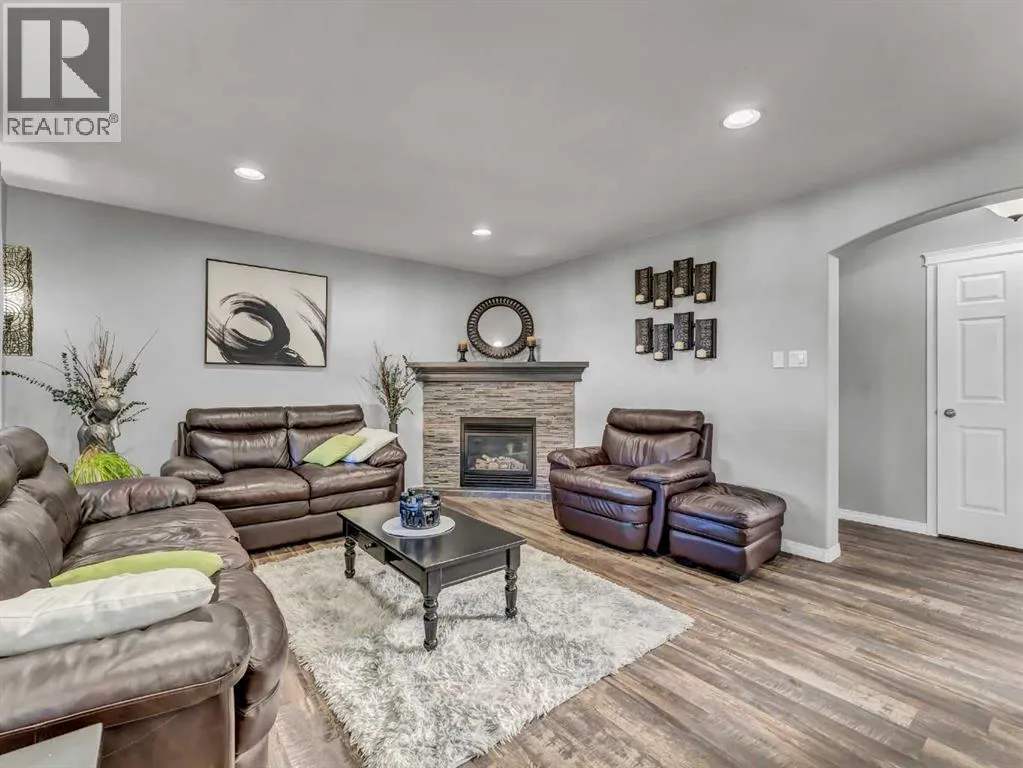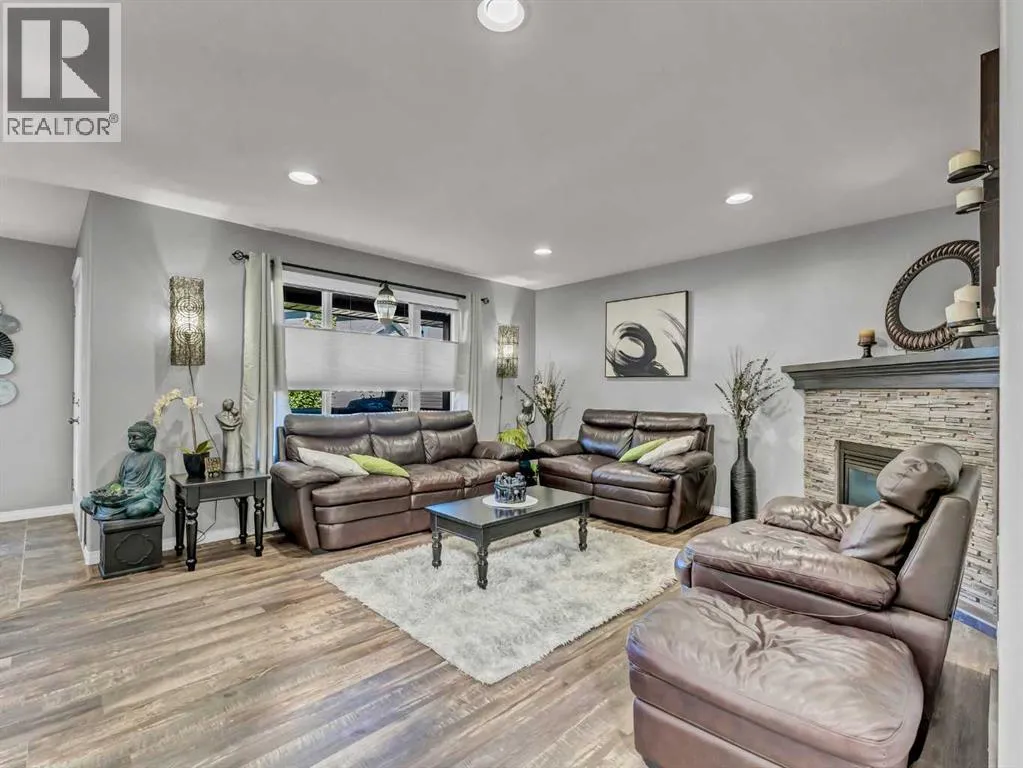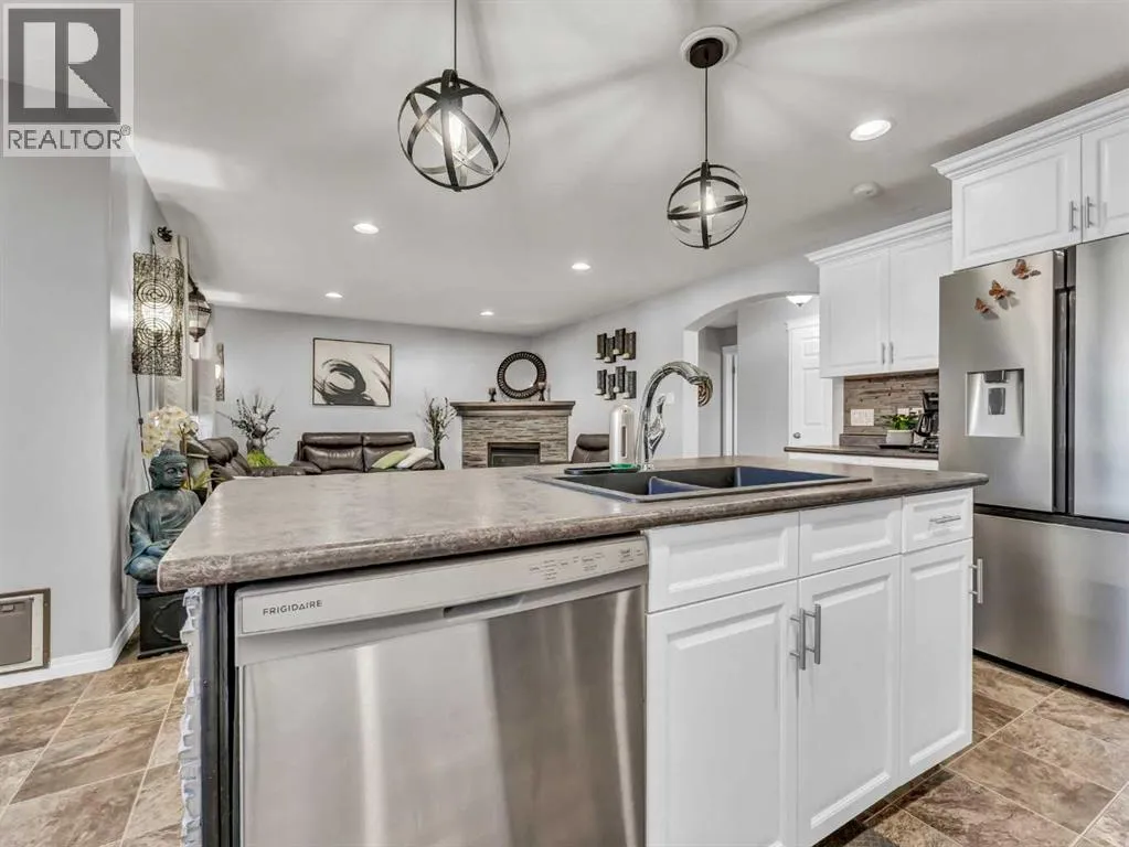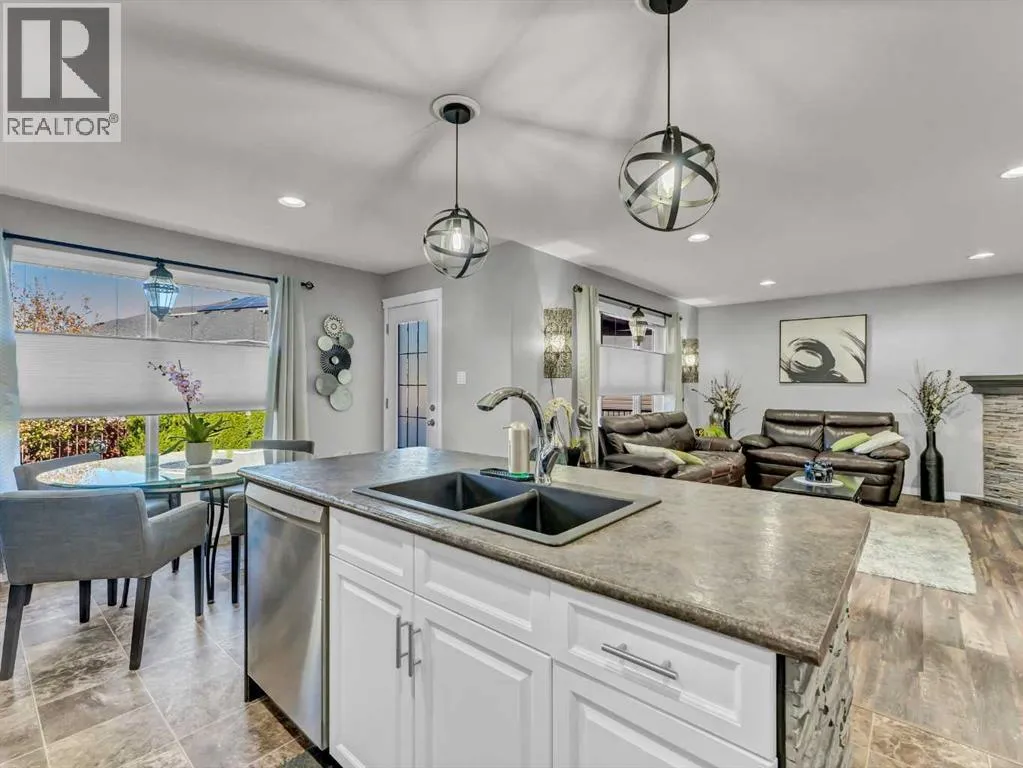 Welcome to this stunning 2-storey home located in one of the most family-friendly neighbourhoods in the city. Youâll love being surrounded by parks, playgrounds, schools, daycares, and scenic walking paths â everything a growing family needs just steps away.Step inside to a spacious front entry with a convenient coat closet, setting the tone for the thoughtful design throughout. The heart of the home is the gorgeous kitchen, featuring a stainless steel appliance package, corner pantry, and a stylish backsplash that ties beautifully into the tile detail on the island. The island offers extra seating, perfect for breakfast on busy mornings or gathering friends and family for special occasions.The kitchen flows seamlessly into the bright dining area and inviting living room, complete with a cozy corner gas fireplace accented with matching tile. From the dining room, step out onto the north-facing covered deck â an ideal place to unwind with a coffee while enjoying the view of the beautifully landscaped backyard, even on the warmest summer days.The main floor also features a handy laundry room, 2-piece bathroom, and stylish up-down window coverings.Upstairs, youâll find three generously sized bedrooms, including a spacious primary suite with a walk-in closet and a 4-piece ensuite â your personal retreat at the end of the day. The second floor also includes another full bathroom for the family.The fully finished basement adds even more living space with two additional bedrooms, a comfortable family room, a 3-piece bathroom, and a utility room with a high-efficiency furnace. The basement is also wired for surround sound.Throughout the home, youâll notice eye-catching light fixtures, neutral paint tones, and a warm, welcoming atmosphere.Outside, the backyard is a private oasis â beautifully designed with a curved yin-yang stone patio surrounded by lush green lawn and mature trees for extra privacy. Whether youâre hosting a barbecue, watching the kids play, or simply relaxing in the evening, this yard is made for making memories. Shingles were redone in 2023.The heated and finished double garage (22x26) provides plenty of room for vehicles, tools, and toys.With 5 bedrooms, 3.5 bathrooms, and 1,664 sq. ft. of comfortable living space, this home truly offers everything a growing family could want. Come see it for yourself â your forever home awaits! (id:27476)