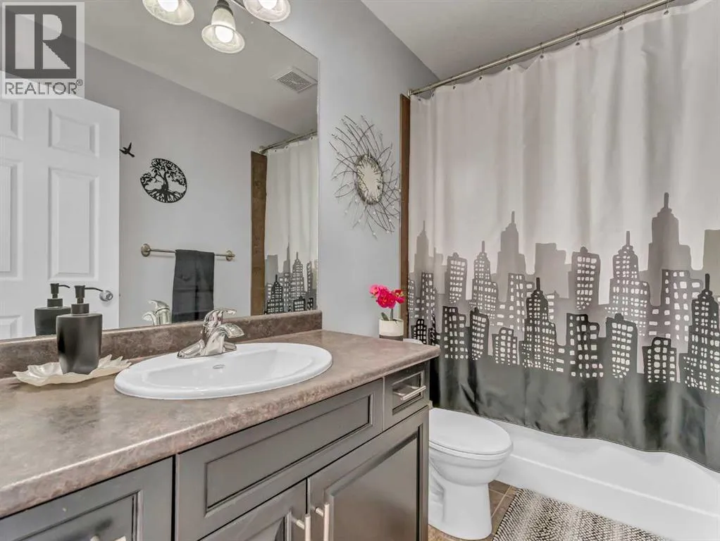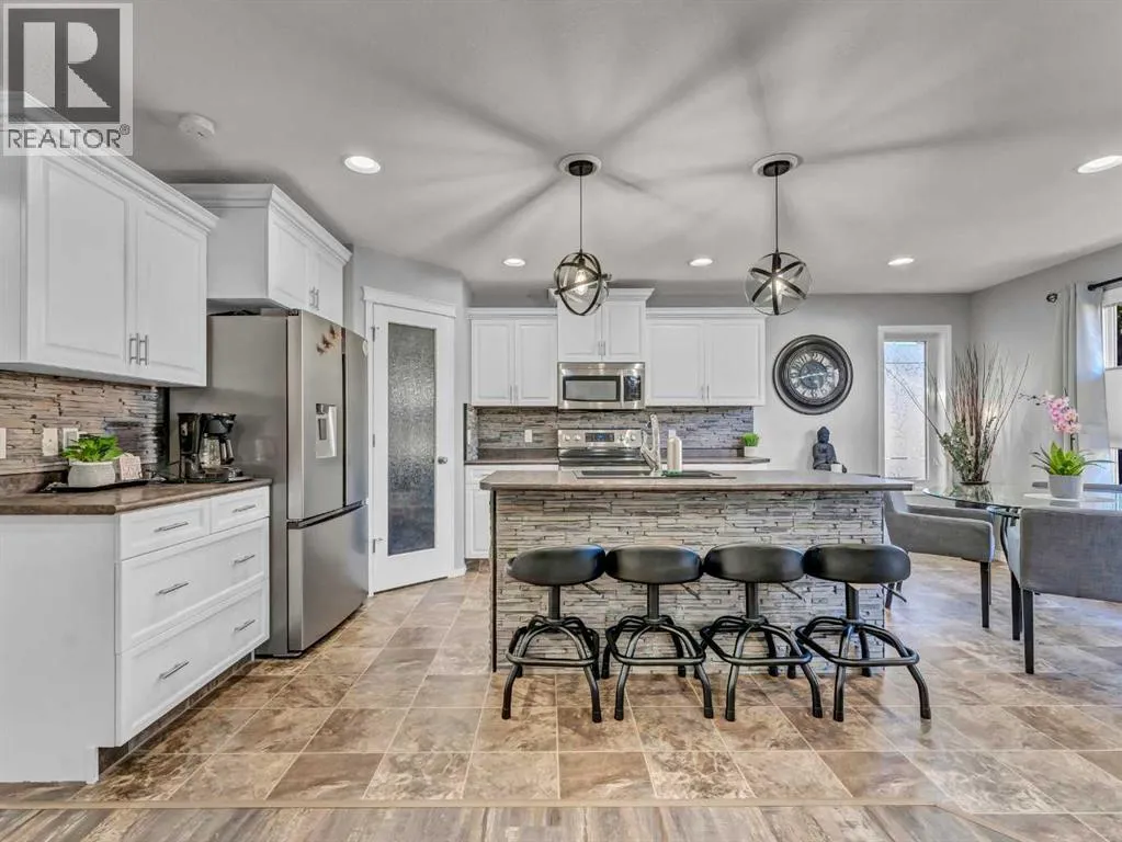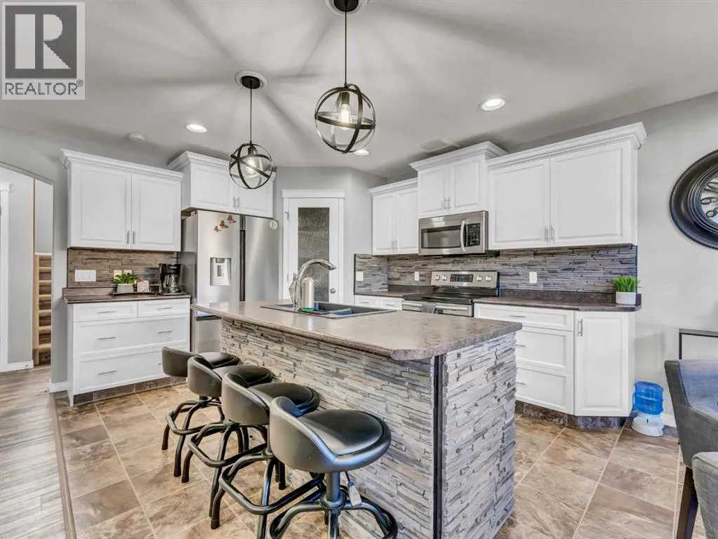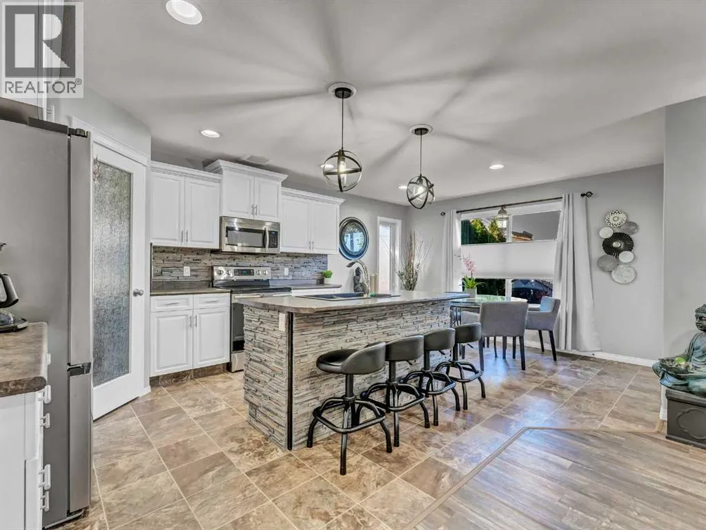 Welcome to this stunning 2-storey home located in one of the most family-friendly neighbourhoods in the city. Youâll love being surrounded by parks, playgrounds, schools, daycares, and scenic walking paths â everything a growing family needs just steps away.Step inside to a spacious front entry with a convenient coat closet, setting the tone for the thoughtful design throughout. The heart of the home is the gorgeous kitchen, featuring a stainless steel appliance package, corner pantry, and a stylish backsplash that ties beautifully into the tile detail on the island. The island offers extra seating, perfect for breakfast on busy mornings or gathering friends and family for special occasions.The kitchen flows seamlessly into the bright dining area and inviting living room, complete with a cozy corner gas fireplace accented with matching tile. From the dining room, step out onto the north-facing covered deck â an ideal place to unwind with a coffee while enjoying the view of the beautifully landscaped backyard, even on the warmest summer days.The main floor also features a handy laundry room, 2-piece bathroom, and stylish up-down window coverings.Upstairs, youâll find three generously sized bedrooms, including a spacious primary suite with a walk-in closet and a 4-piece ensuite â your personal retreat at the end of the day. The second floor also includes another full bathroom for the family.The fully finished basement adds even more living space with two additional bedrooms, a comfortable family room, a 3-piece bathroom, and a utility room with a high-efficiency furnace. The basement is also wired for surround sound.Throughout the home, youâll notice eye-catching light fixtures, neutral paint tones, and a warm, welcoming atmosphere.Outside, the backyard is a private oasis â beautifully designed with a curved yin-yang stone patio surrounded by lush green lawn and mature trees for extra privacy. Whether youâre hosting a barbecue, watching the kids play, or simply relaxing in the evening, this yard is made for making memories. Shingles were redone in 2023.The heated and finished double garage (22x26) provides plenty of room for vehicles, tools, and toys.With 5 bedrooms, 3.5 bathrooms, and 1,664 sq. ft. of comfortable living space, this home truly offers everything a growing family could want. Come see it for yourself â your forever home awaits! (id:27476)