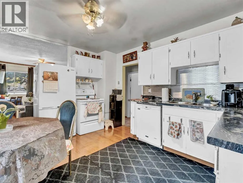 Fantastic revenue or starter home with two garages!Centrally located and within walking distance to many great amenities, this home offers excellent value and versatility. The main floor features two bedrooms, beautiful hardwood flooring, a spacious living room, and a functional kitchen and dining area with ample cabinetry and a full appliance package. The basement includes two additional spacious bedrooms, a laundry area, plenty of storage, and a generous family or recreation space. Outside, youâll find a fully fenced and landscaped yard with a lovely garden, mature trees and shrubs, plus not oneâbut two garages: a newer 24â x 26â detached garage and a 12â x 19â10â garage/workshop.Connect with an agent today to book your private viewing! (id:27476)