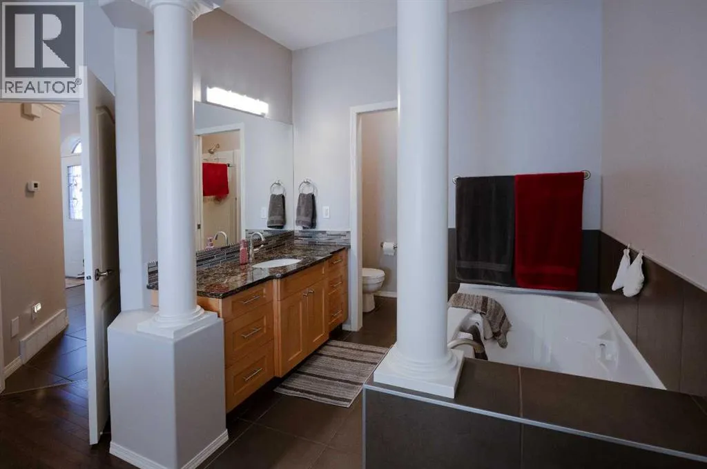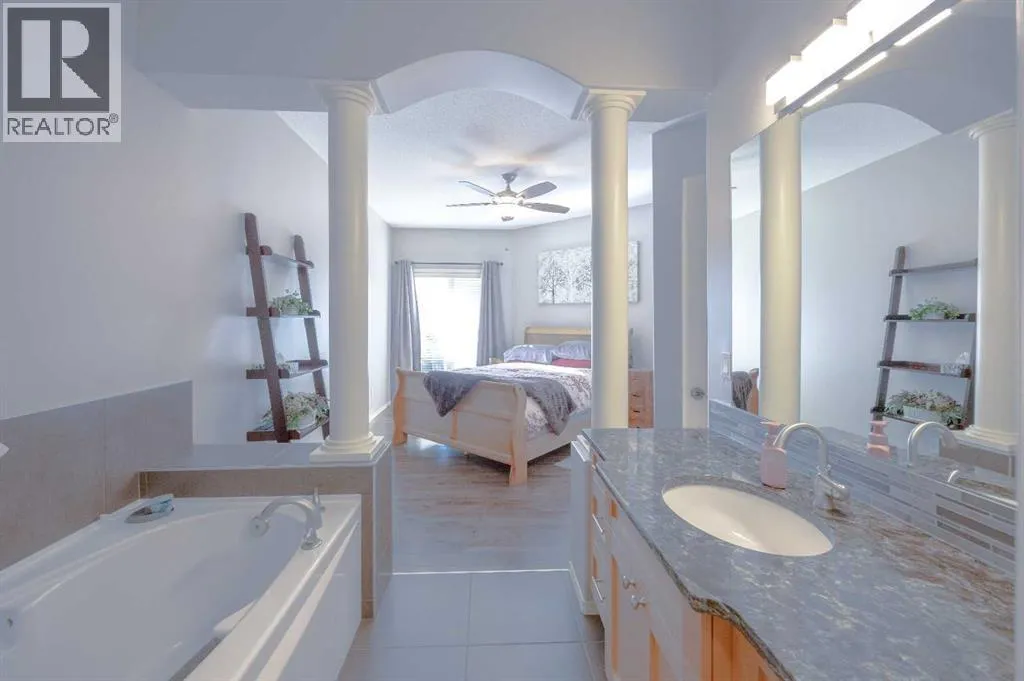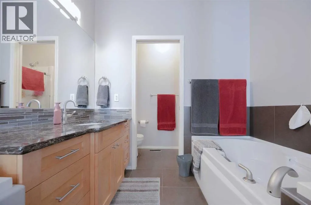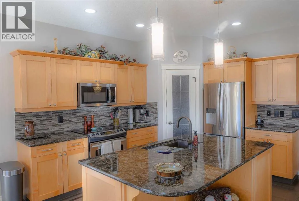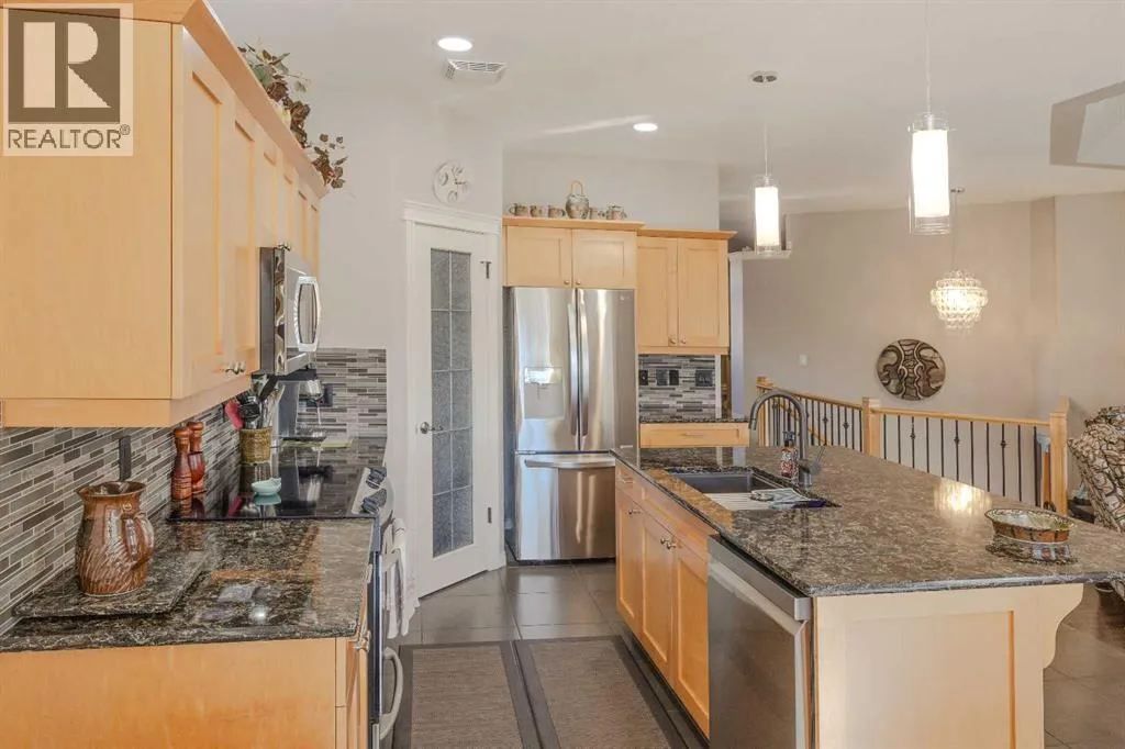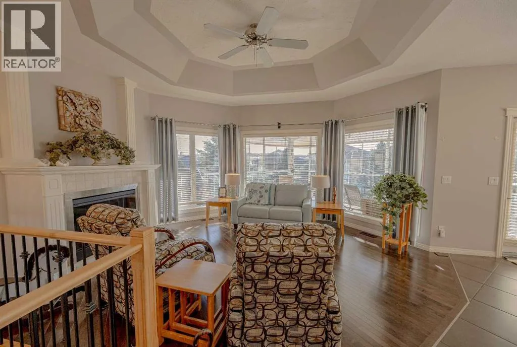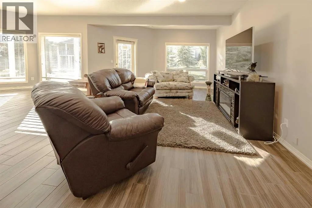 Every now and again, you come across a property that really impresses you and immediately you know BUYERS will feel exactly the same way. The CONDITION and LOCATION of this great property would score top marks and because of this, it's important for all Buyers not hesitate to set up a showing with your favourite Real Estate agent. This walkout out bungalow is located in a respected gated neibourhood, the beautiful community known as the âRiver Ridge Garden Homesâ. Some unique features include: tiled roof; double attached "heated" garage, no carpets except on the staircase, hardwood or tile throughout, 1+1 bedroom and 2+1 bathrooms, an open style main floor with a lovely front den/library room, main floor laundry, a fireplace in the living room, quartz kitchen counter tops and light maple cabinets, and a covered enclose LARGE deck with gas-line and a heater to make three season use easy. The back faces south overlooking the fountains and beautifully landscaped park AND finally triple pane windows throughout the unit. Going down the turnback staircase you will be treated to a large âLâ shaped family room, heated floors, 9' ceilings, another full bathroom, a storage room and of course the second bedroom. Exiting the lower level to the 'second' covered deck, again overlooking the very well managed and serene setting all landscaped with beautiful large trees, walkways, fountains and the privacy and solitude we all desire. The demographics of this community of like-minded peers who wish to enjoy a five-star accommodation yet have the privacy, security and quiet that suites the lifestyle of many of the 55+ age bracket. The Garden Homes has low condo fees and offers a maintenance free lifestyle. The owners have access to the beautiful and many condo amenities at 29 River Ridge Dr. N.W. Pets allowed with approval of the board. ***NOTE: Title Insurance will be offered and paid for by the Seller for the Buyer in lieu of an RPR. Watch for the lights in the park behind â they are spectacular! MORE PICTURES will be attached today. (id:27476)