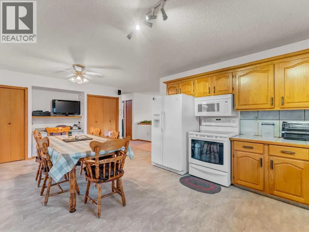 This beautifully maintained 1,389 square foot bi-level in Ross Glen has been lovingly cared for over the past 25 years. With a combined 2500 square feet of developed living space, the home features five bedrooms, three bathrooms, and two garages, all situated on an expansive lot of nearly 8,500 square feet. The home offers outstanding curb appeal with a circular concrete driveway, a double attached garage, and a low-maintenance yard. Ample RV parking is available with easy access to the rear heated workshop, which boasts impressive 12-foot ceilings.Upon entry, you are welcomed by a bright and airy living room that leads into a generous country-style kitchen. The kitchen can easily accommodate a dining table for up to twelve people, making it ideal for family gatherings. Patio doors open onto a large, covered, reinforced two-tier deck equipped with a gas line for BBQ hookup. This deck offers plenty of storage space below, overlooks a fully fenced, private backyard with underground sprinklers, a separate patio area with a gazebo, and a fantastic 18 x 28 heated garage/workshop with built in cupboards.The main level of the home includes three bedrooms and a four-piece bathroom. The master bedroom features a private three-piece ensuite with a shower.Downstairs, you will find a spacious family room with wet bar, two additional bedrooms, a laundry area, and extra storage spaces. Recent updates to the home include a new furnace installed in 2022, shingles replaced in 2015, and a hot water tank added in 2018.This property is ideally suited for large families as well as for mechanics or woodworking enthusiasts. It is conveniently located near schools, playgrounds, extensive walking and biking trails, bus route, Medicine Hat Mall, major retail stores, and restaurants.If you are looking for your next home, consider booking an appointment to view this exceptional property in Ross Glen today! (id:27476)