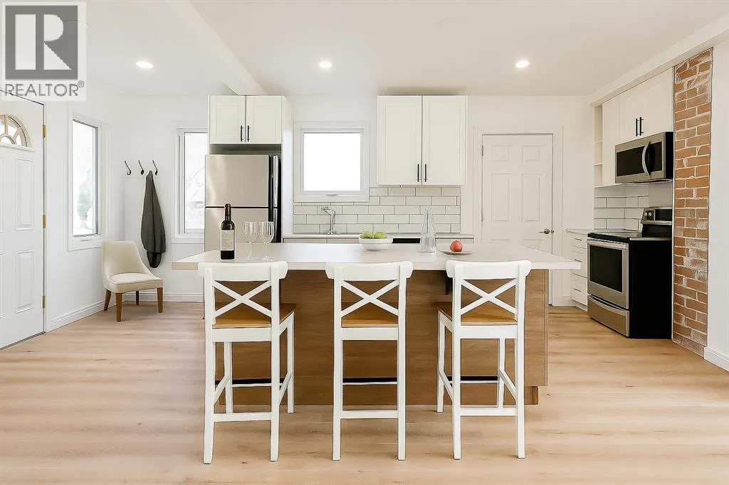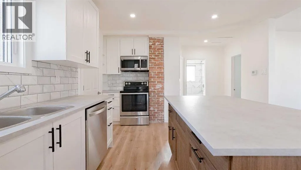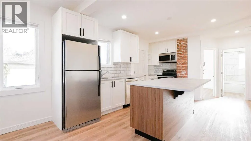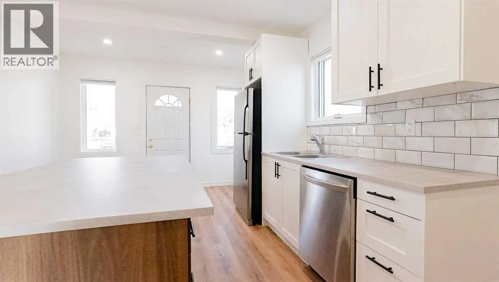 Welcome to this beautifully reimagined bungalow in the heart of Riverside, offering a seamless blend of modern comfort and classic charm. Set on a spacious lot with plenty of room to add a future garage, this home has been thoughtfully updated inside and out to provide peace of mind and stylish living.Step through the charming front porch into an inviting open layout featuring a bright kitchen with a large sit up island, full appliance package, and an easy flow into the living area. The main floor offers two comfortable bedrooms and a refreshed 4 piece bathroom.The fully developed lower level adds impressive living space, with two additional bedrooms, a 3-piece bath featuring a tiled shower, a laundry area with washer and dryer, and a cozy family room for relaxing or entertaining.Extensive updates include a metal roof, all new windows on the main floor, updated insulation throughout (including blown-in attic insulation), new electrical and plumbing systems, upgraded 100 amp service, new furnace, A/C, and hot water tank. The yard has been professionally graded for proper drainage and is fully fenced with plenty of outdoor space to enjoy.Perfect for first time buyers, investors, or anyone who appreciates a move-in ready home with modern updates in a mature, central location. Please note: some photos have been digitally staged to help showcase the homeâs layout and potential. (id:27476)