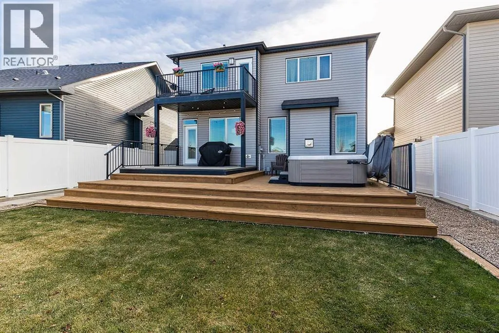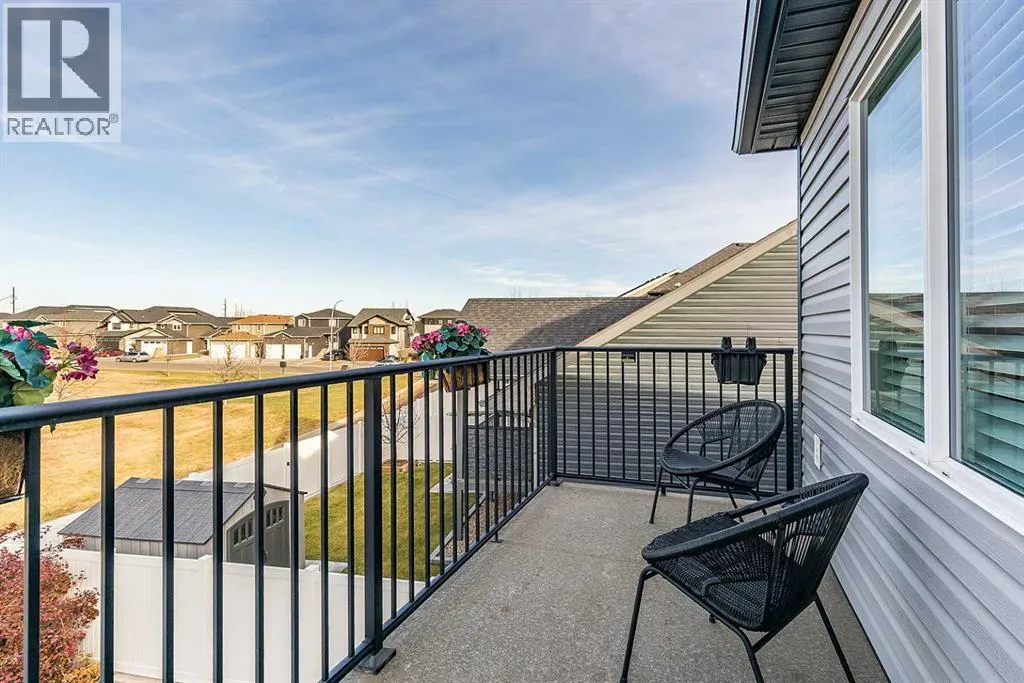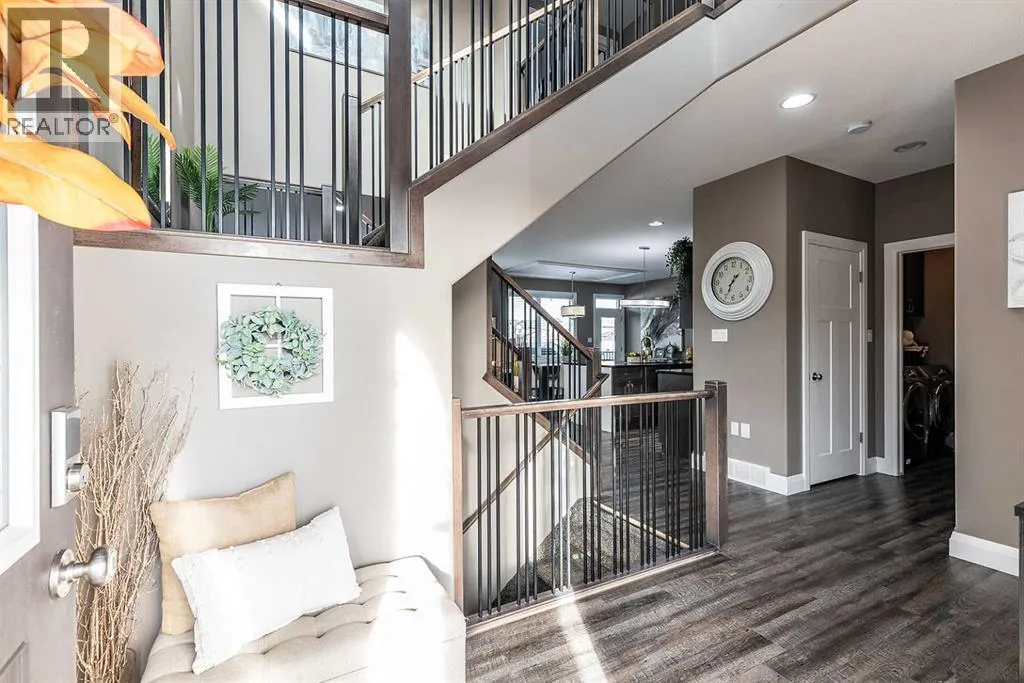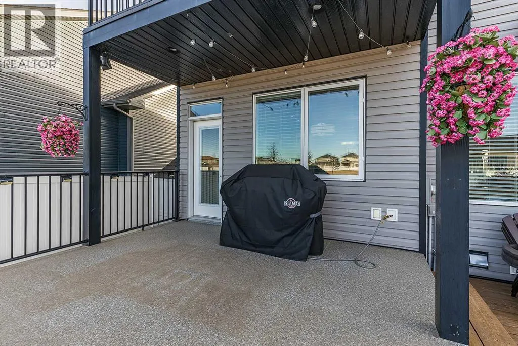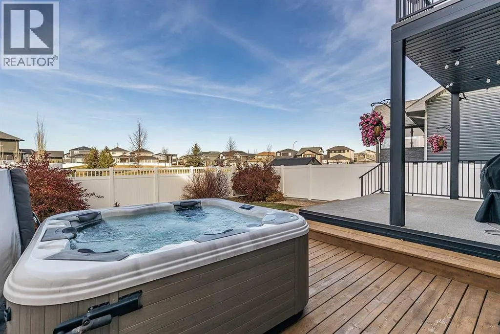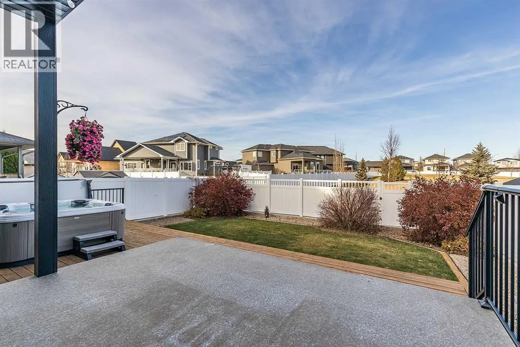 Perfectly positioned in a great neighbourhood, 46 Sterling Link combines refined design with the warmth of a true family home. From the moment you arrive, the curb appeal stands out with stone accents, a triple attached heated garage, and a spacious driveway. Inside, youâre greeted by a bright, open-concept layout that balances everyday comfort with thoughtful design. The entry leads into a custom maple kitchen featuring granite countertops, a large island with bar seating, stainless steel appliances, and a walk-through pantry that connects to a practical mudroom with built-in lockers and main floor laundry. The dining and living areas are filled with natural light from large windows overlooking the professionally landscaped yard, complete with a tiered deck, hot tub, and both covered and open areas to relax or entertain. Upstairs, an open staircase leads to a generous bonus room â the perfect spot for family movie nights or a cozy retreat. Double French doors open to a beautiful primary suite with a private balcony overlooking a green space, a large walk-in closet with built-in vanity, and a luxurious 5 pc ensuite. Two additional spacious bedrooms and a full bath complete the upper level. The fully finished basement adds even more living space, with a rec room, wet bar with dishwasher and bar fridge, a fourth bedroom, a full bathroom and plenty of storage space. This homeâs details make it truly stand out: high-end finishes, dual-zone heating, built-in features that add both function and beauty. Located close to parks, schools, walking paths, and shopping, this home offers an exceptional lifestyle in a family-friendly community. (id:27476)