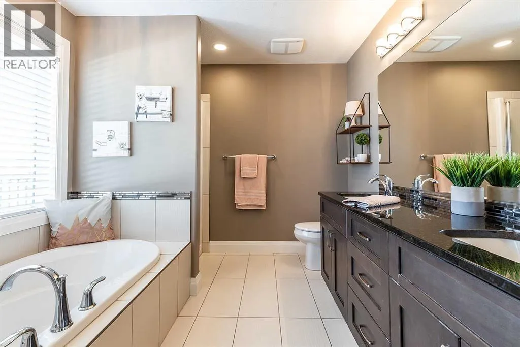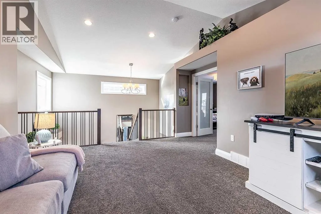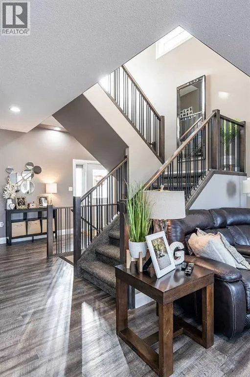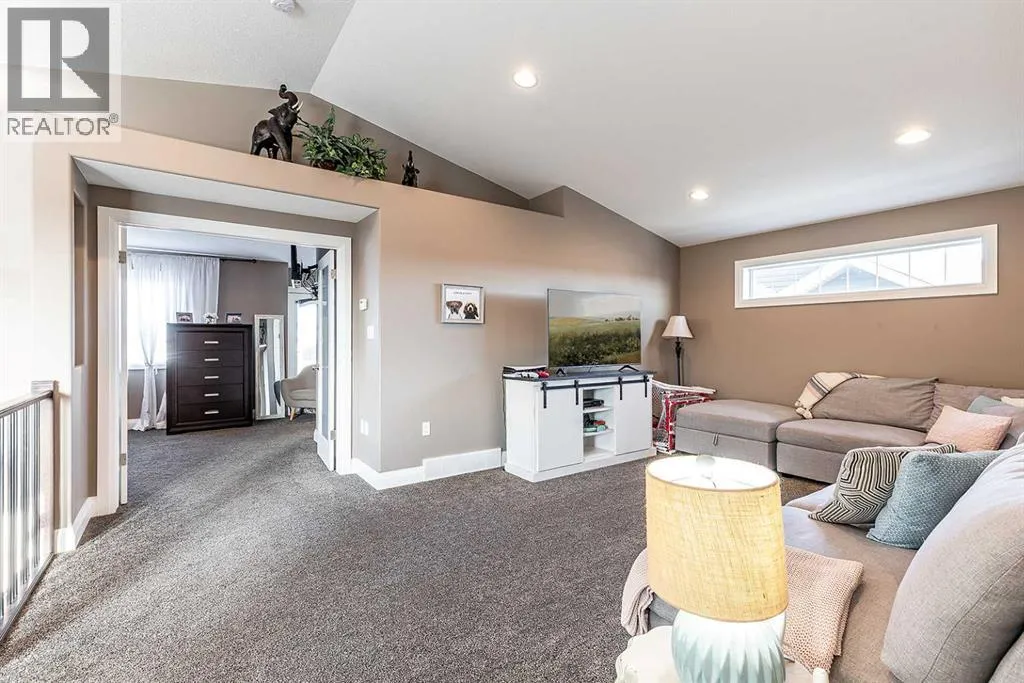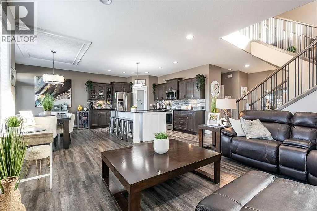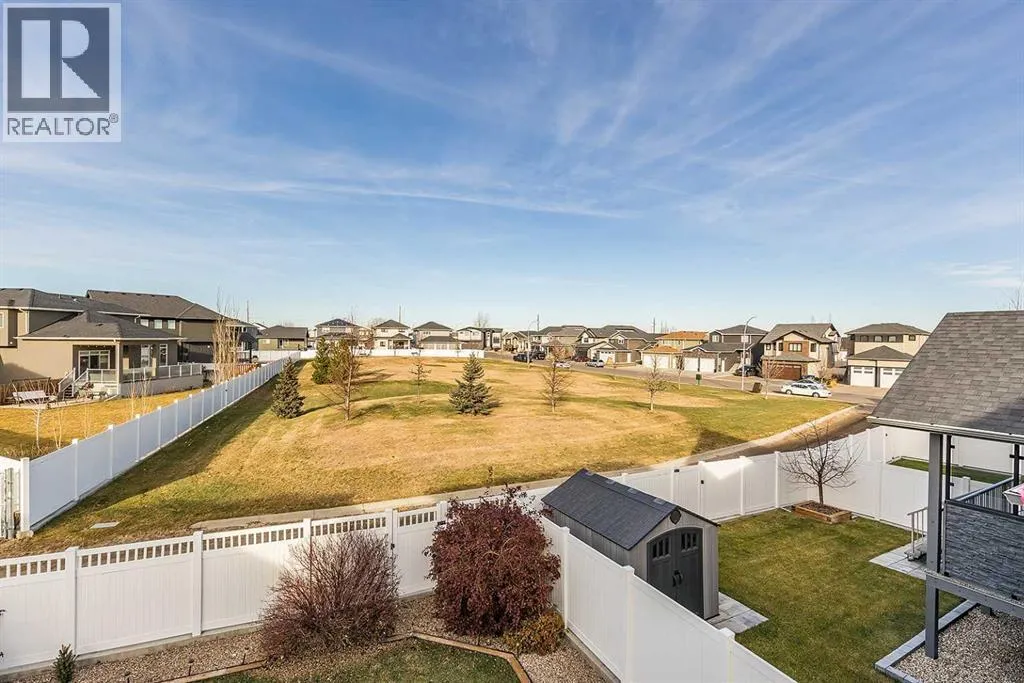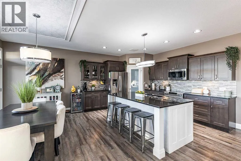 Perfectly positioned in a great neighbourhood, 46 Sterling Link combines refined design with the warmth of a true family home. From the moment you arrive, the curb appeal stands out with stone accents, a triple attached heated garage, and a spacious driveway. Inside, youâre greeted by a bright, open-concept layout that balances everyday comfort with thoughtful design. The entry leads into a custom maple kitchen featuring granite countertops, a large island with bar seating, stainless steel appliances, and a walk-through pantry that connects to a practical mudroom with built-in lockers and main floor laundry. The dining and living areas are filled with natural light from large windows overlooking the professionally landscaped yard, complete with a tiered deck, hot tub, and both covered and open areas to relax or entertain. Upstairs, an open staircase leads to a generous bonus room â the perfect spot for family movie nights or a cozy retreat. Double French doors open to a beautiful primary suite with a private balcony overlooking a green space, a large walk-in closet with built-in vanity, and a luxurious 5 pc ensuite. Two additional spacious bedrooms and a full bath complete the upper level. The fully finished basement adds even more living space, with a rec room, wet bar with dishwasher and bar fridge, a fourth bedroom, a full bathroom and plenty of storage space. This homeâs details make it truly stand out: high-end finishes, dual-zone heating, built-in features that add both function and beauty. Located close to parks, schools, walking paths, and shopping, this home offers an exceptional lifestyle in a family-friendly community. (id:27476)