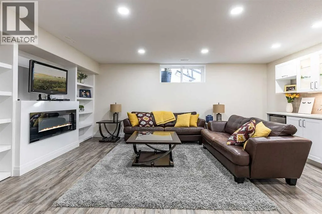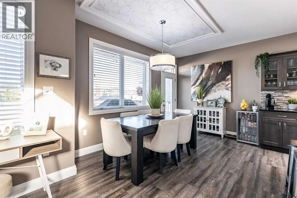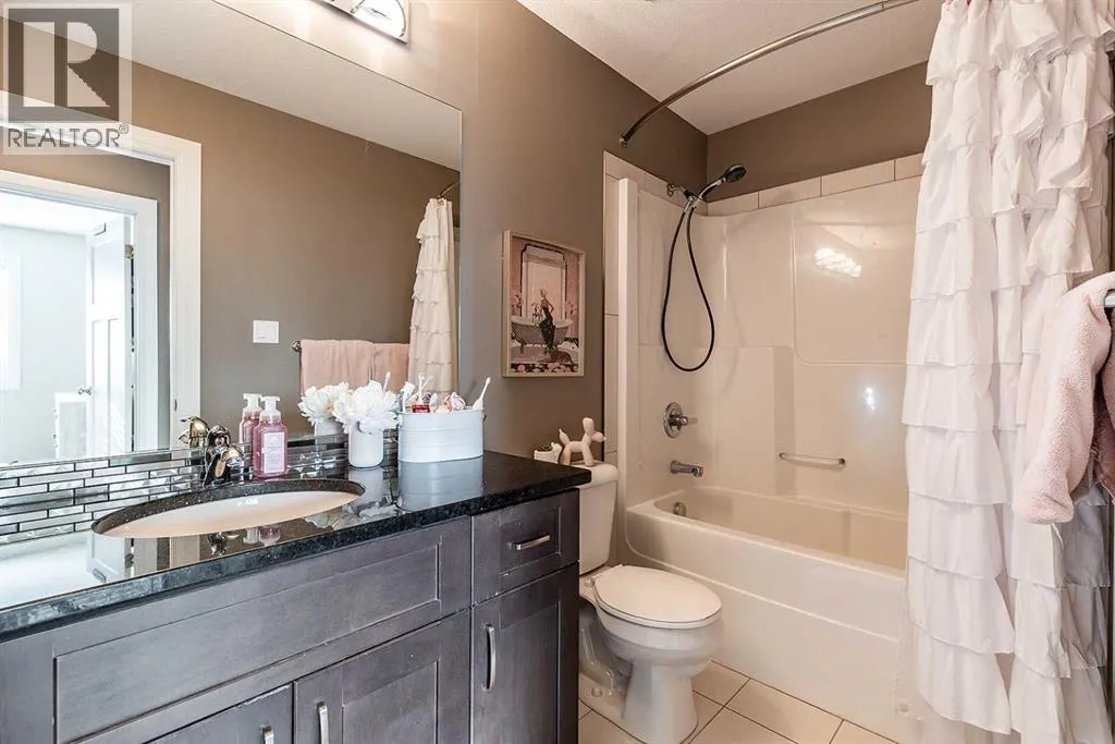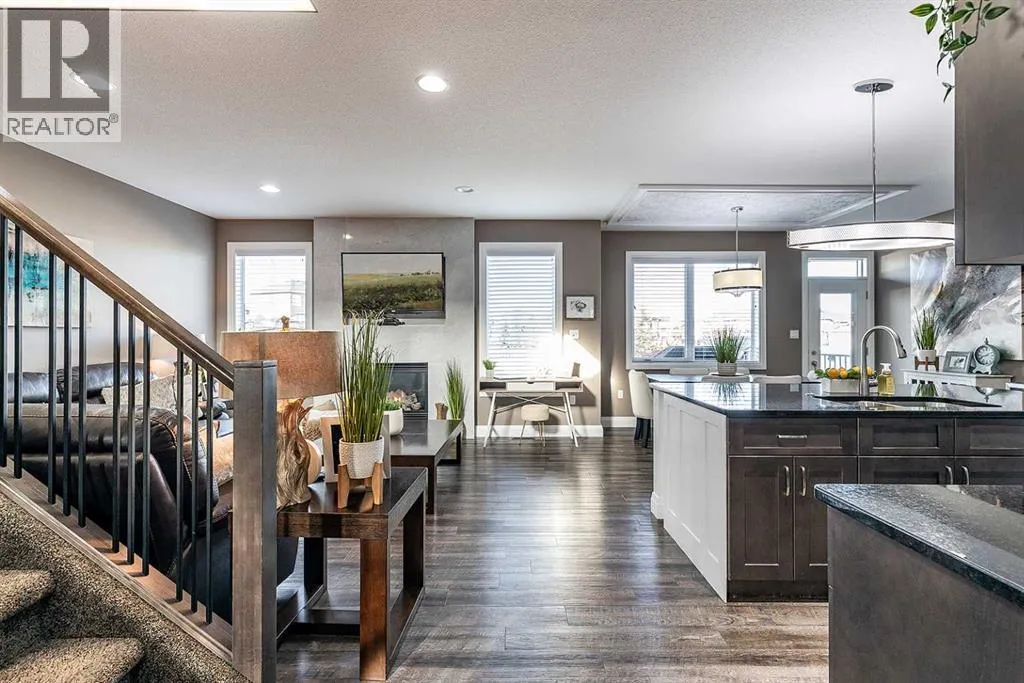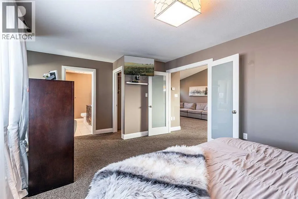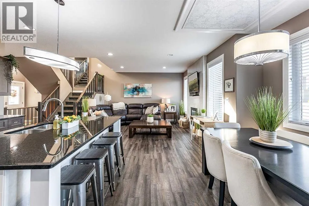 Perfectly positioned in a great neighbourhood, 46 Sterling Link combines refined design with the warmth of a true family home. From the moment you arrive, the curb appeal stands out with stone accents, a triple attached heated garage, and a spacious driveway. Inside, youâre greeted by a bright, open-concept layout that balances everyday comfort with thoughtful design. The entry leads into a custom maple kitchen featuring granite countertops, a large island with bar seating, stainless steel appliances, and a walk-through pantry that connects to a practical mudroom with built-in lockers and main floor laundry. The dining and living areas are filled with natural light from large windows overlooking the professionally landscaped yard, complete with a tiered deck, hot tub, and both covered and open areas to relax or entertain. Upstairs, an open staircase leads to a generous bonus room â the perfect spot for family movie nights or a cozy retreat. Double French doors open to a beautiful primary suite with a private balcony overlooking a green space, a large walk-in closet with built-in vanity, and a luxurious 5 pc ensuite. Two additional spacious bedrooms and a full bath complete the upper level. The fully finished basement adds even more living space, with a rec room, wet bar with dishwasher and bar fridge, a fourth bedroom, a full bathroom and plenty of storage space. This homeâs details make it truly stand out: high-end finishes, dual-zone heating, built-in features that add both function and beauty. Located close to parks, schools, walking paths, and shopping, this home offers an exceptional lifestyle in a family-friendly community. (id:27476)