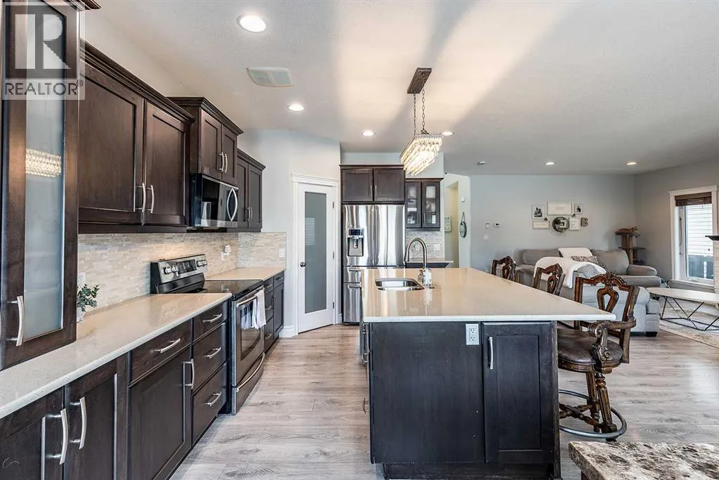 Welcome to 203 Sterling Crescent SE, a beautifully maintained and impressively spacious 5-bedroom home offering 2,203 sq ft above grade in one of Medicine Hatâs most desirable SE neighbourhoods. With its generous layout, bright interior spaces, and an oversized garage, this property is ideal for growing families, hobbyists, or anyone who values extra room inside and out. The main level features a warm, inviting living area filled with natural light, a functional kitchen with ample cabinetry, and a dining space that connects seamlessly to the backyardâperfect for hosting family meals and gatherings. Upstairs, the home offers multiple well-sized bedrooms, including a comfortable primary suite that provides privacy and relaxation. With five total bedrooms, this home offers exceptional versatilityâideal for kids, guests, home offices, or multi-use spaces. The lower level provides even more living space with a cozy family room and additional storage, giving you room to spread out and enjoy. One of the standout features of this property is the oversized 28â x 28â double garageâa rare and highly valued upgrade. Whether you need space for vehicles, toys, tools, or a workshop, this garage delivers the convenience and workspace youâve been looking for. Outside, the landscaped yard offers room to relax, garden, or entertain, while the quiet street and friendly community atmosphere make Sterling Crescent an ideal place to call home. Close to parks, schools, shopping, and Medicine Hatâs great trail system, 203 Sterling Crescent SE combines space, comfort, and location in one exceptional package. (id:27476)