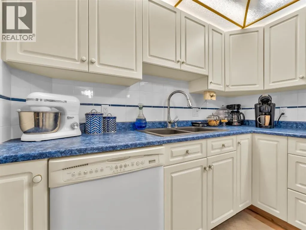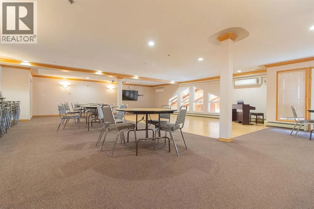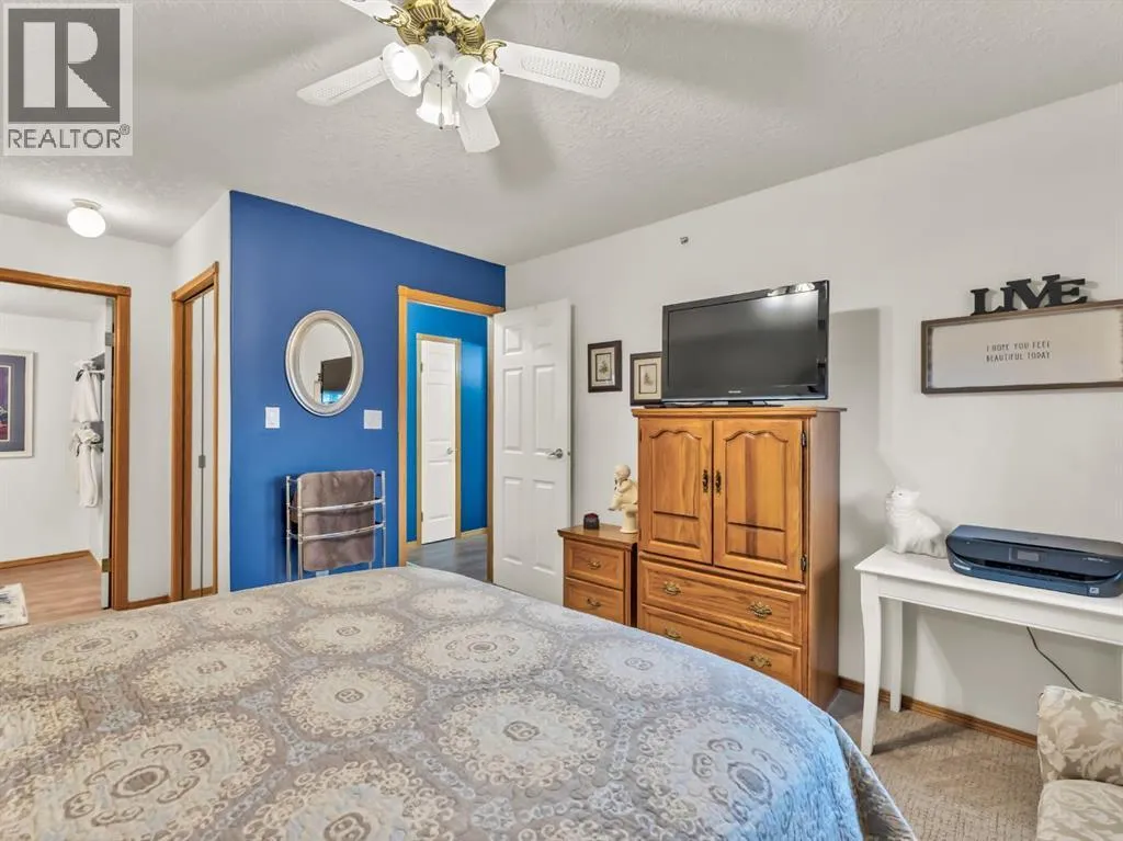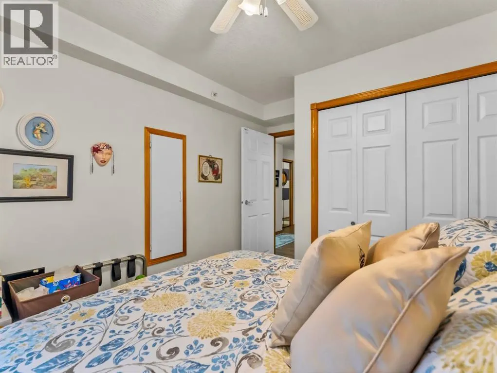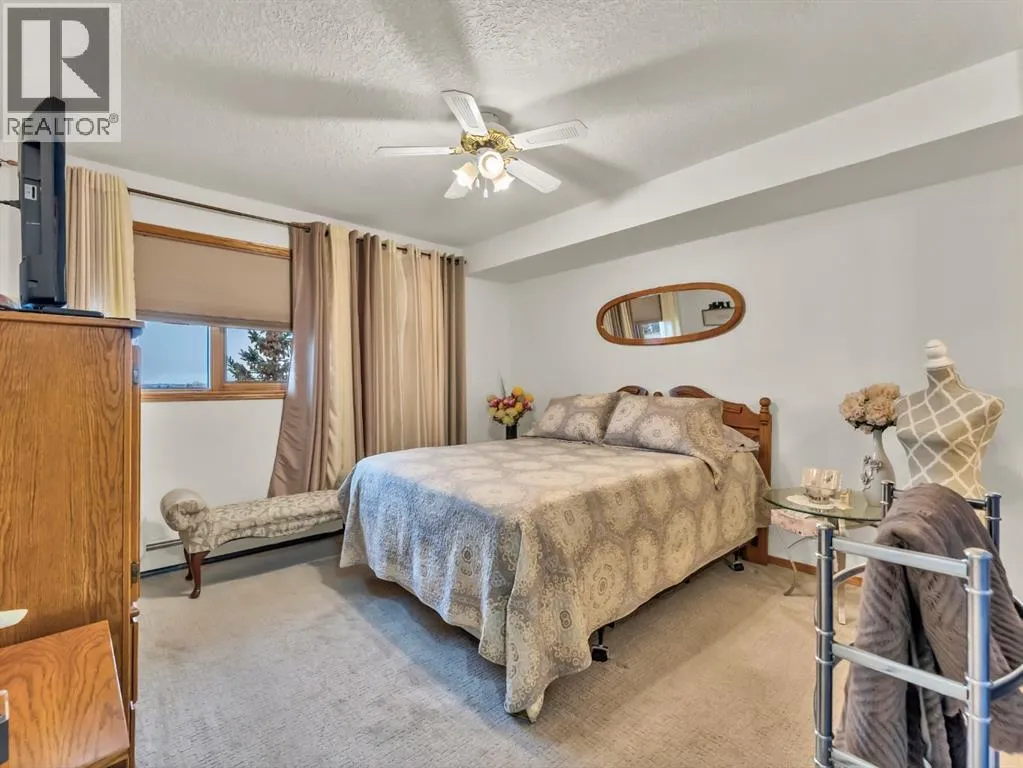 Welcome to Grandview Village â one of Medicine Hatâs most desirable 55+ condo communities.Step into this immaculate 4th-floor, 2-bed, 2-bath unit, proudly offered for sale. Lightly lived in and beautifully updated, this home is ideal for anyone looking to downsize without compromising on space, comfort, or lifestyle. The bright, open floor plan features a spacious kitchen with an updated fridge, crisp white cabinetry, generous counter space, and a convenient moveable island. The dining and living areas flow seamlessly to a large, private deck where fourth-floor views stretch all the way to the edge of the city â the perfect spot to enjoy morning coffee or evening sunsets. This unit has seen considerable updates including, paint, vinyl plank flooring, carpet in living room, black out blinds throughout, new washer + dryer. Inside, the suite is equipped with two air conditioners for exceptional summer comfort. Just steps from the elevator, and only a few more to your underground parking stall and storage, convenience is built right into daily living. Grandview Village is known for its thoughtful design with two elevators and multiple entryways, including a side/back door for quick, easy access.But what truly sets Grandview Village apart is its incredible amenities and the warm, welcoming community that thrives here. Residents enjoy a beautifully maintained indoor pool and hot tub, fitness room, billiards room, party and coffee rooms, guest suites, and a gorgeous outdoor patio for socializing or relaxing. The underground parkade features a car wash and a woodworking shop, making hobbies and upkeep a breeze.The building is ideally located close to shopping, restaurants, and everyday amenities â yet it feels peaceful, secure, and wonderfully cared for. Grandview Village is known for its friendly, like-minded residents who create a genuine sense of belonging. Whether youâre looking for connection, comfort, or convenience, youâll find it here.This is more than a cond o â itâs a lifestyle. Come experience the beauty and community of Grandview Village for yourself. (id:27476)